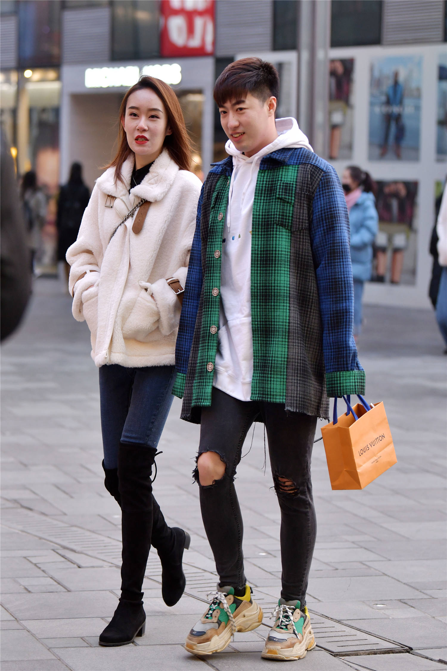 时尚的姑娘,会搭配保暖,穿出层次,这样才会更好地展示自己,时尚不是穿得少,冬天要挨冻才是美,这位美女选择黑色粗跟过膝靴,搭配深蓝色紧身牛仔裤,就很好地展现自己的身材,纤细骨感,还显得很高挑,修身搭配又很好地展现曲线美,一件米白色羊羔毛外套,看着就非常暖和。