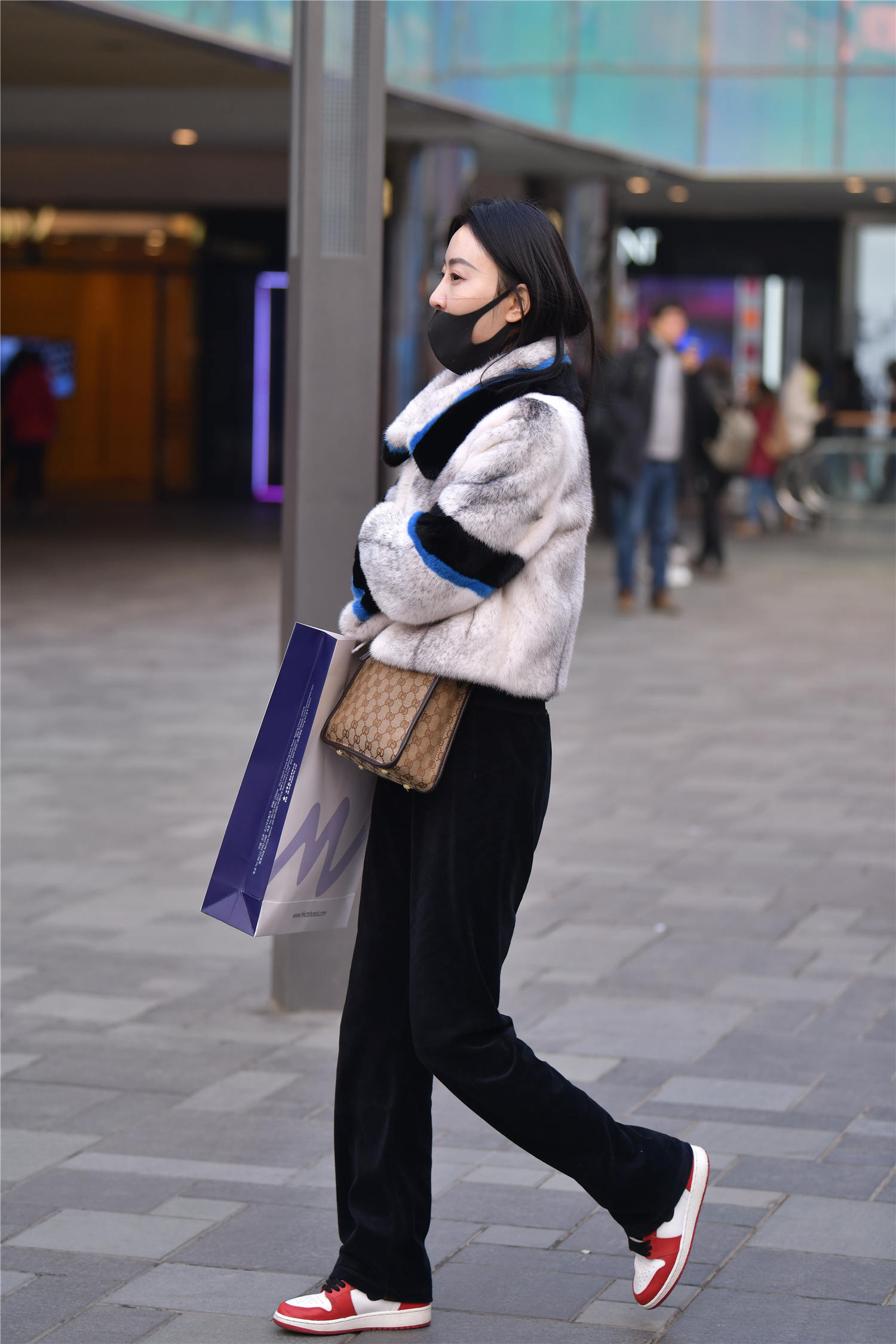 冬季里的长裤着装,每个人都会有自己的想法,展现出自己的个性来,休闲时尚还要保暖,看一下这位姑娘,选择一款黑色休闲长裤,裤腿宽松,可以穿着保暖裤,也不会显胖,脚下的红白色运动鞋,更好展现休闲的效果,逛街也会很轻松,一件浅灰色的短款皮草,可以衬托出贵气的感觉,同时也展现出很好的身材比例效果。
