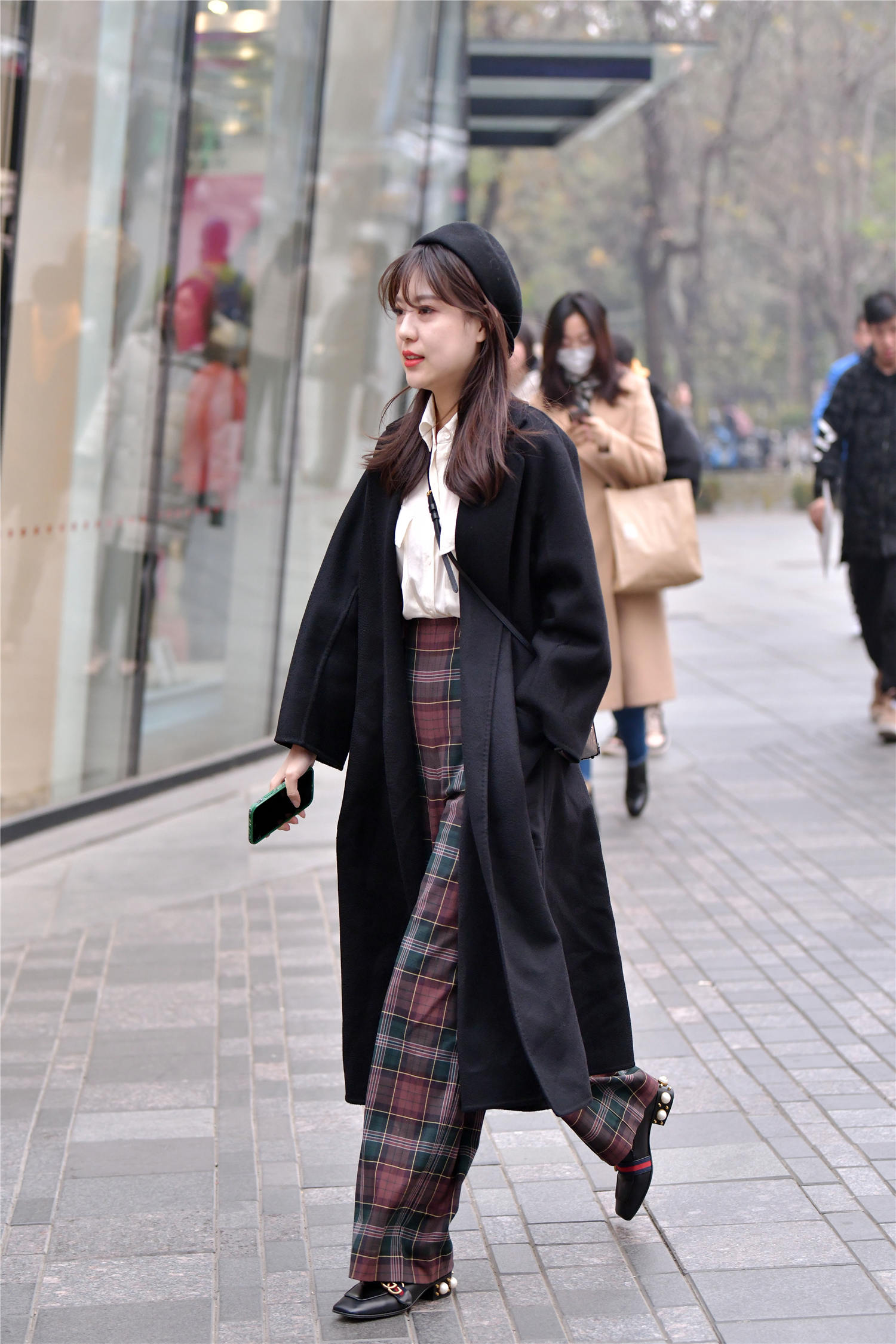 精致的美女,在不经意间展现自己,选择的服装,让你感觉就像是量身为她打造的一样,看一下这位美女的穿搭,高腰的阔腿裤,显得身材比例很好,也衬托出精致的味道,一件米白色衬衣,外面一件长款的黑色呢子大衣,非常好看,头上的帽子,更好地起到装饰作用,冬天有一顶帽子,也会显得个性还有着保暖的效果。