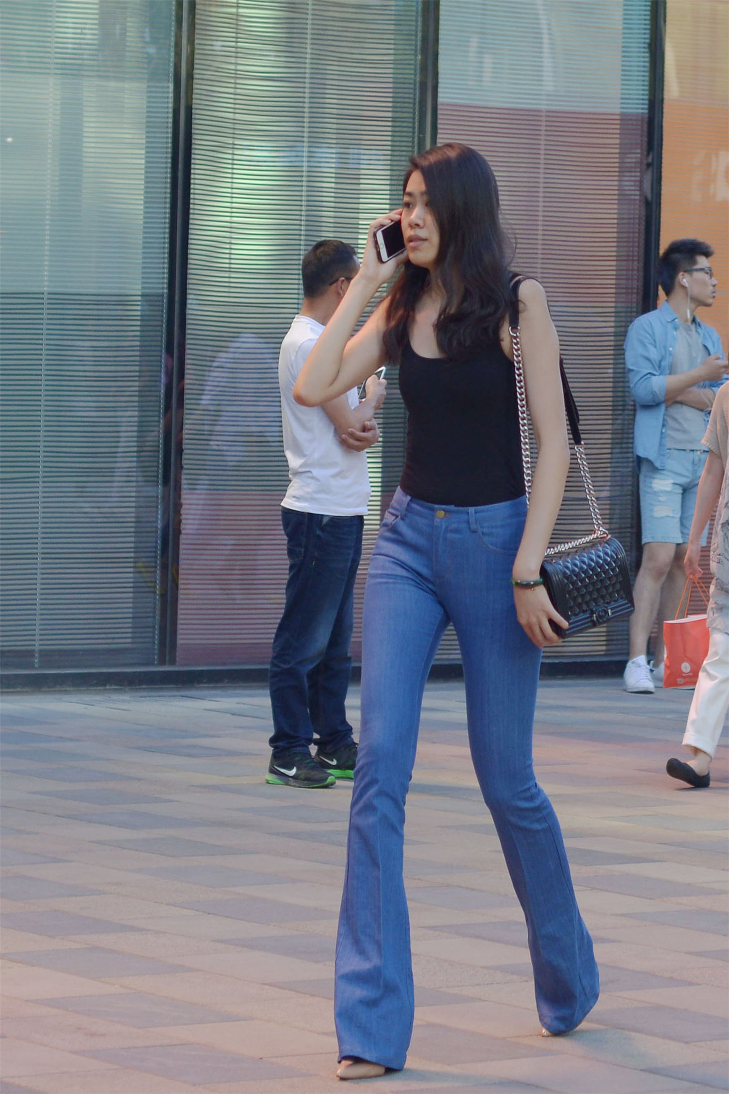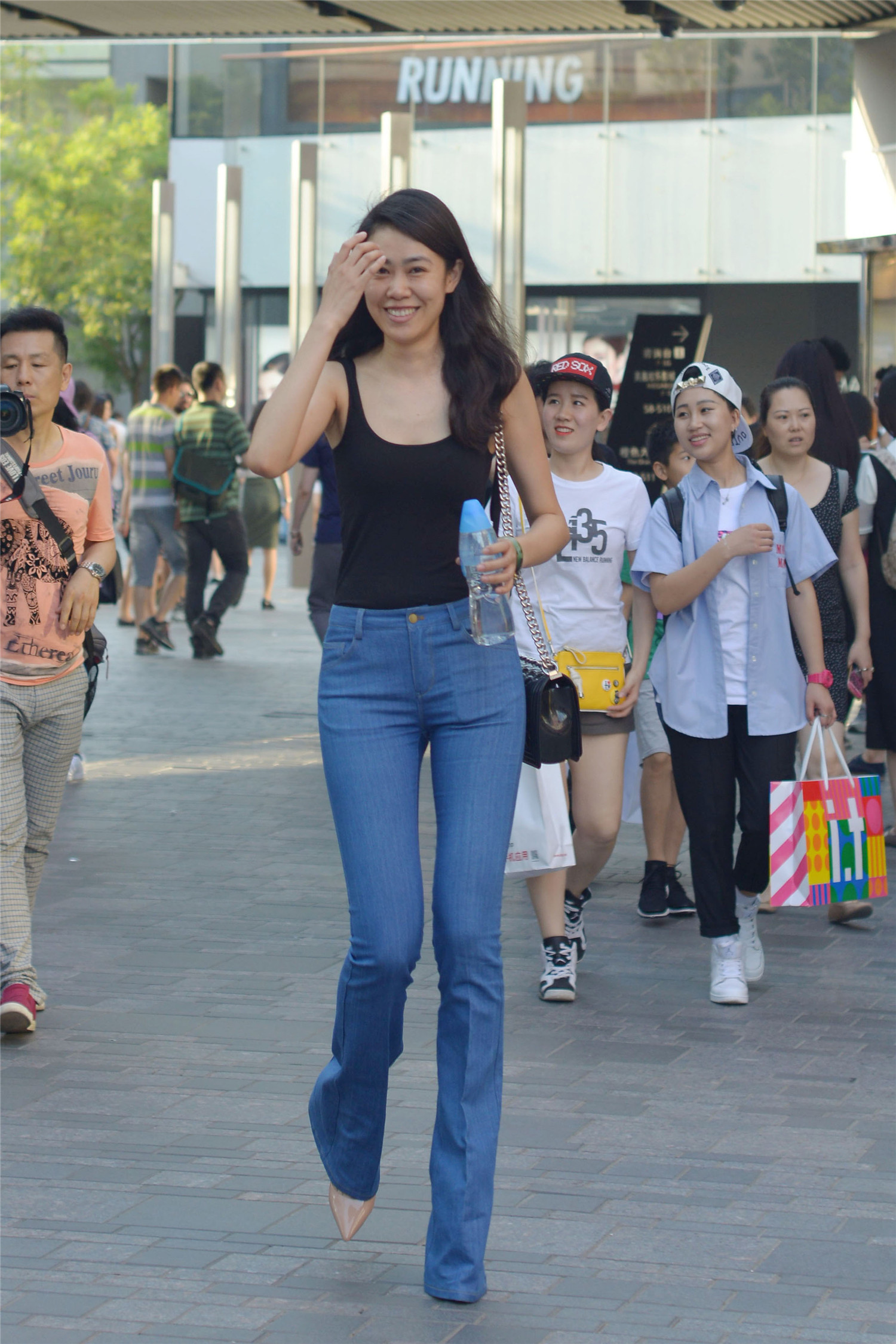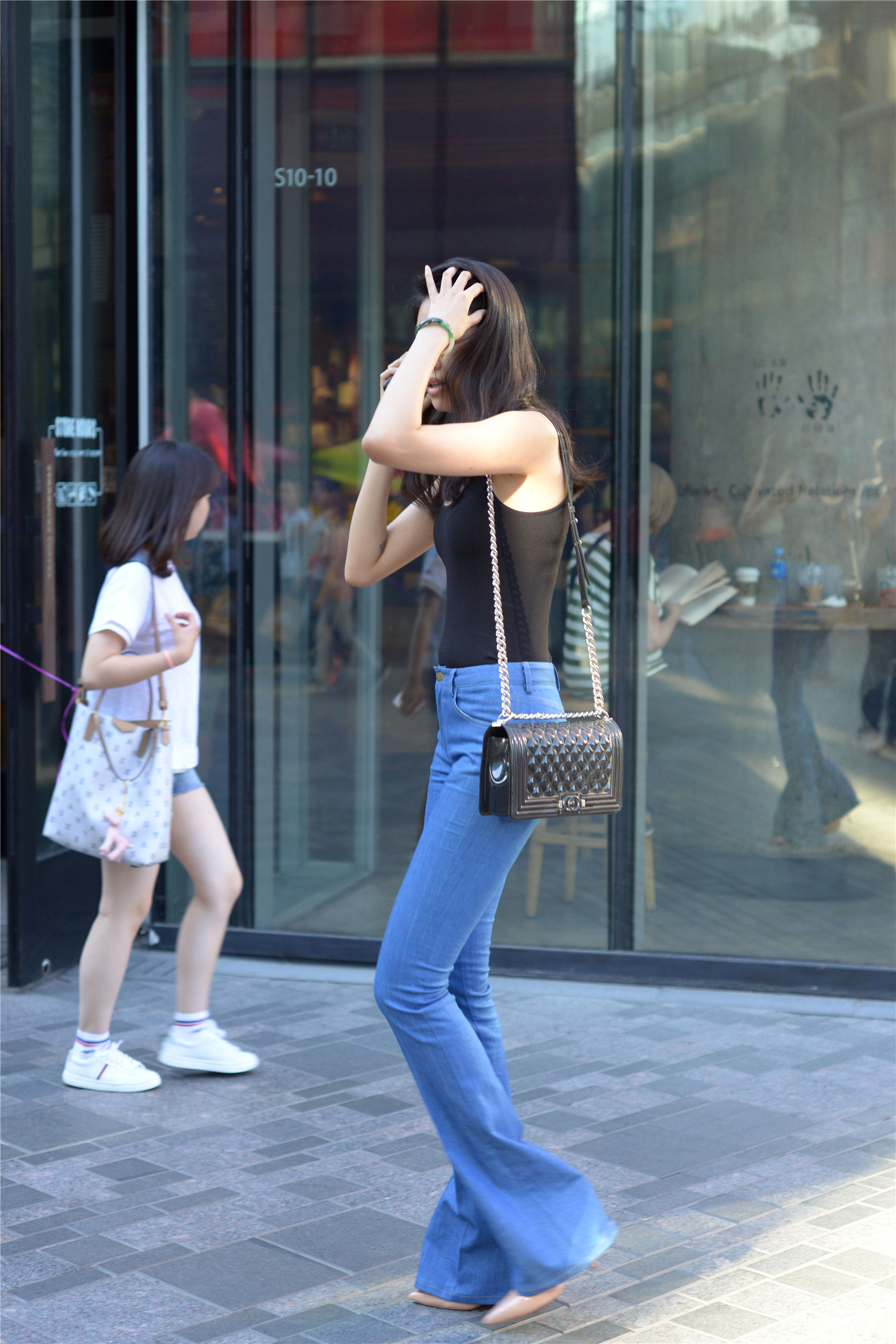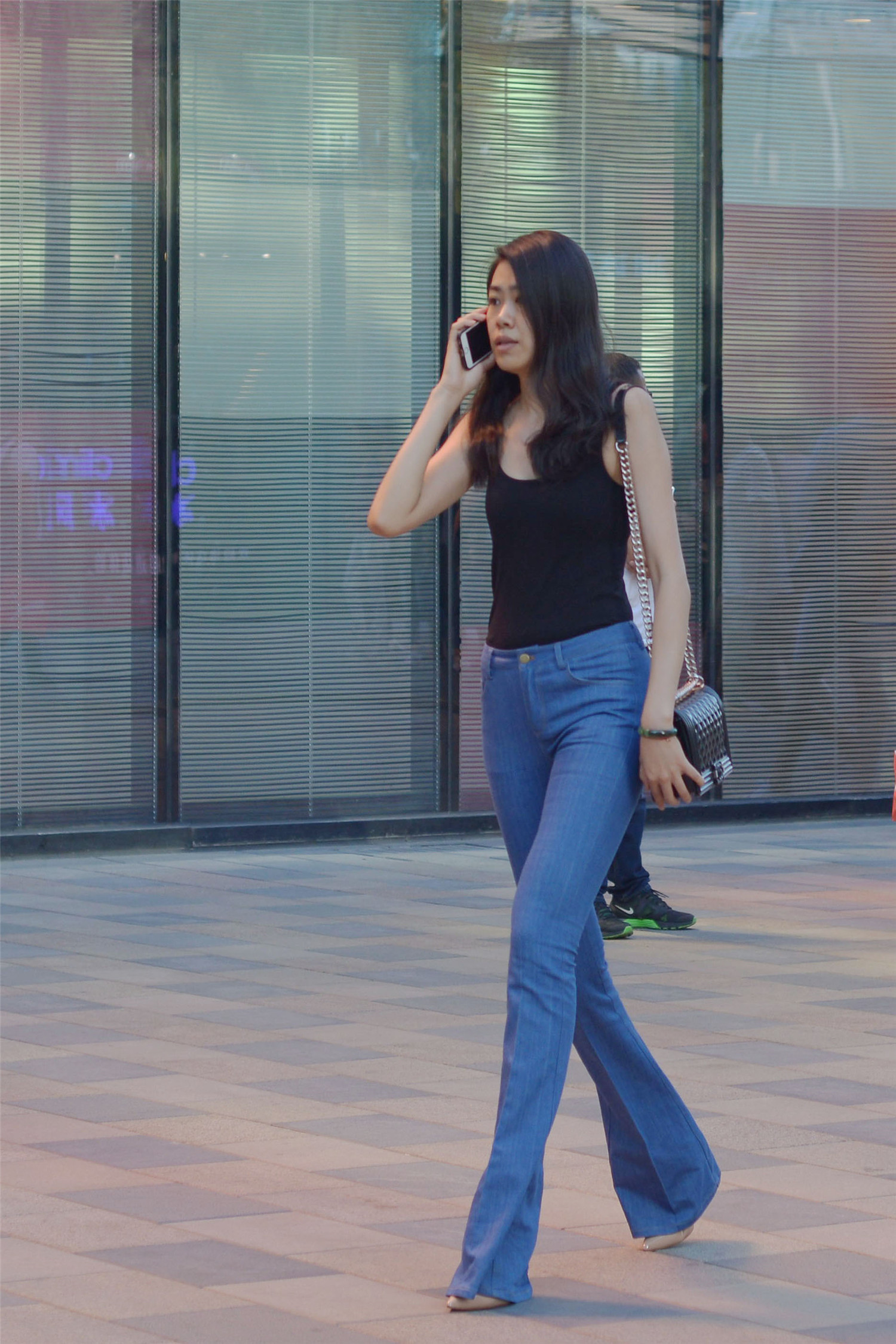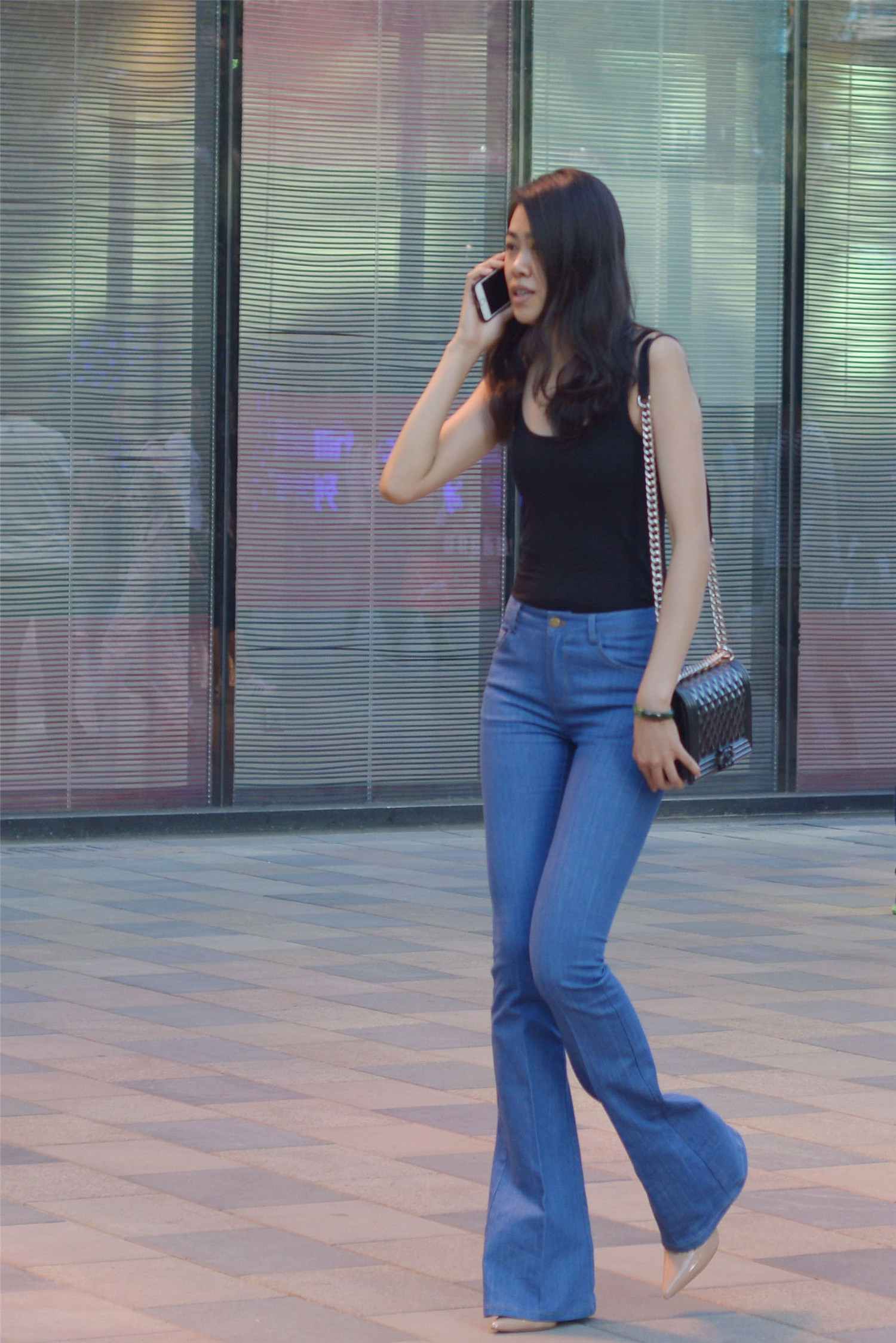 一米八的时尚姑娘,穿着牛仔喇叭裤,脚下的尖头细跟鞋有多高?
