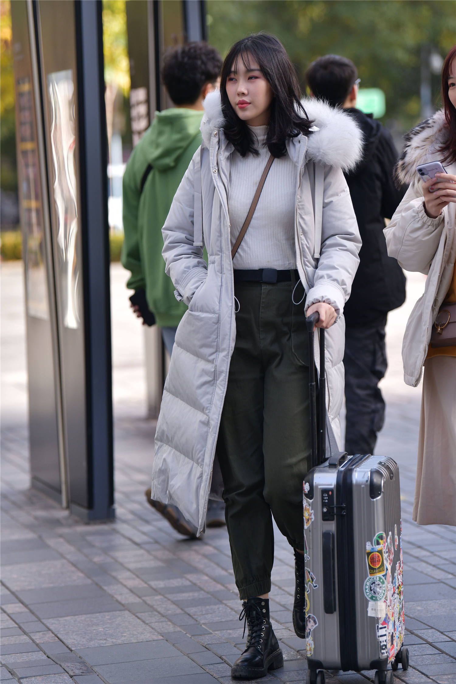 冬季最简单的搭配,长款羽绒服,简约还很时尚