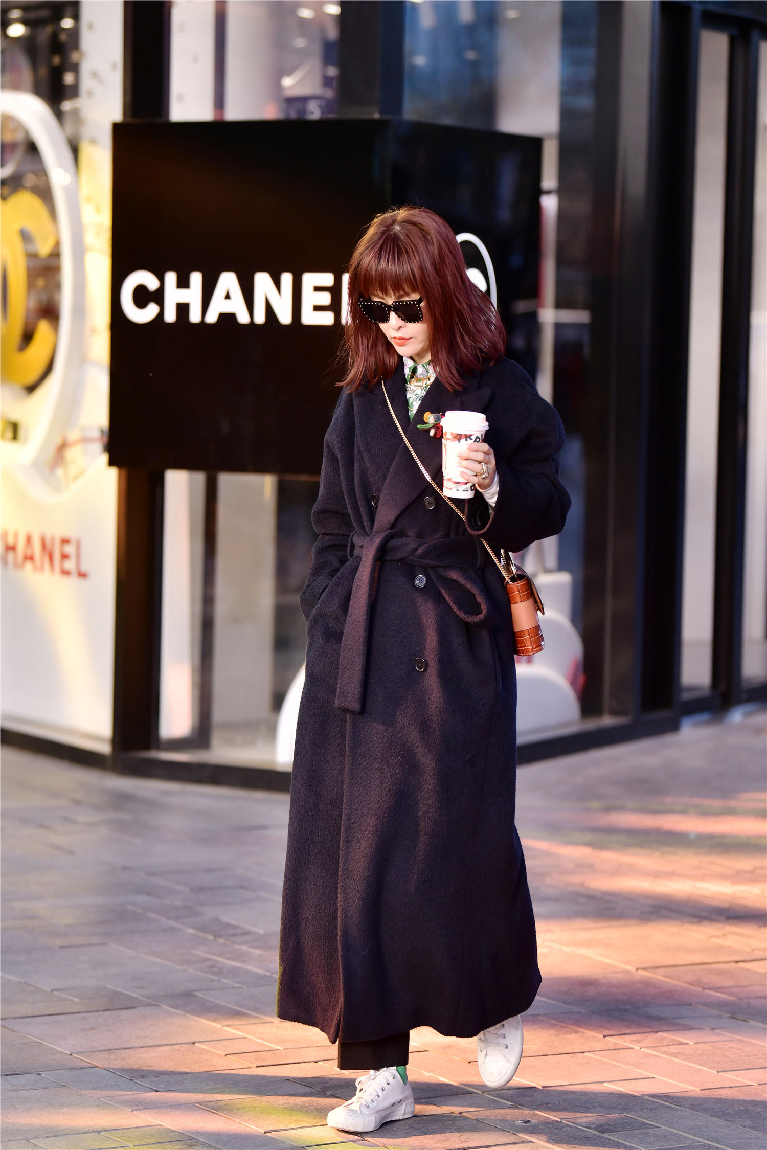 逛街,还是要以舒适为主,很多姑娘出来逛街,要把自己搭配得很简单,这位美女选择一款黑色长款大衣,衣摆到脚踝的位置,这样搭配变得更加简单,里面搭配一件花色衬衫,只是在领口位置露出一点,黑色长裤搭配一双白色帆布鞋,增加色彩,还搭配出休闲的感觉,而且这样搭配不挑身材。