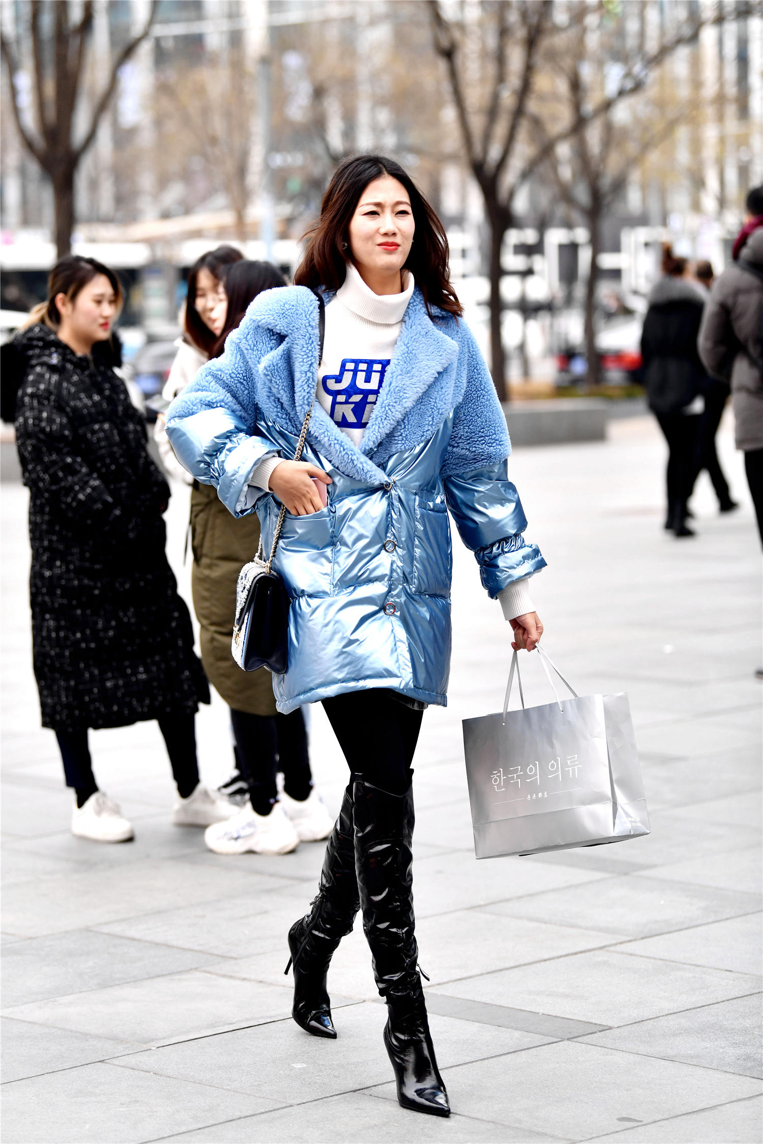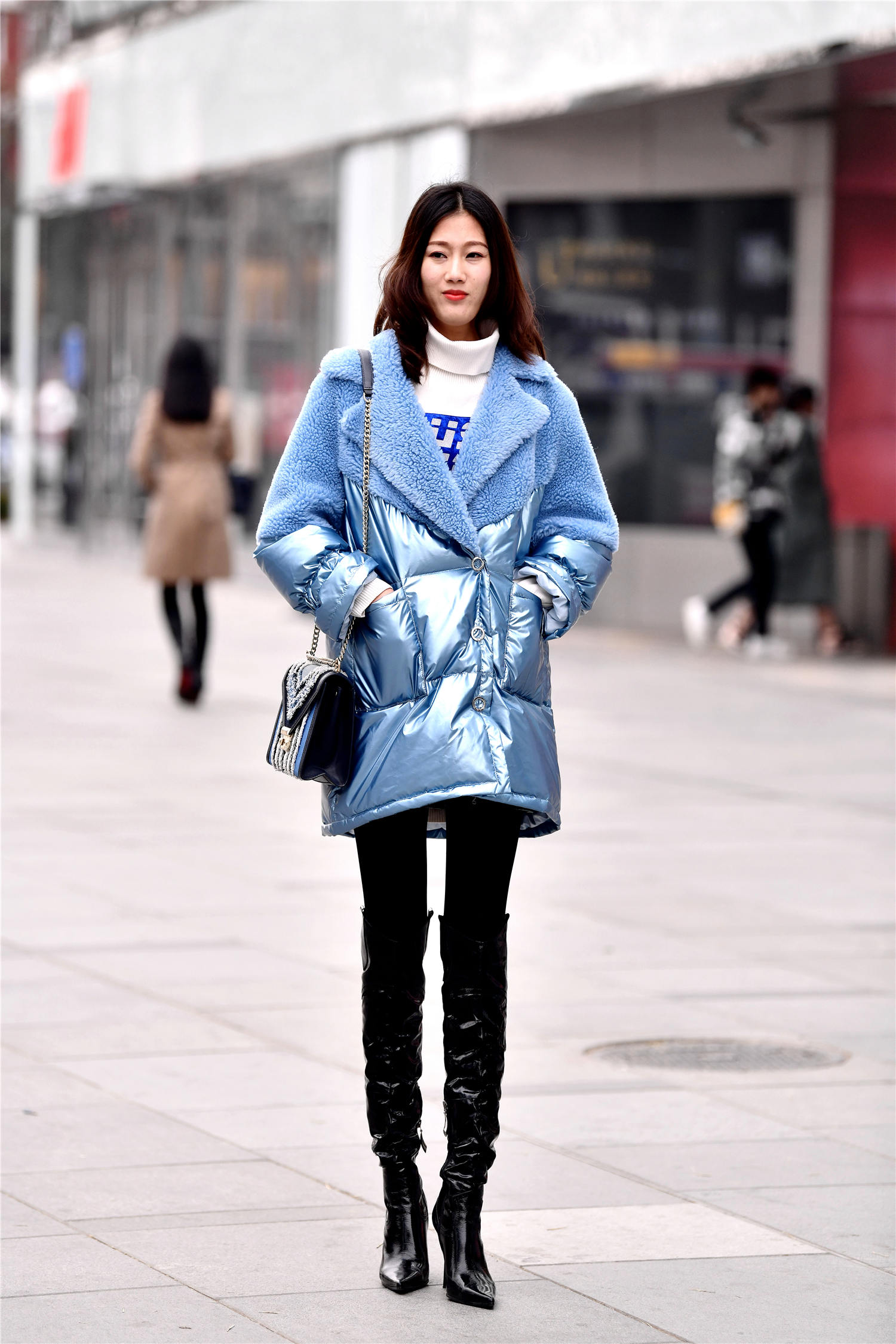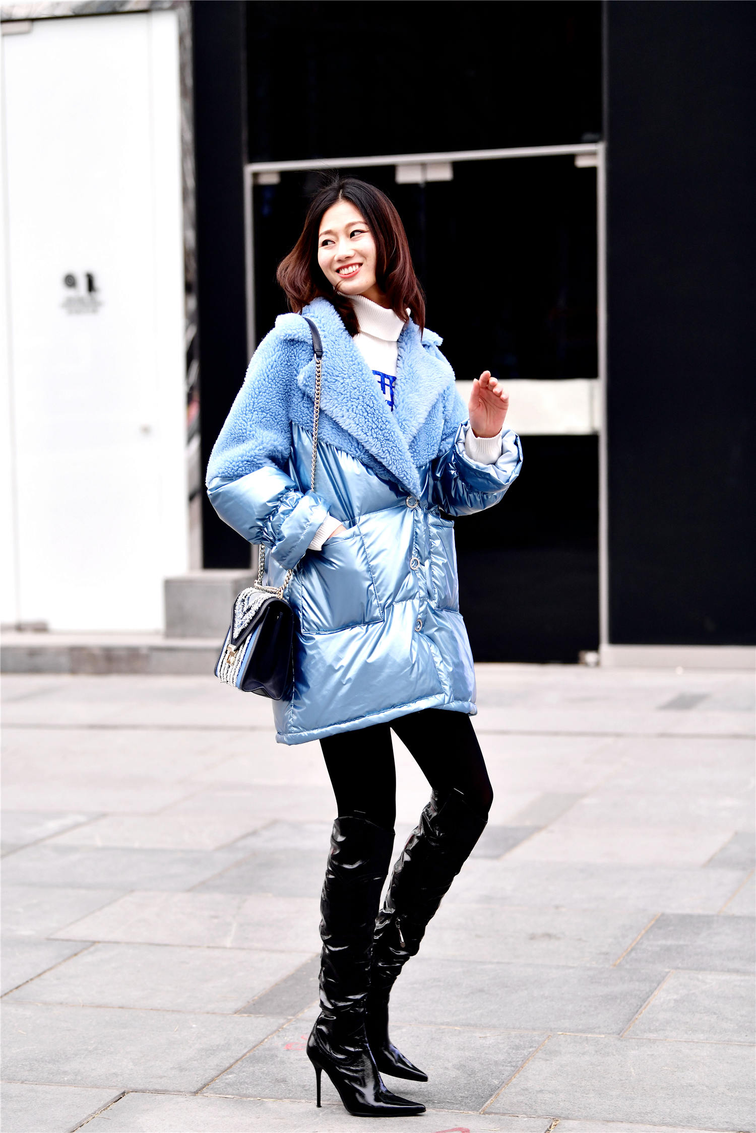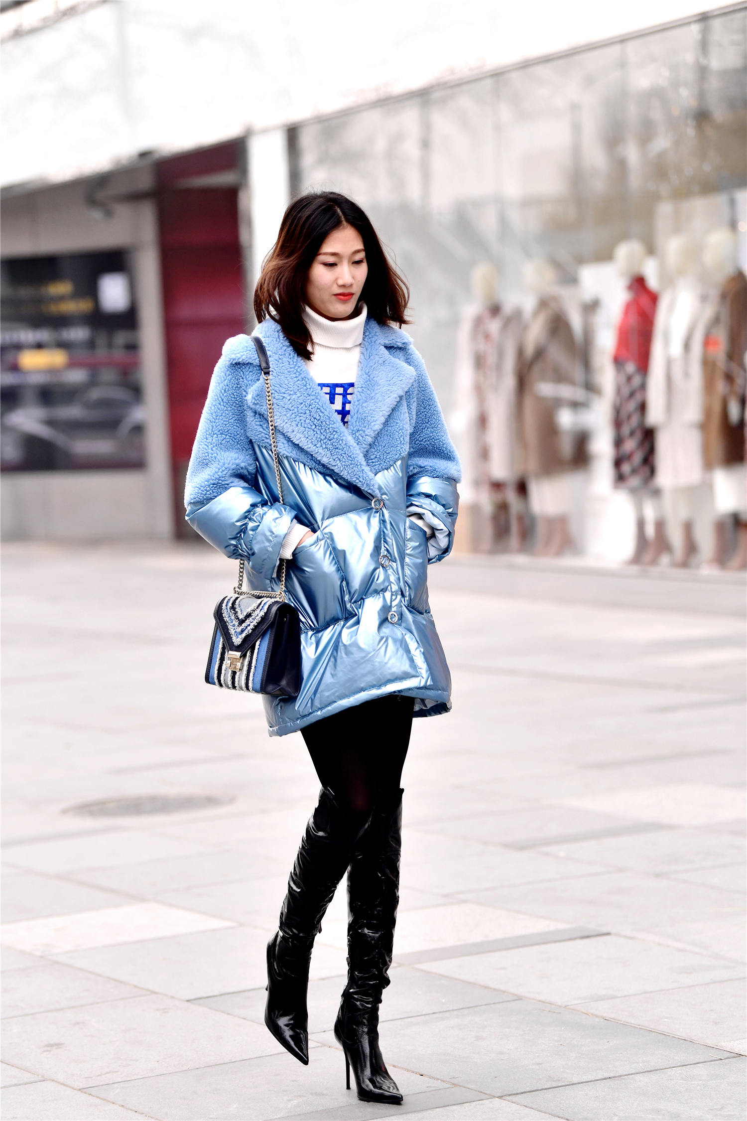 搭配一条黑色打底裤,这样有着修身的效果,也展现出很精致的感觉,也很保暖,一款蓝色羽绒服,抓绒与镭射面拼接,这样的羽绒服非常有质感,中长款会有着好看又保暖效果,也衬托出身材,一款白色高领衬衣,身上的搭配色彩不是很多,却有着很美的感觉,选择衣服很关键,也保暖,还要衬托自己的身材。