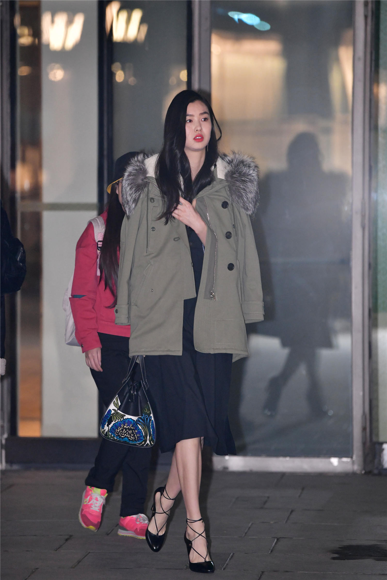 如果不是参加活动,在冬天是不会这么搭配的,所以看到艺人参加活动,特别是在冬天,真的是很不容易,要搭配少一些,展现自己,还要穿着累人的高跟鞋,这位美女穿着一双黑白色拼接的一字带尖头细跟鞋,侧镂空的设计,显得人很精致,一款黑色连衣短裙,腰间系一条黑色皮腰带,这样让身材比例看起来更加好看。
