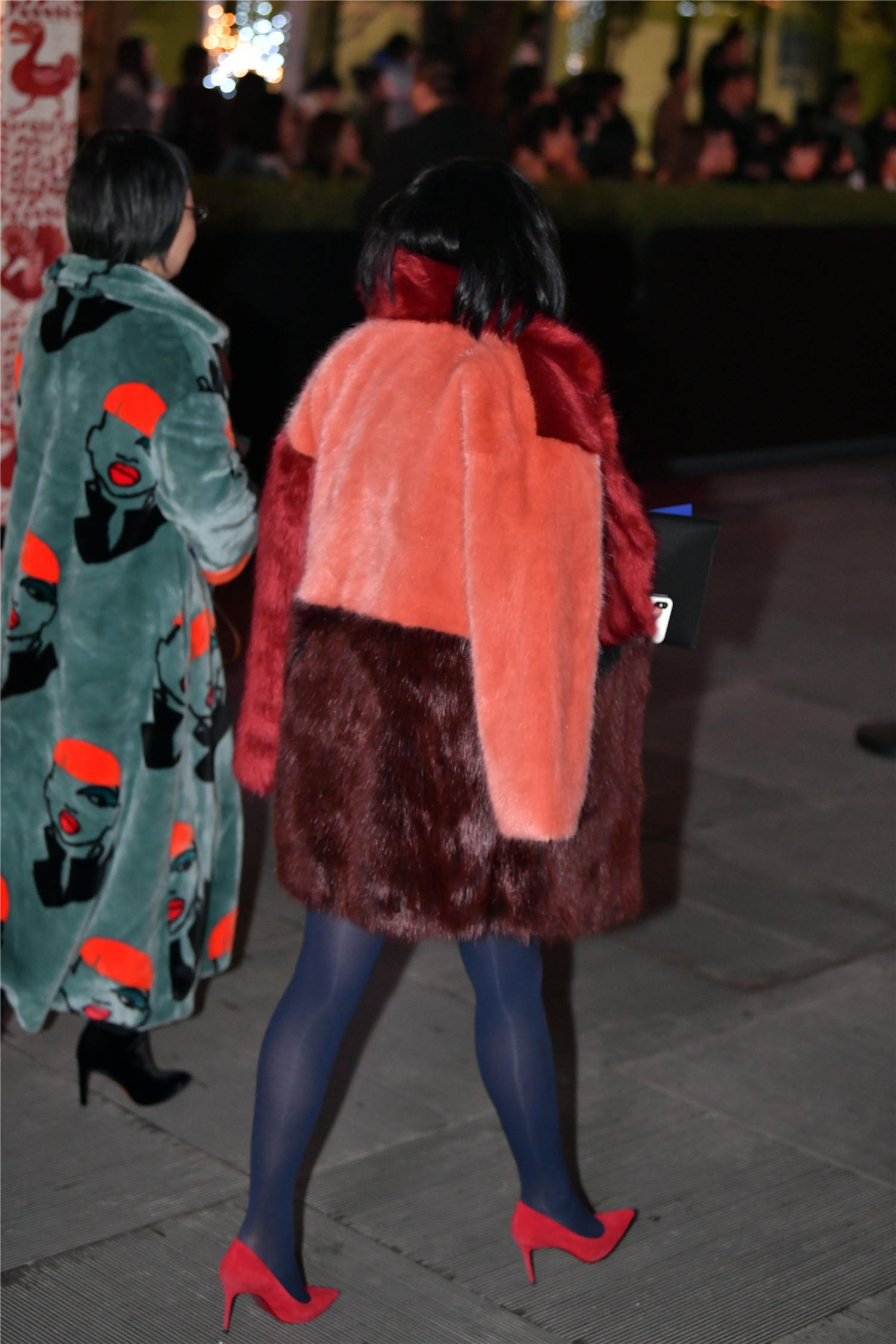会搭配的姑娘,在什么时候,都要穿出自己的时尚感觉,她们出门会穿着自己喜欢的服装,展现出精致的一面,这位美女选择一款红色尖头细跟单鞋,非常好看的款式,搭配出很美的效果,蓝色的亮光丝袜,收紧肌肤,有着很好的显瘦效果,一款拼接色的皮草大衣,简单又很好看,还展现出她的气质美。