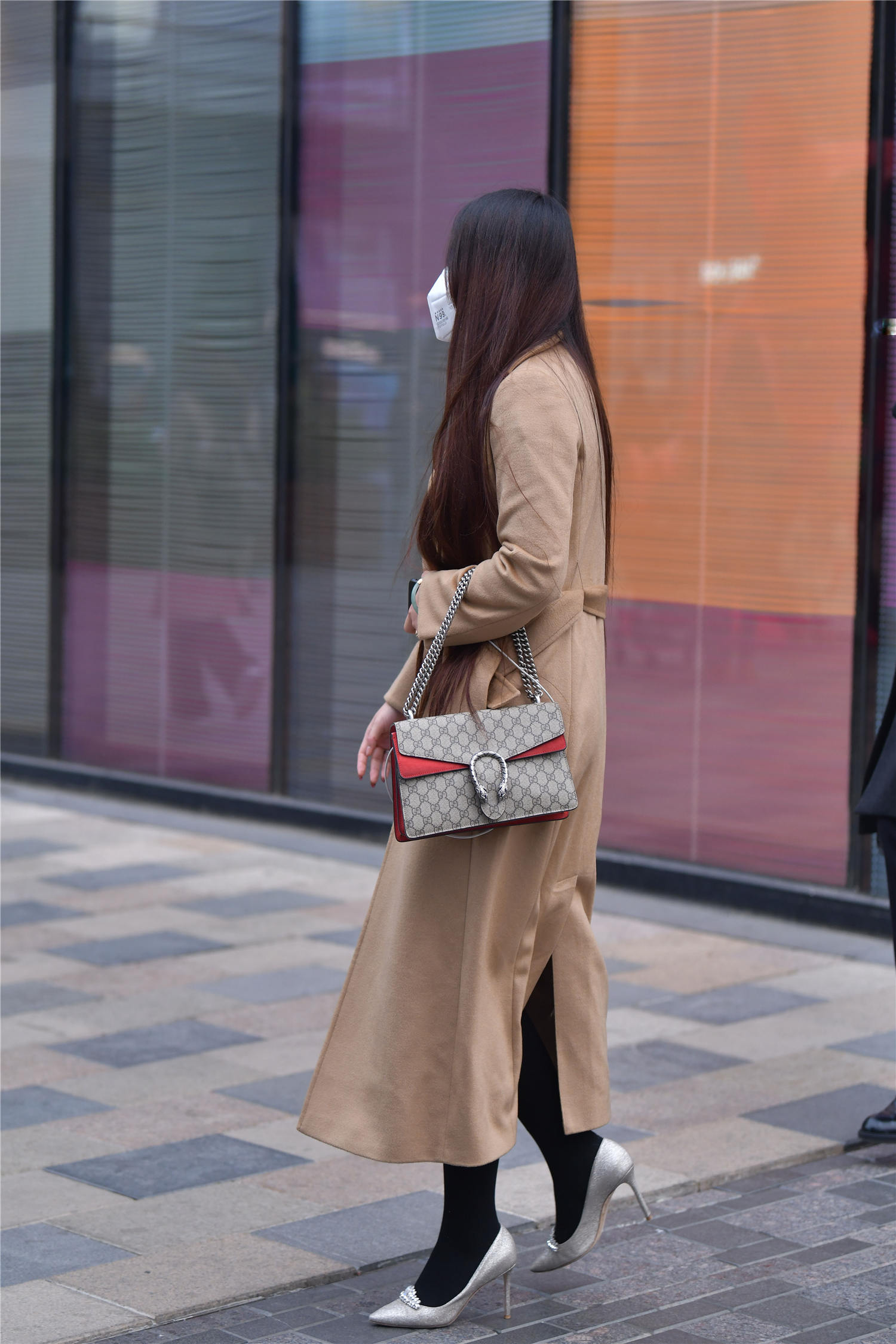 高跟鞋,对于时尚姑娘来说,是必须要会穿的,很多场合穿着高跟鞋,会让你更加精致,这位美女逛街选择一双银色尖头细高跟,8厘米的高度,更好衬托身材,也有着漂亮的弧度,黑色打底袜,这样起到保暖效果,一款驼色长款的大衣,让搭配变得更加简单,还不挑身材的穿搭,是不是很好看呢?