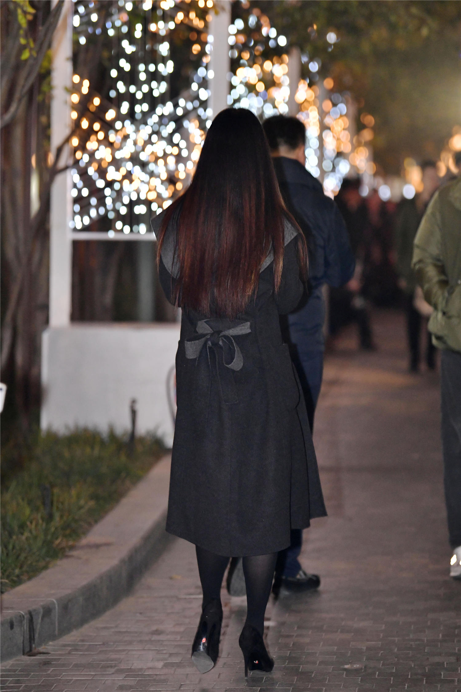 时尚的美女,穿着黑色服装,也会展现出自己的时尚味道,搭配出层次感,看一下这位美女,选择一款黑色尖头细跟单鞋,搭配黑色丝袜,这样会让黑色非常有层次感,也很好看,收紧肌肤,也有着显瘦的效果,一款黑色大衣,腰部后面还有一个蝴蝶结的装饰,增加层次感,搭配其实很简单,你是不是也想尝试一下这样的冬季搭配呢?