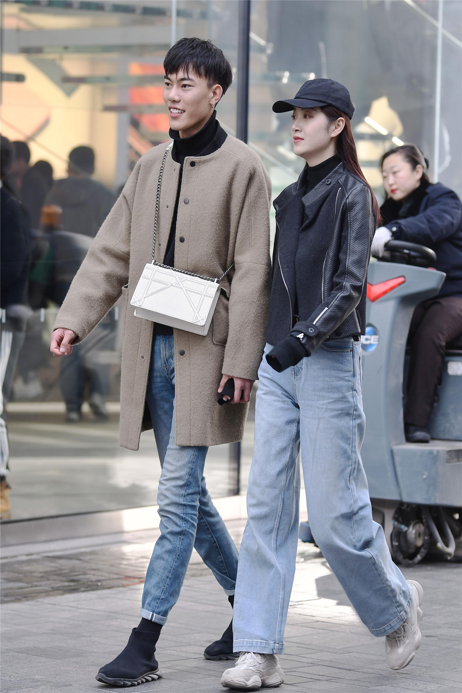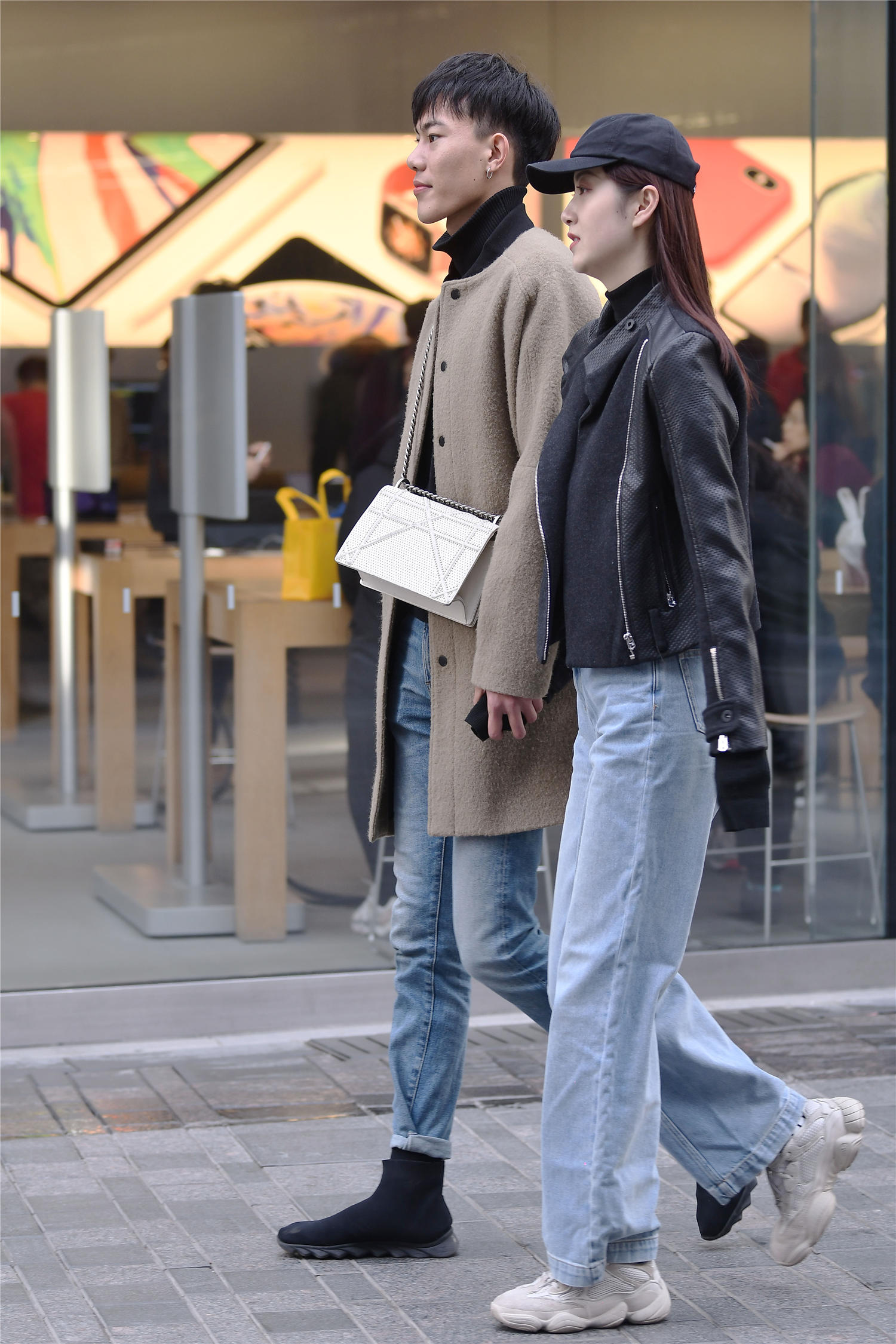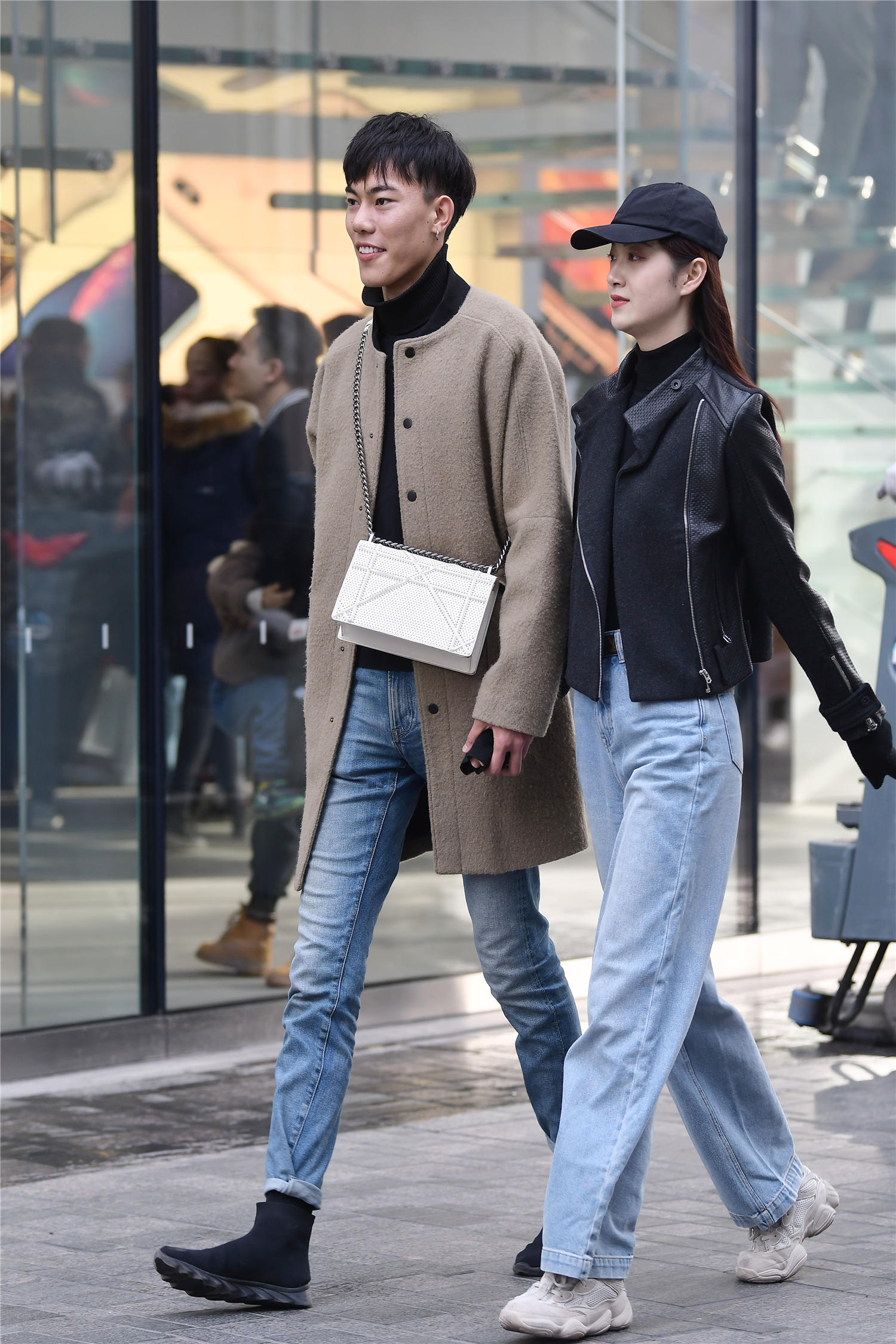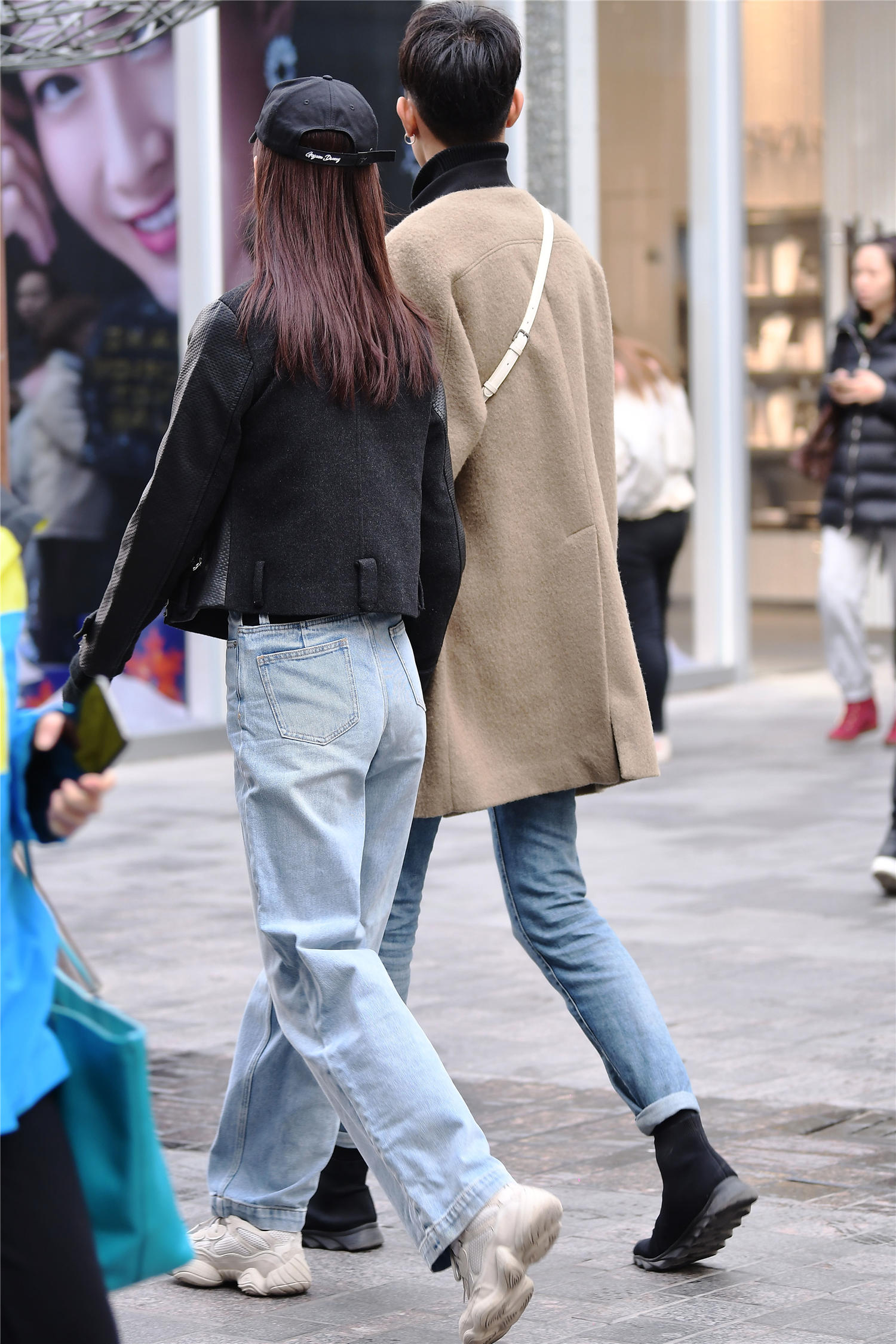 看一下这位身材高挑匀称的姑娘,选择一款蓝色牛仔裤,直筒的宽松牛仔裤,非常休闲的效果,也没有显瘦的效果,也不显身材曲线,看着很简单的穿搭,是不是也会有着很好的效果,还会有着显腿直的效果,里面可以搭配打底裤一类的保暖服装,冬天出门要穿搭保暖,还是很重要的。