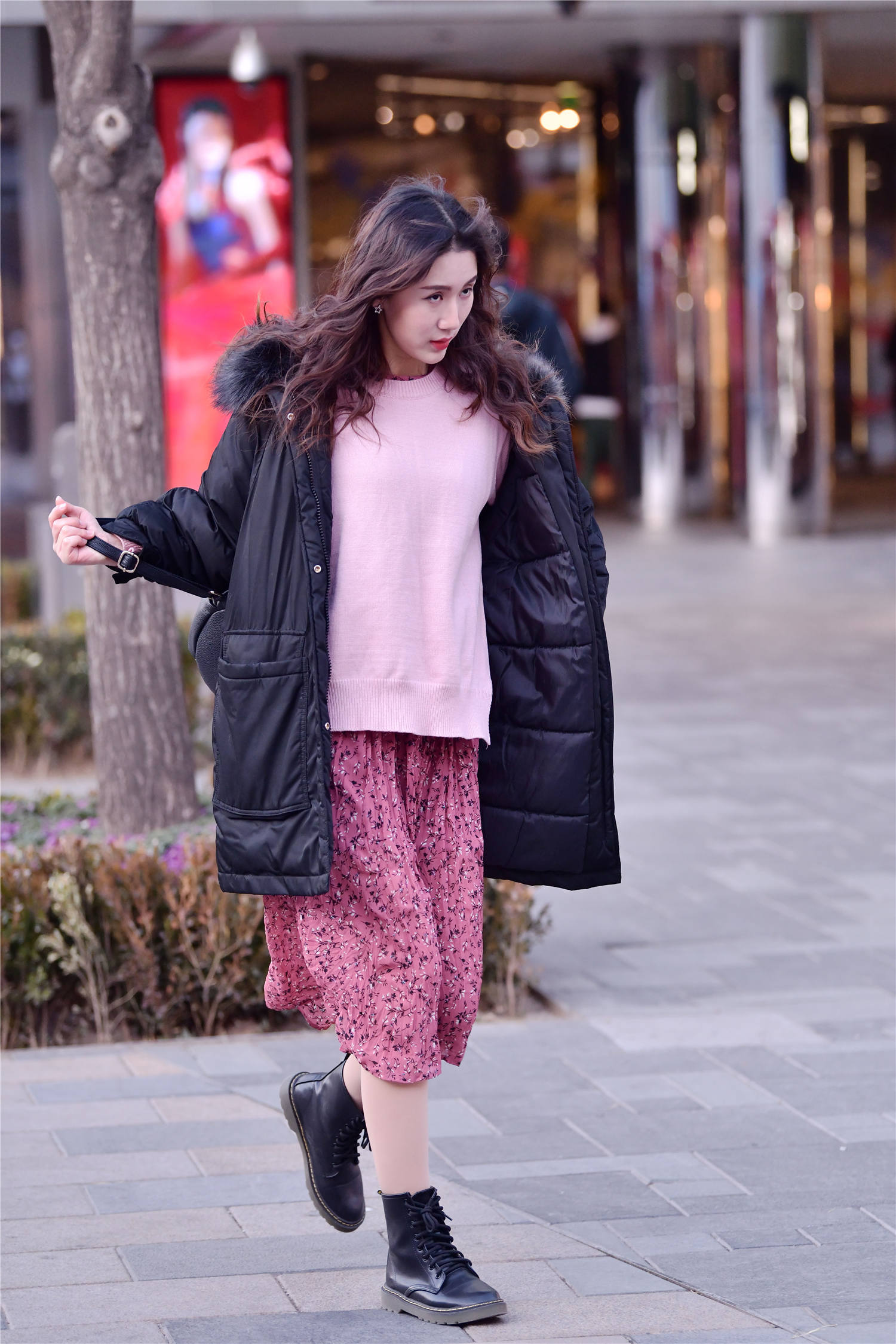 冬天到底冷不冷,要怎么搭配?对于不同的人来说,真的是不一样,体制不一样,有些人会穿着不多的服装,展现出自己的时尚感觉,有些人会穿着厚实的服装,或者就不出门了,看一下这位穿着裙子的姑娘,红色印花裙,非常简单,浅粉色小衫,外面的黑色中长款羽绒服,还畅怀穿着,脚下的马丁靴,简单又显得有些小女生的感觉。