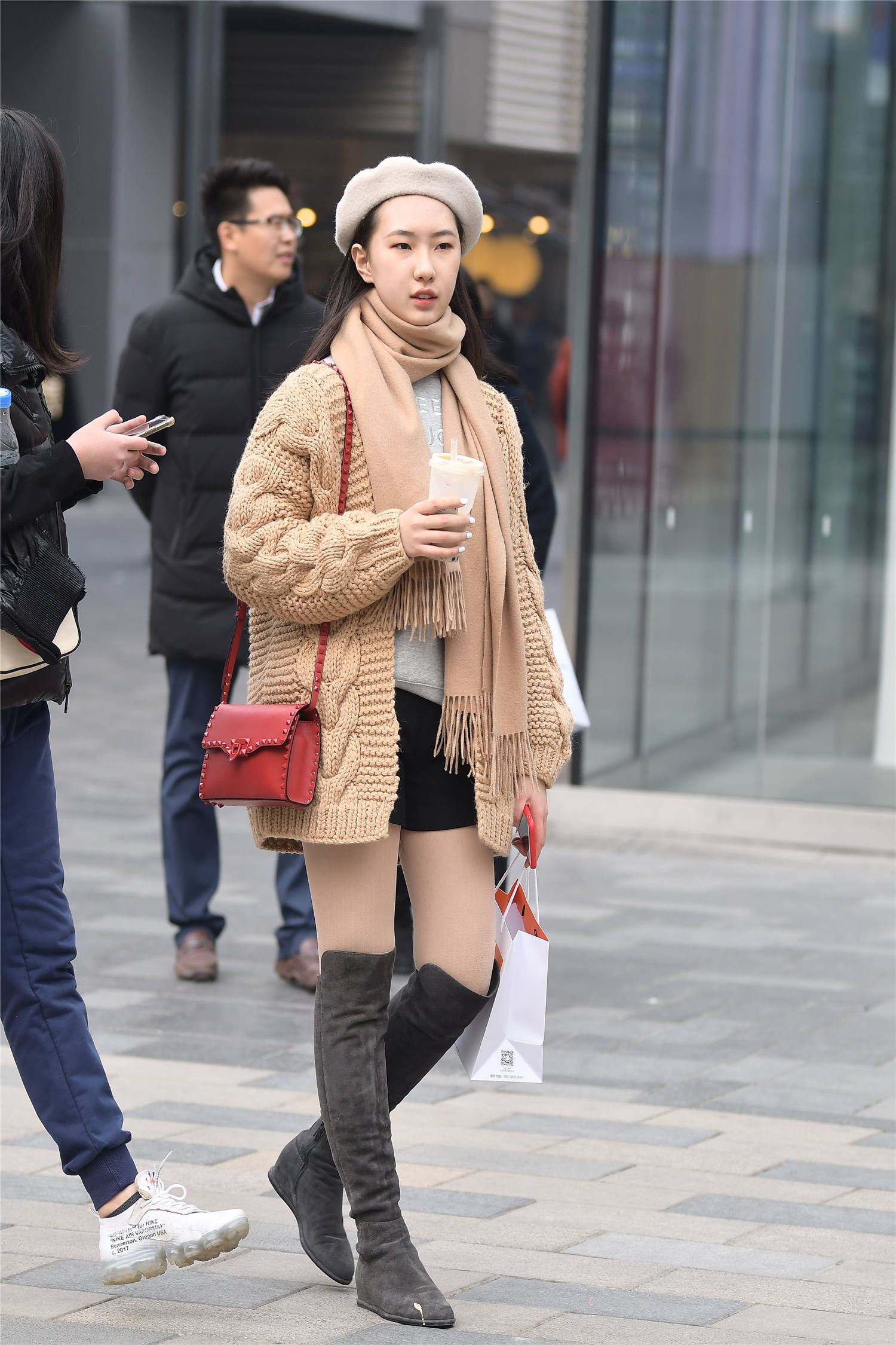 冬天要搭配出层次感,要让别人看着也不太冷的效果,其实有很多搭配组合,看一下这位美女,选择一款米黄色展示外套,粗针织纹理,非常好看,一款个性的围巾,会起到很好的保暖效果,灰色衬衣搭配黑色短裤,一款肉色打底裤和深灰色长靴,这样搭配修身的效果,也展现出不怕冷的感觉。