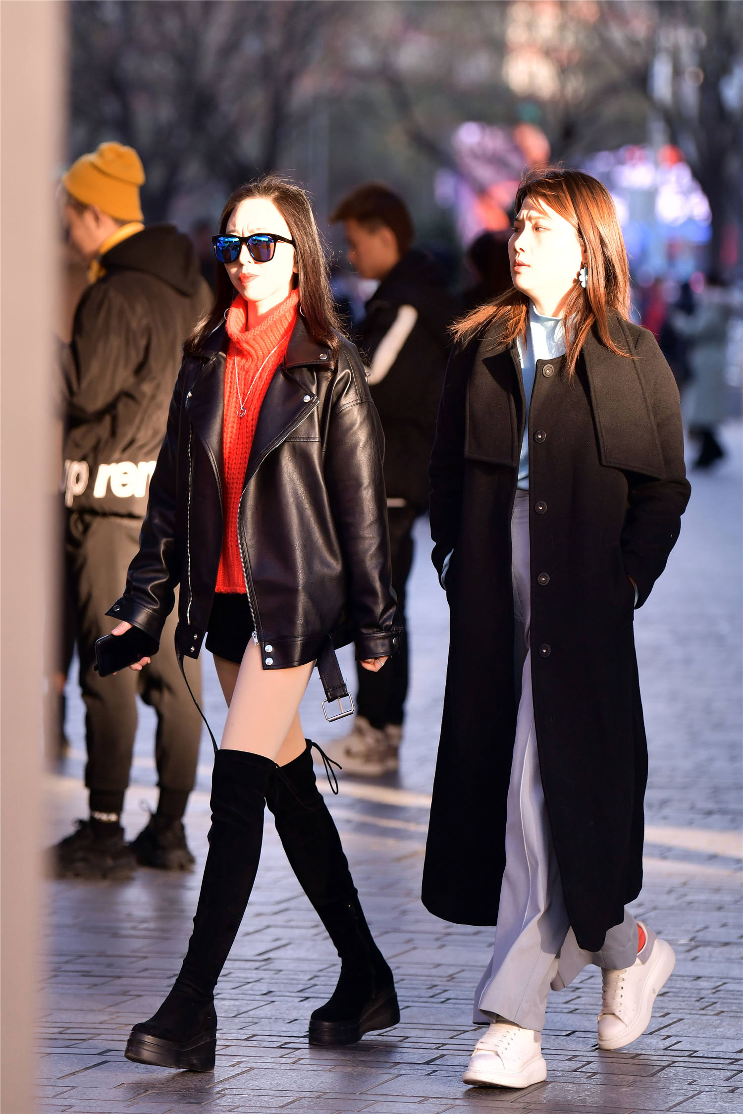 冬天的搭配,每个人会有着自己的想法,她们也想搭配出自己的味道,所以冬天搭配出显身材的效果,是非常好看的,看一下这位身材匀称的美女,选择一双黑色厚底长靴,过膝修身的款式,搭配出显腿长的效果,搭配肉色打底袜和黑色短裤,非常时尚的感觉,一款红色高领毛衣,外面一款黑色皮质外套,搭配出自己的感觉,展现出自己的时尚味道。