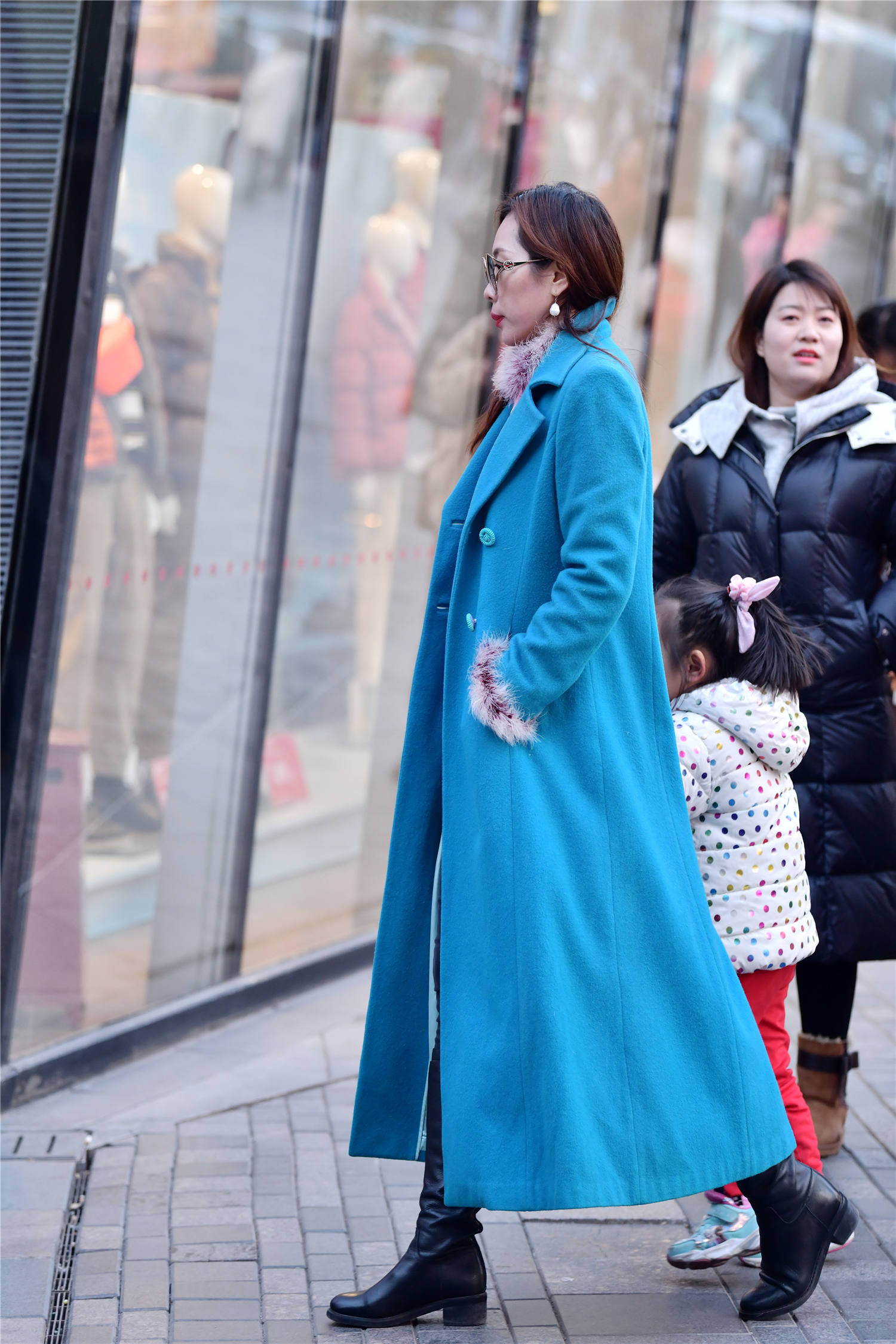 很多人穿着大衣,也想搭配出气质来,所以选择款式很重要,还要有搭配技巧,对于自己的形体也要有锻炼才好,看一下这位美女,选择一款蓝色长款大衣,非常简单的款型,但是肩膀处有点立肩的设计,这样就会显得非常有气质,衣摆到脚踝的位置,让搭配变得更简单一些,脚下穿着一双黑色长靴,也是冬天的保暖搭配。