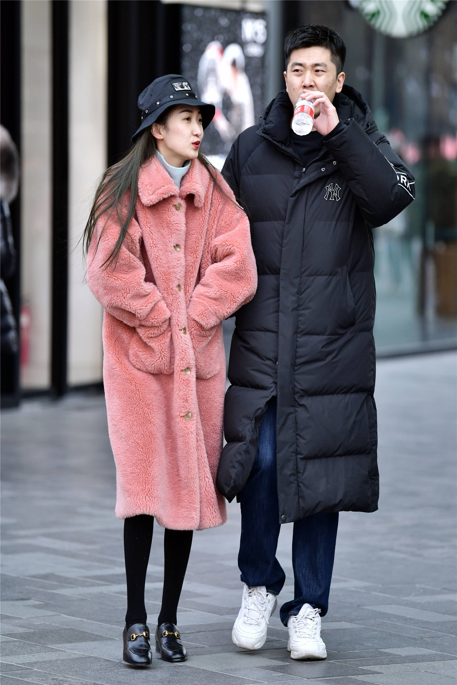 身材苗条骨感的姑娘,她们的搭配会更加简单一些,也会搭配出很美的效果,这位美女选择一款粉色的抓绒大衣,非常厚实的面料设计,也有着休闲的感觉,因为姑娘身材很苗条,即使穿着厚厚的服装,看着也会觉得很瘦,搭配黑色打底袜和一双平底的皮鞋,非常好看,也展现出自己的身材,冬季的时尚姑娘就是要展示自己才好。