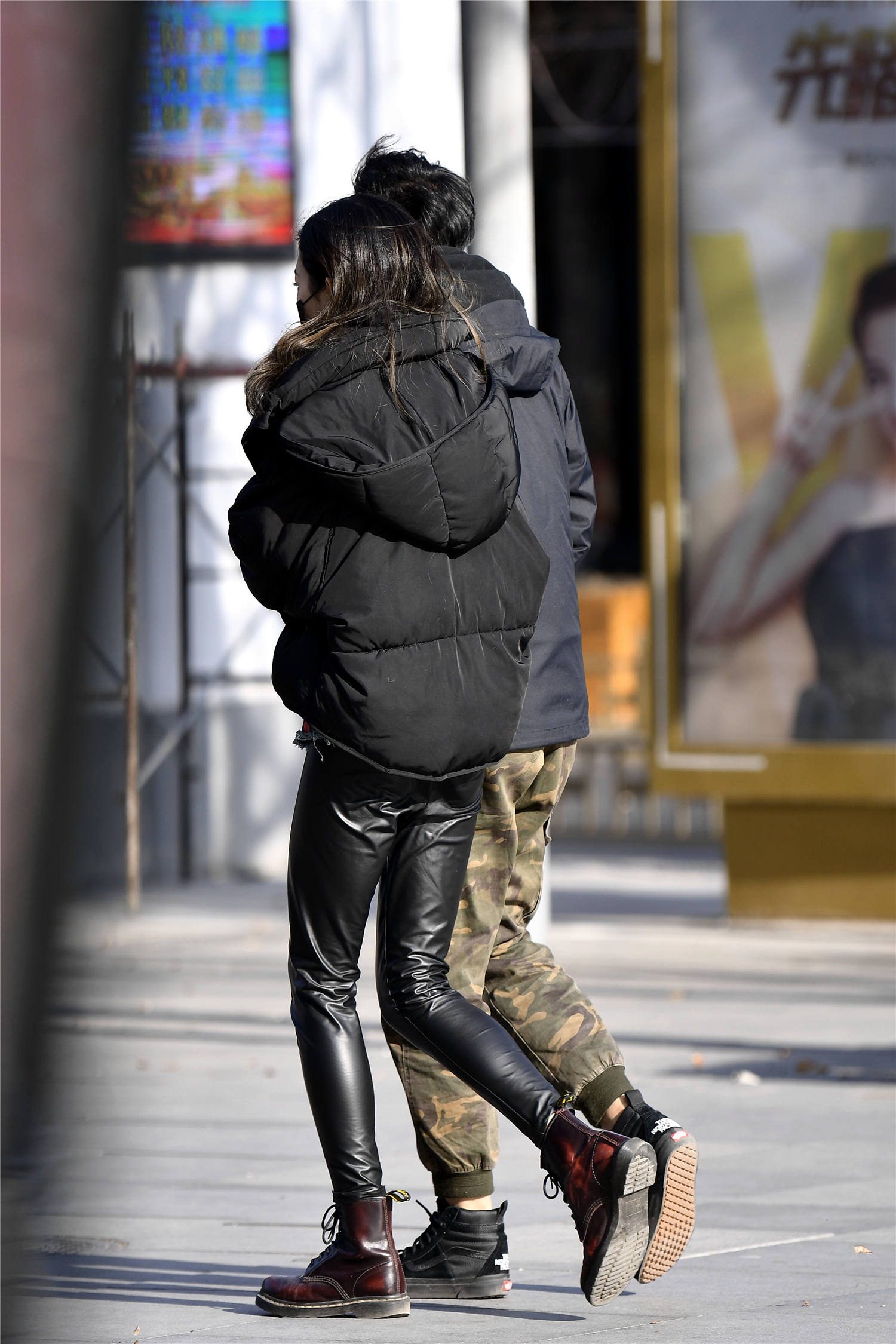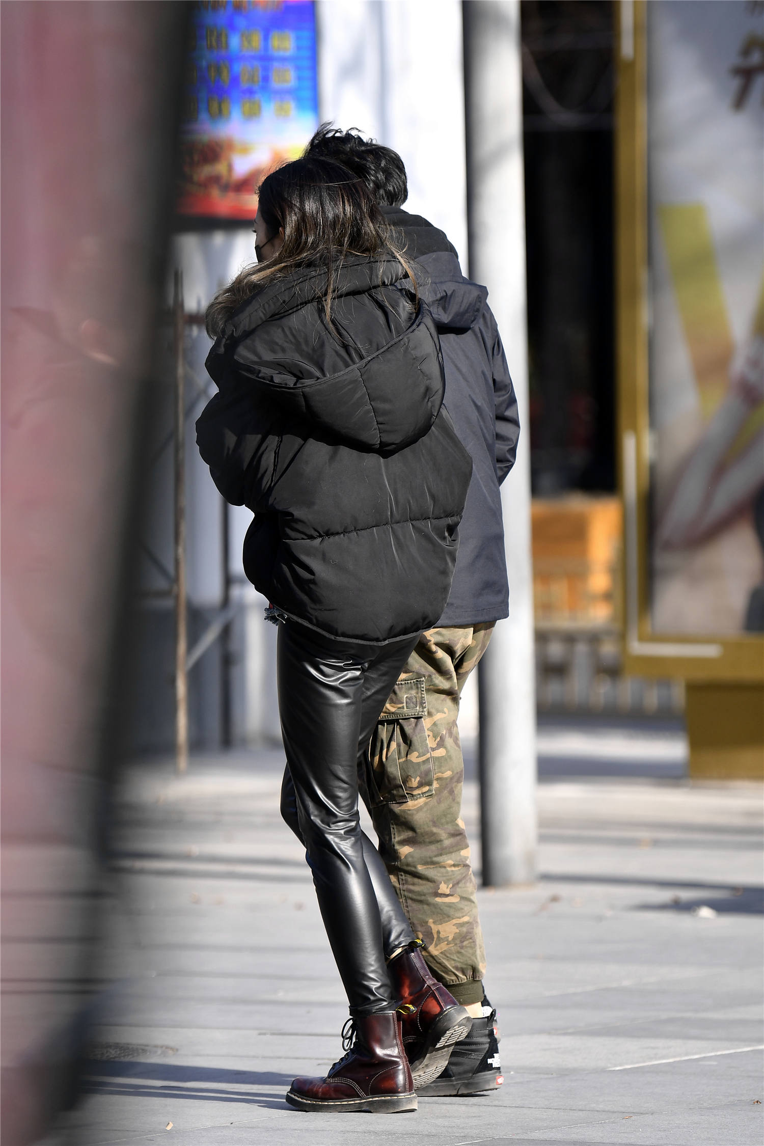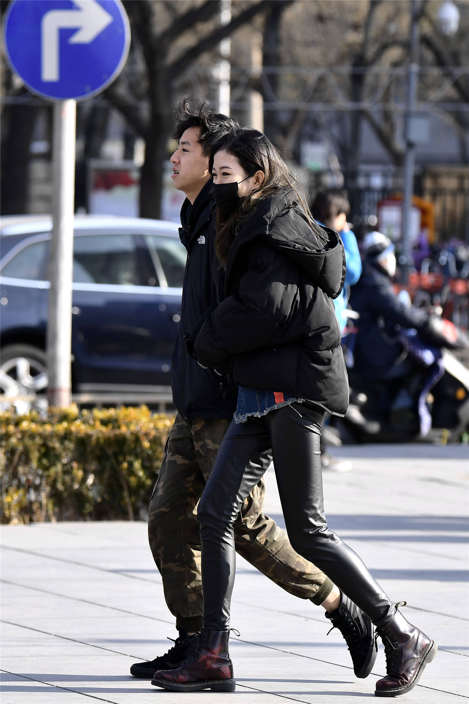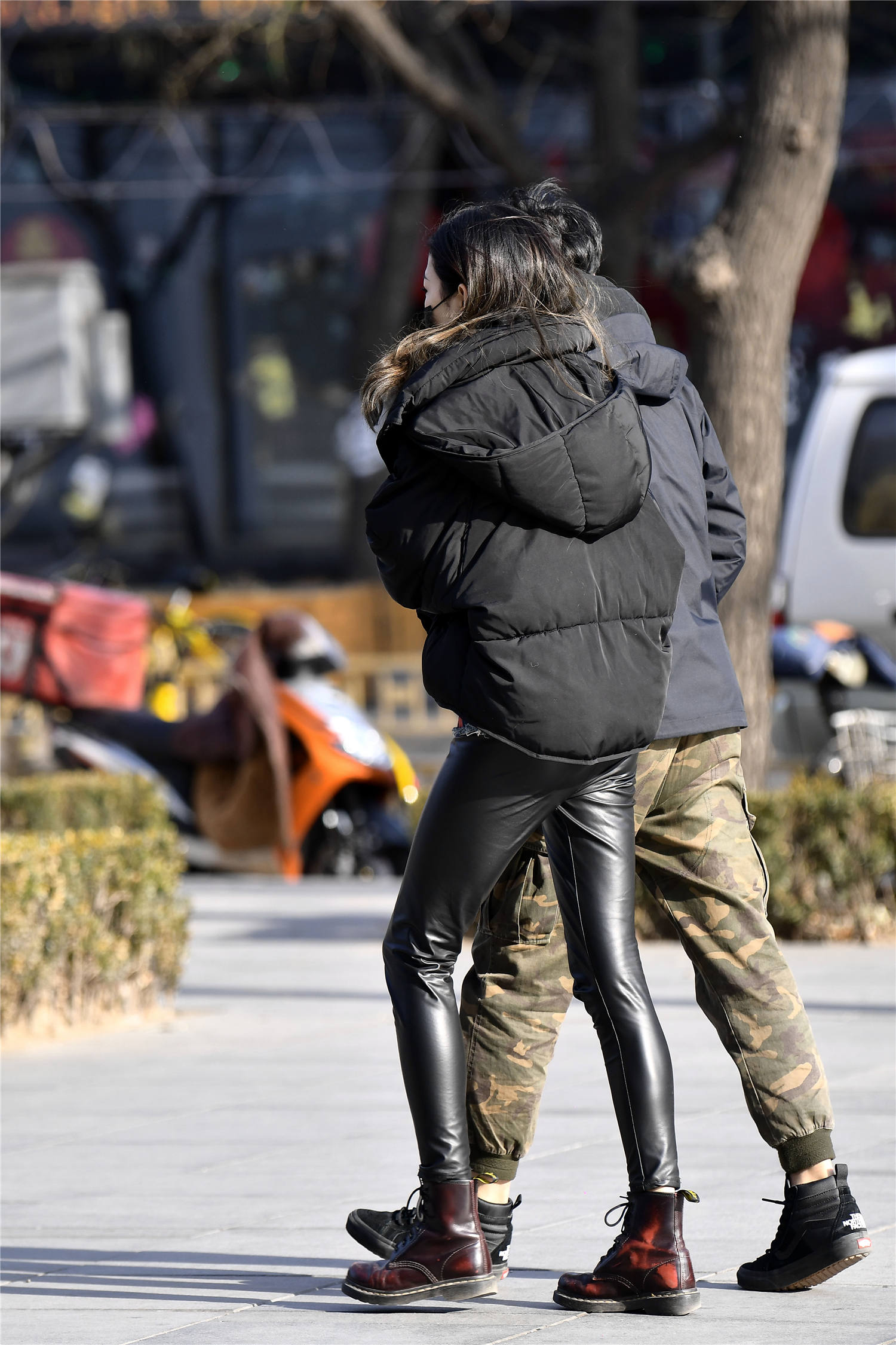 这位美女选择一款紧身皮裤,其实冬天很多姑娘会喜欢这样的搭配,穿着非常有质感,还展现出自己身材,苗条的姑娘,搭配出很美的效果,对于喜欢展示自己的姑娘来说,这样的裤子很好看,也是冬天搭配的经典版型,蓝色的牛仔,露出来一点,有点像是一款裙子,短款的黑色羽绒服,这样就非常保暖了,而且还显得松紧搭配很得体的效果。