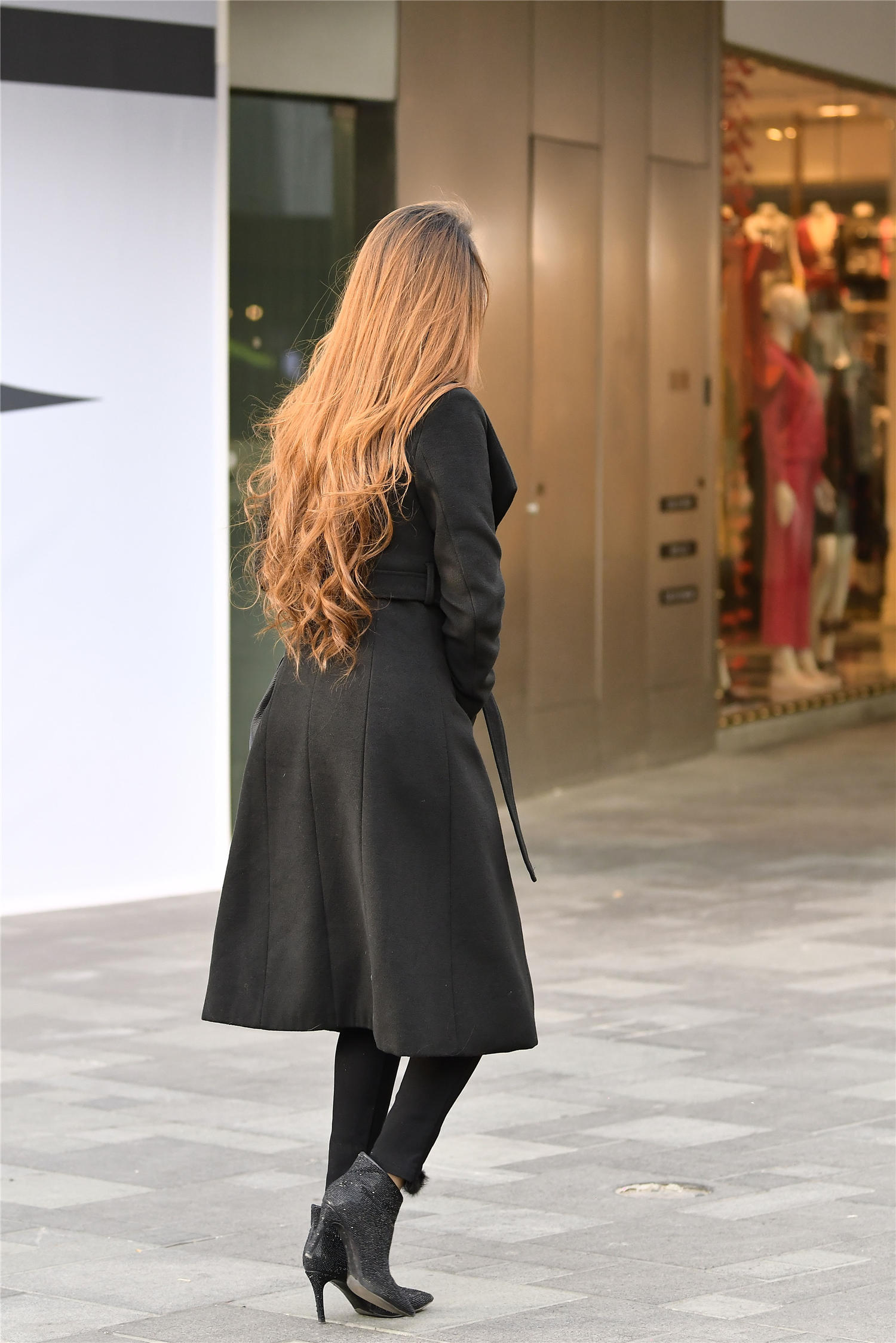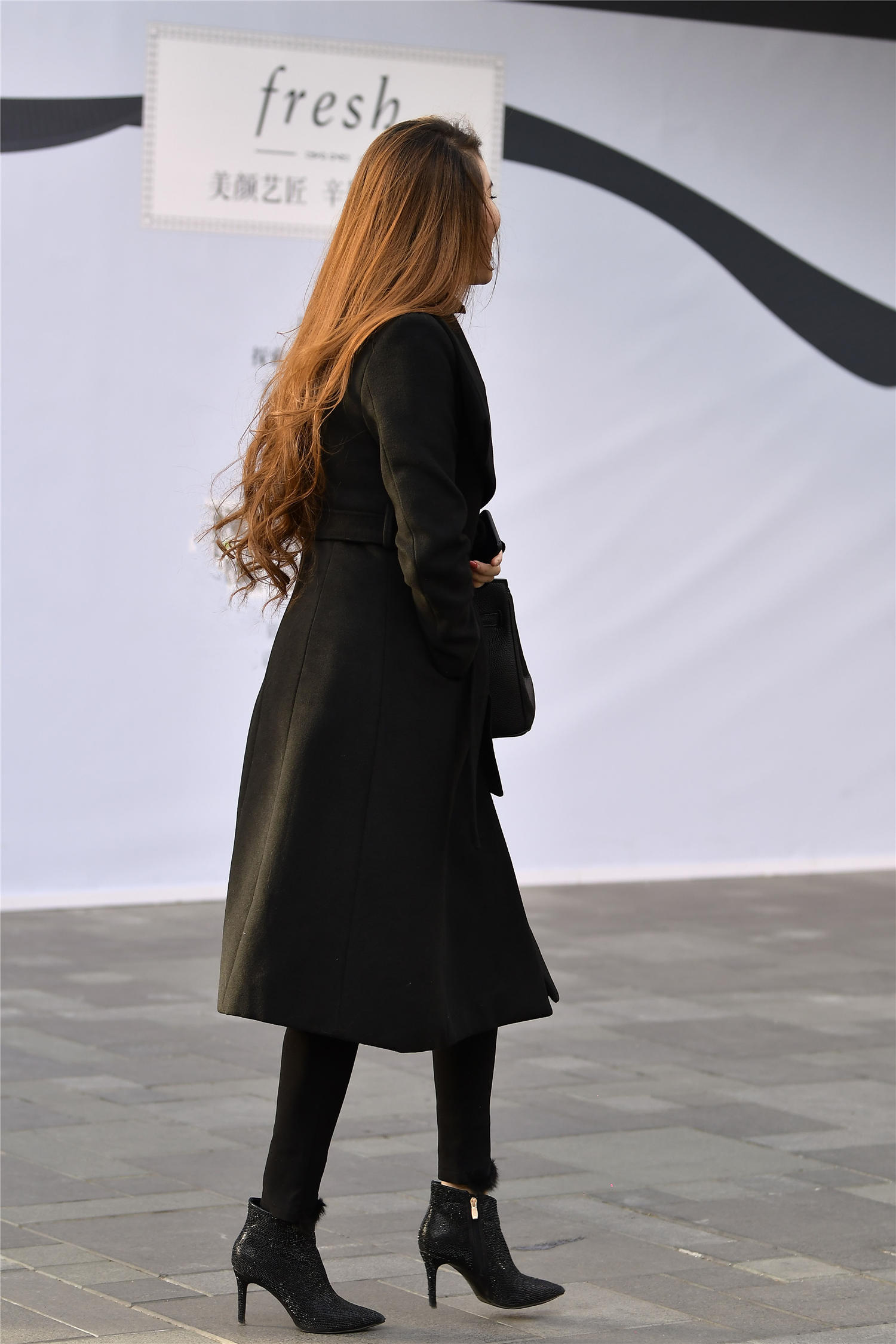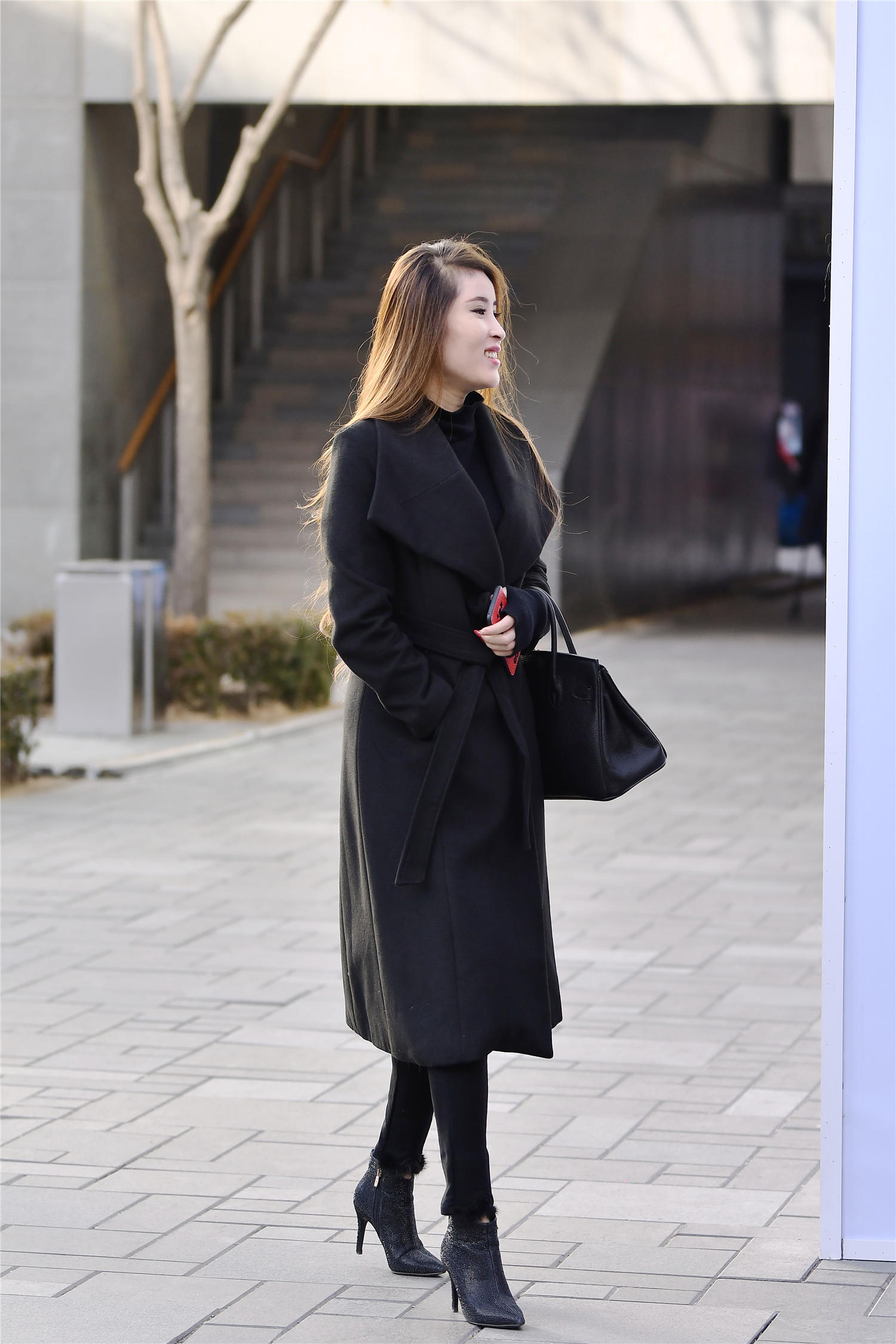 冬天的色彩,很多美女选择黑色款式,要搭配出精彩的效果,也是非常漂亮的,这位美女选择一款黑色大衣,过膝的长度,也会展现出很好看的效果,而且黑色要选择立肩的,这样会显得非常有精神,简约的风格,非常好看,搭配一条黑色紧身裤,这样的黑色,非常显身材,搭配一款黑色拎包,显得简约大气。