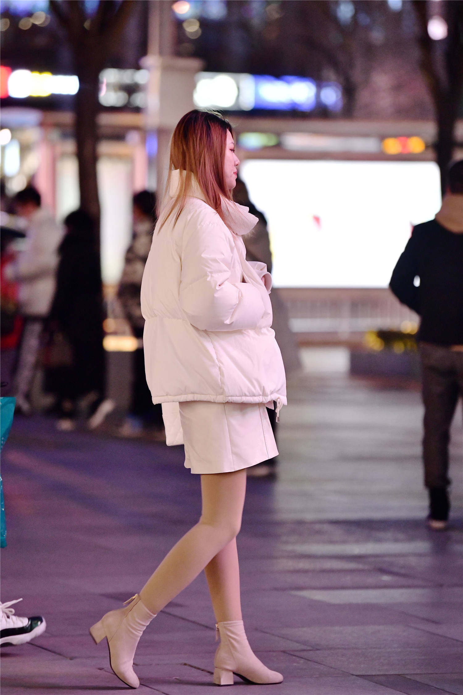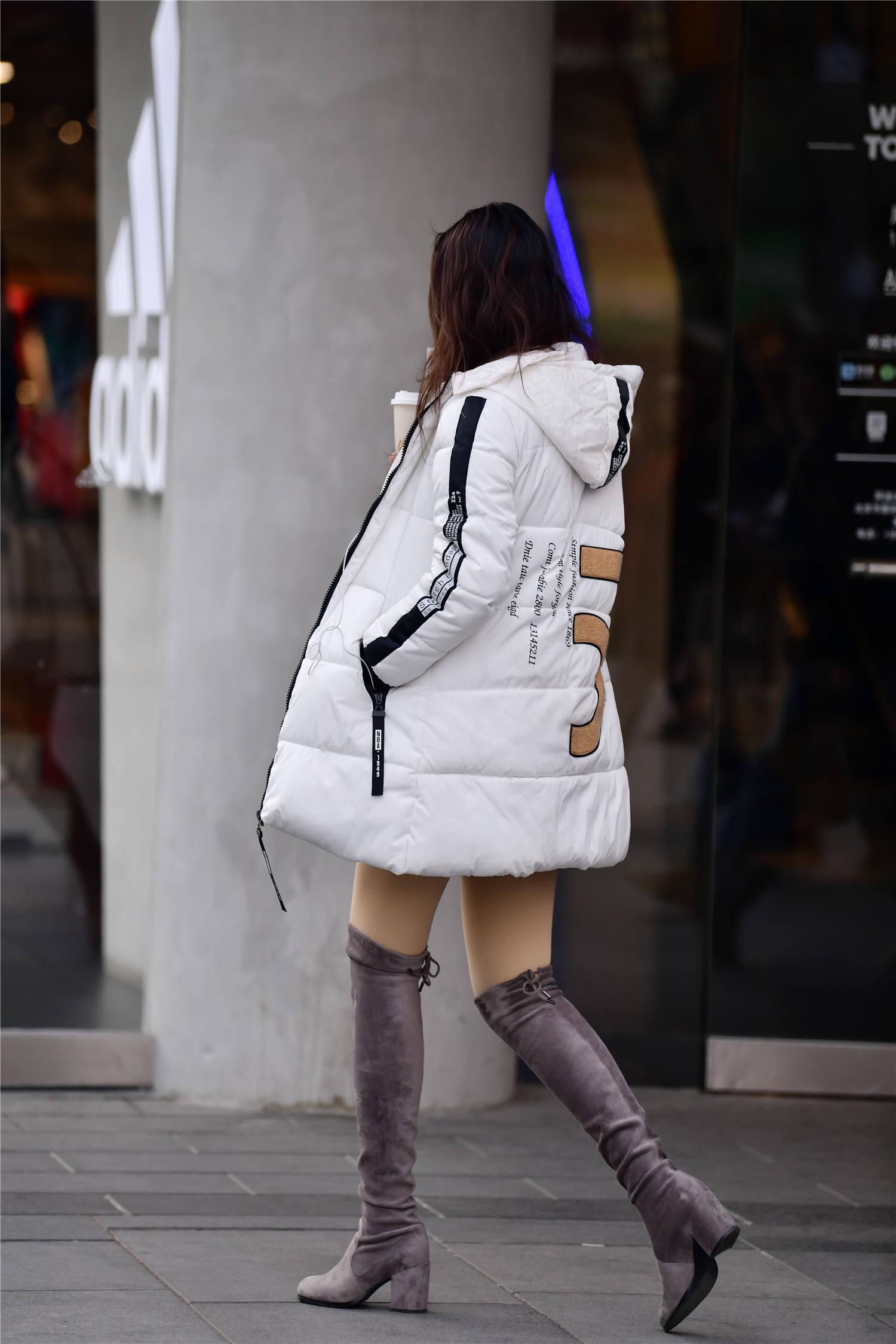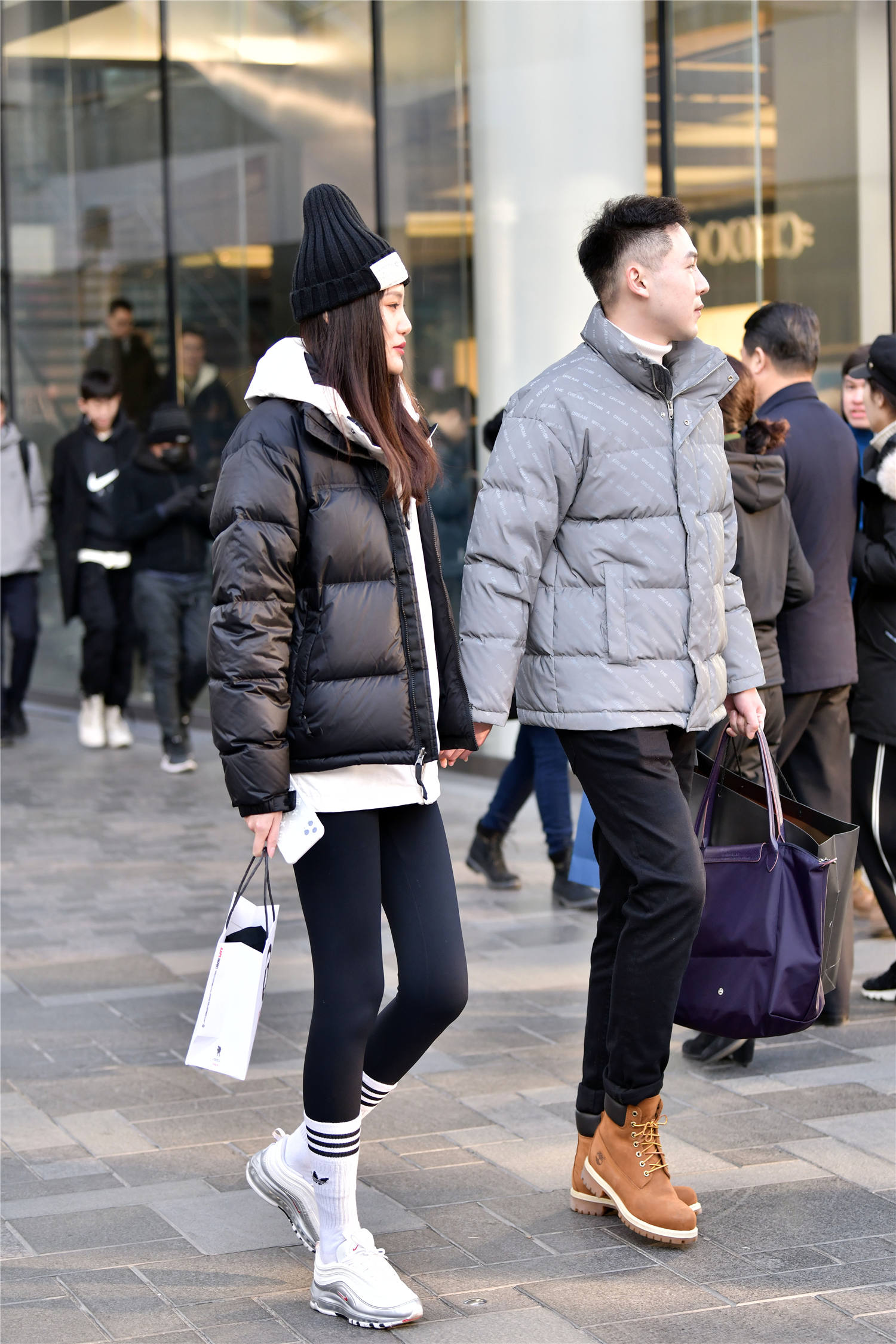 冬天要穿出保暖的效果,还要搭配出显身材的感觉,每一位时尚姑娘,要知道怎么去搭配自己,也知道什么款式的服装适合自己,这位美女选择一款黑色打底裤搭配白色高筒袜,和一双白色运动鞋,白色卫衣外面一款黑色羽绒服,有着面包服的感觉,这样穿搭看着就很保暖,头上的针织帽,看着非常秀气,搭配出很美的感觉。