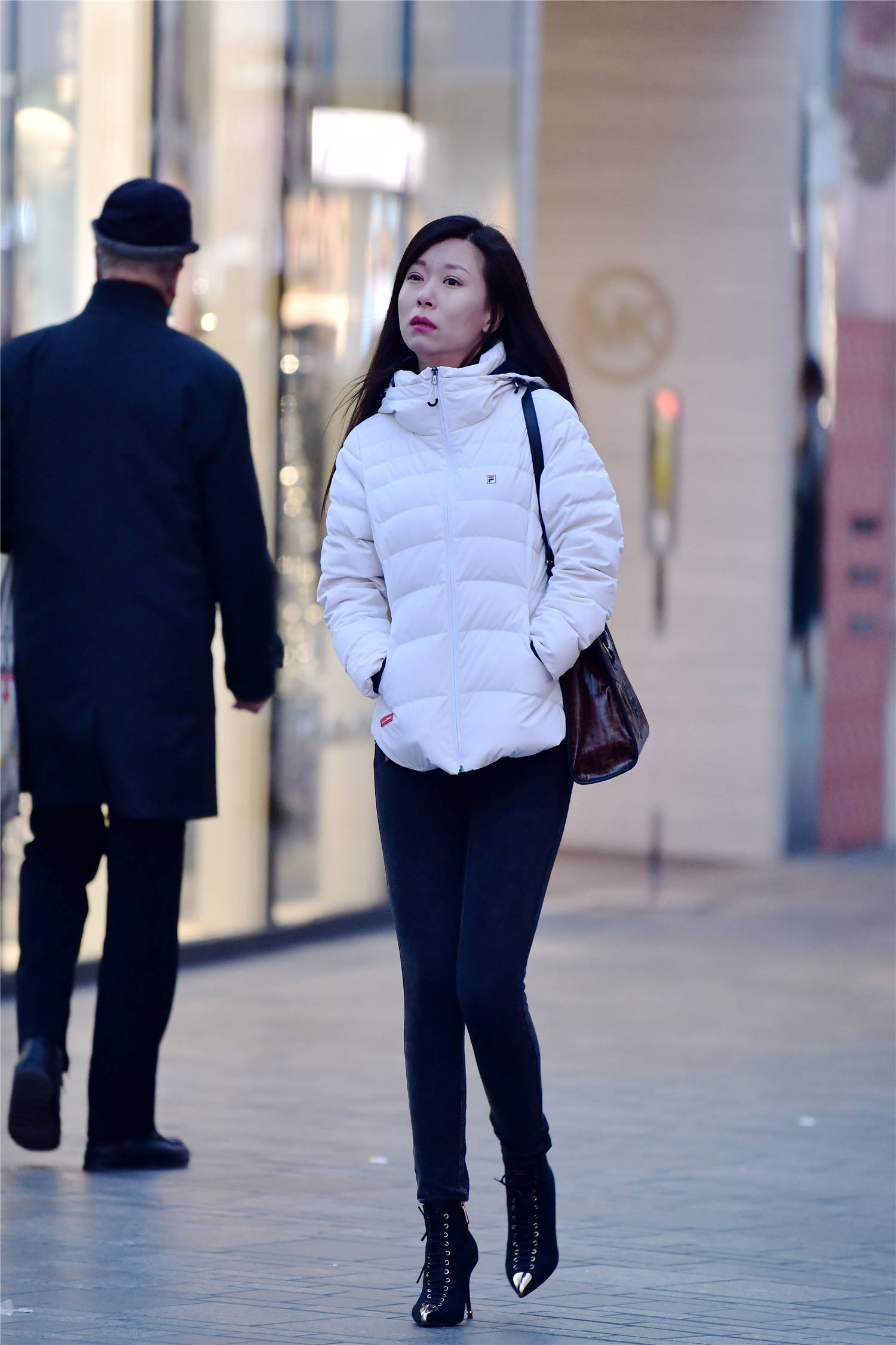 爱美的姑娘,在冬天要搭配出层次感,那么怎么穿出自己的时尚感觉呢?短款的羽绒服,会让搭配更有层次感,也展现出很精致的效果,搭配出自己的时尚味道,这位美女选择黑色紧身裤搭配黑色系带尖头细跟短靴,非常显身材的效果,金属的尖头,增加质感,还搭配粗很精致的感觉,显得身材高挑还有型,白色短款羽绒服,黑白色搭配,非常好看。