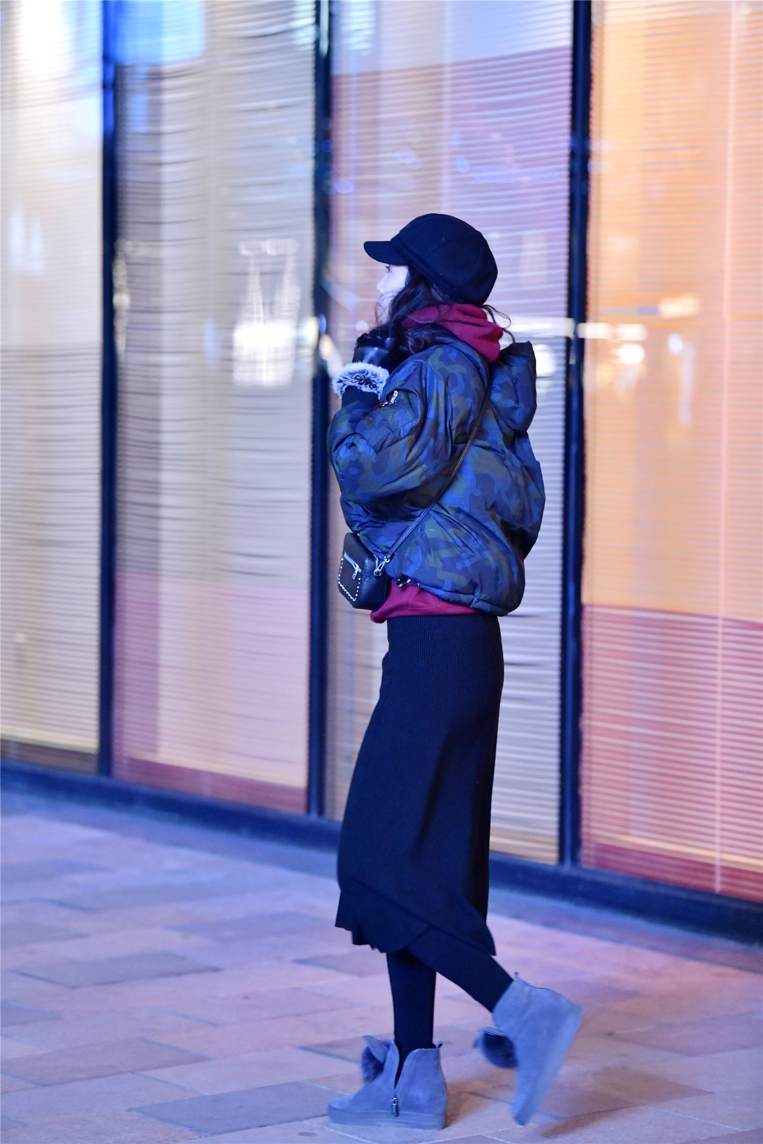 想要展示自己,就要穿出自己的感觉,冬天选择而短款羽绒服,就是要展示自己的层次感,这位美女选择深色系搭配,也是冬季很多人喜欢的穿搭方式,休闲的短款羽绒服,里面一款暗红色卫衣,搭配出很精致的感觉,黑色长裙,冬天穿着裙子,也是爱美的表现,黑色打底裤搭配深灰色短靴,穿出自己的时尚感觉。
