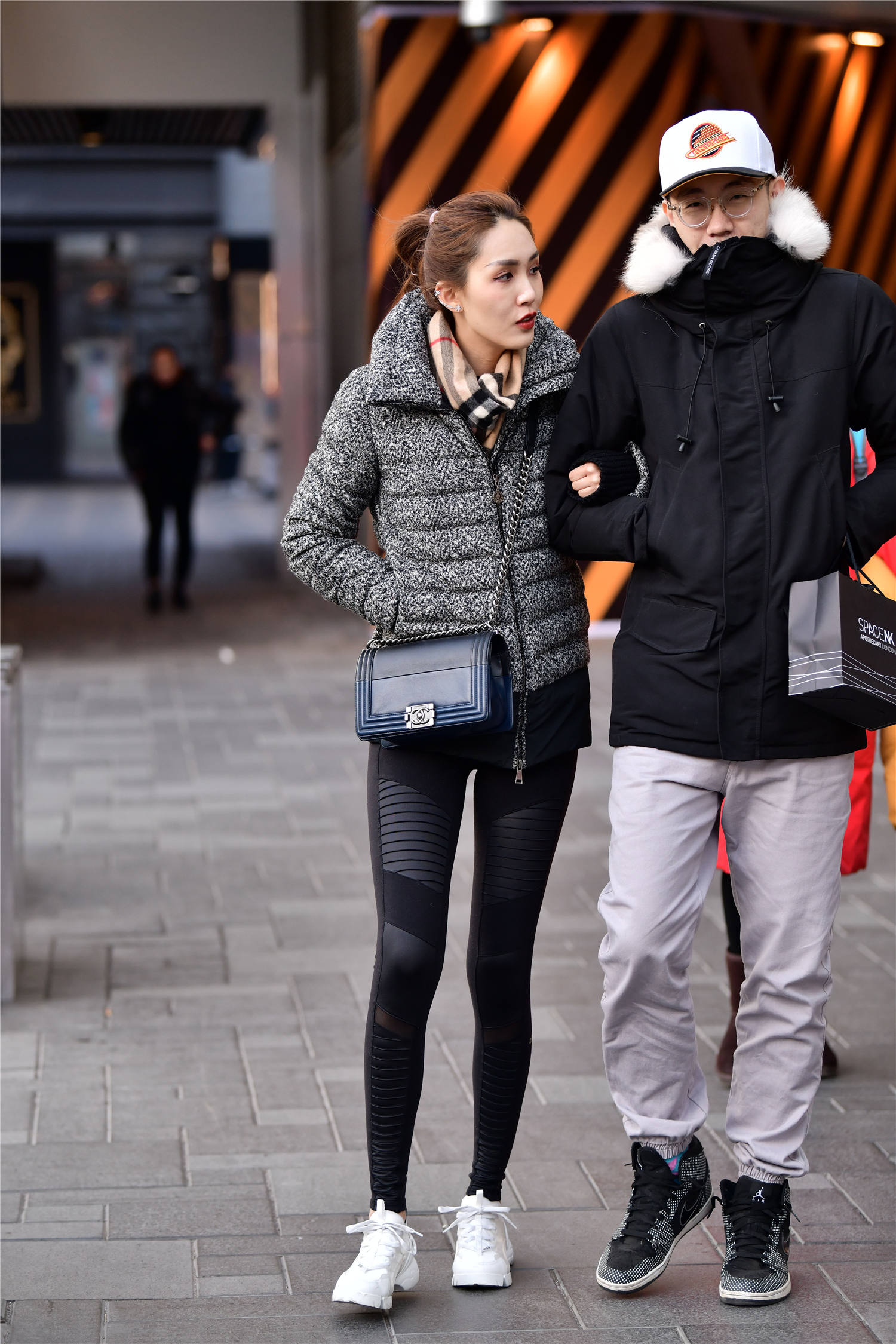 冬天里有很多姑娘想展示自己,她们要穿出自己的时尚味道,搭配出自己的修身效果,这位美女选择一款黑色的打底裤,非常显身材,也看出姑娘是经常健身的,才会这样搭配,而且冬天这样穿是不是会有些冷呢?一款深灰色的羽绒服,短款的设计,暖色的格子围巾,有着非常保暖的效果,脚下一双白色运动鞋,搭配出很精致的感觉。
