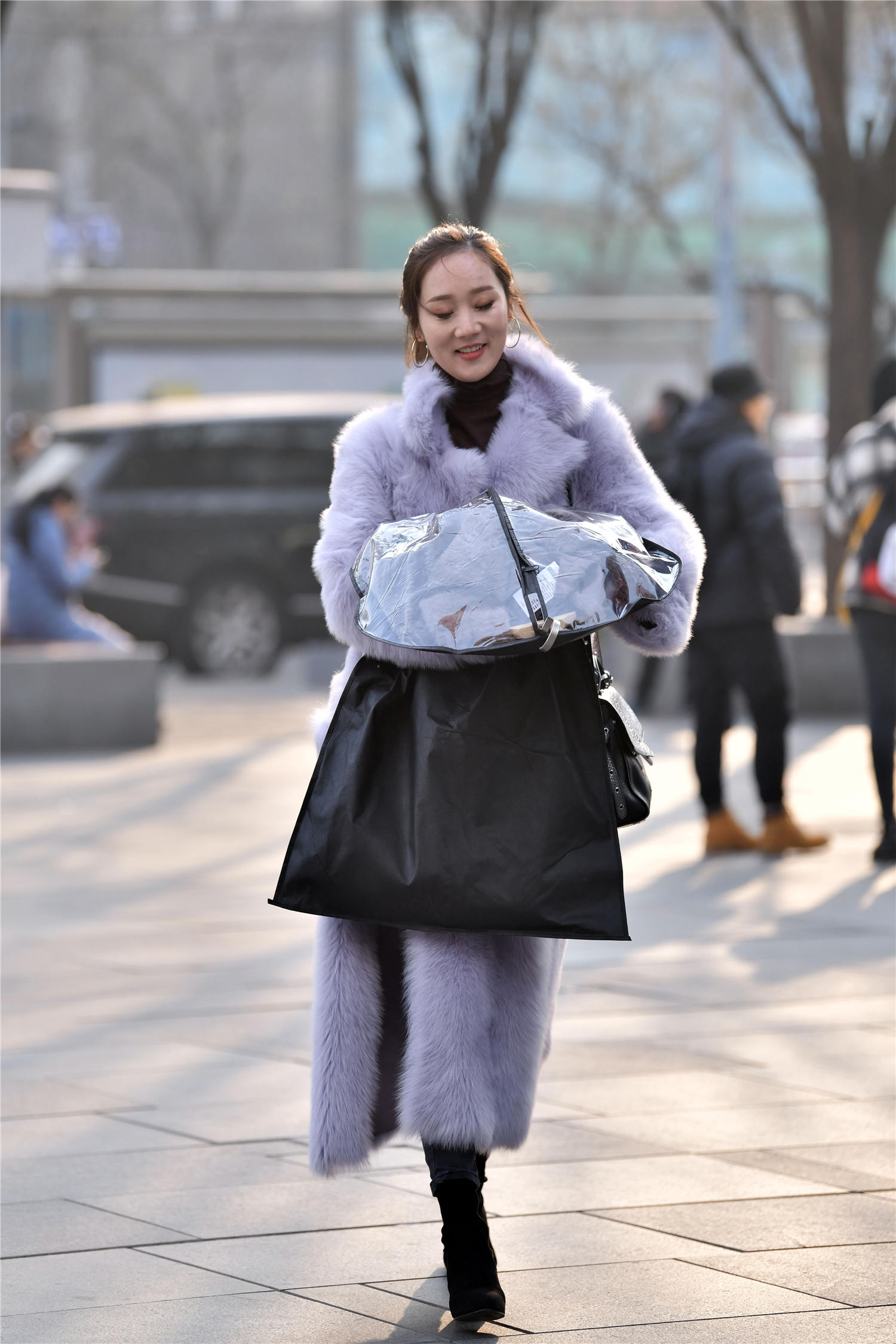 时尚的姑娘,知道冬天要如何搭配,虽然每个人有着自己的搭配想法,但是一款好看又很时尚的大衣,会穿出很精致的感觉,不同的大衣,展现出不一样的质感,这位美女穿着一款皮草设计的大衣,浅蓝色的设计,非常好看,也衬托出很精致秀气的感觉,搭配出很显瘦的效果,侧面的开叉,搭配一双黑色高跟长靴,这样穿搭增高显瘦。