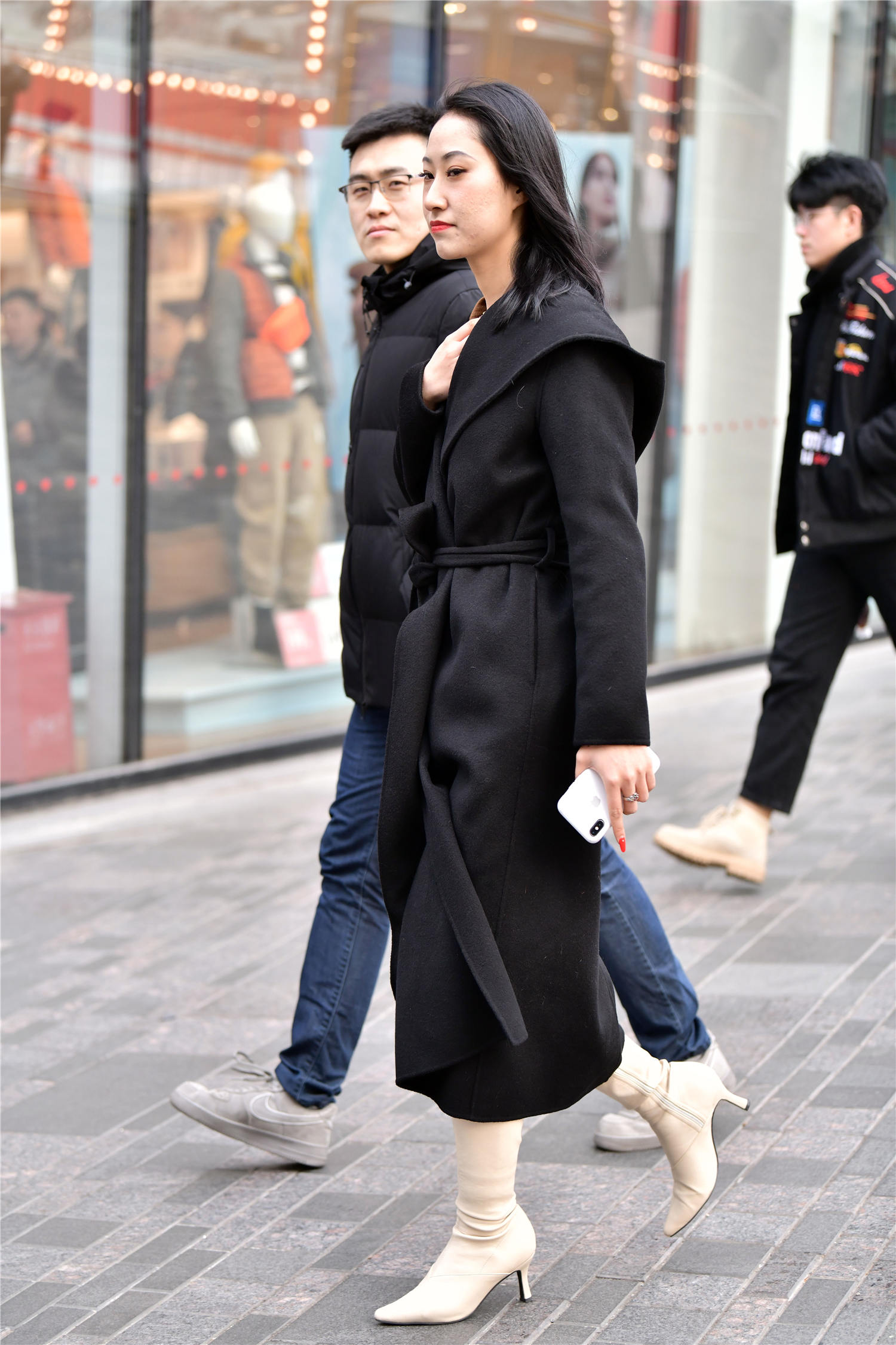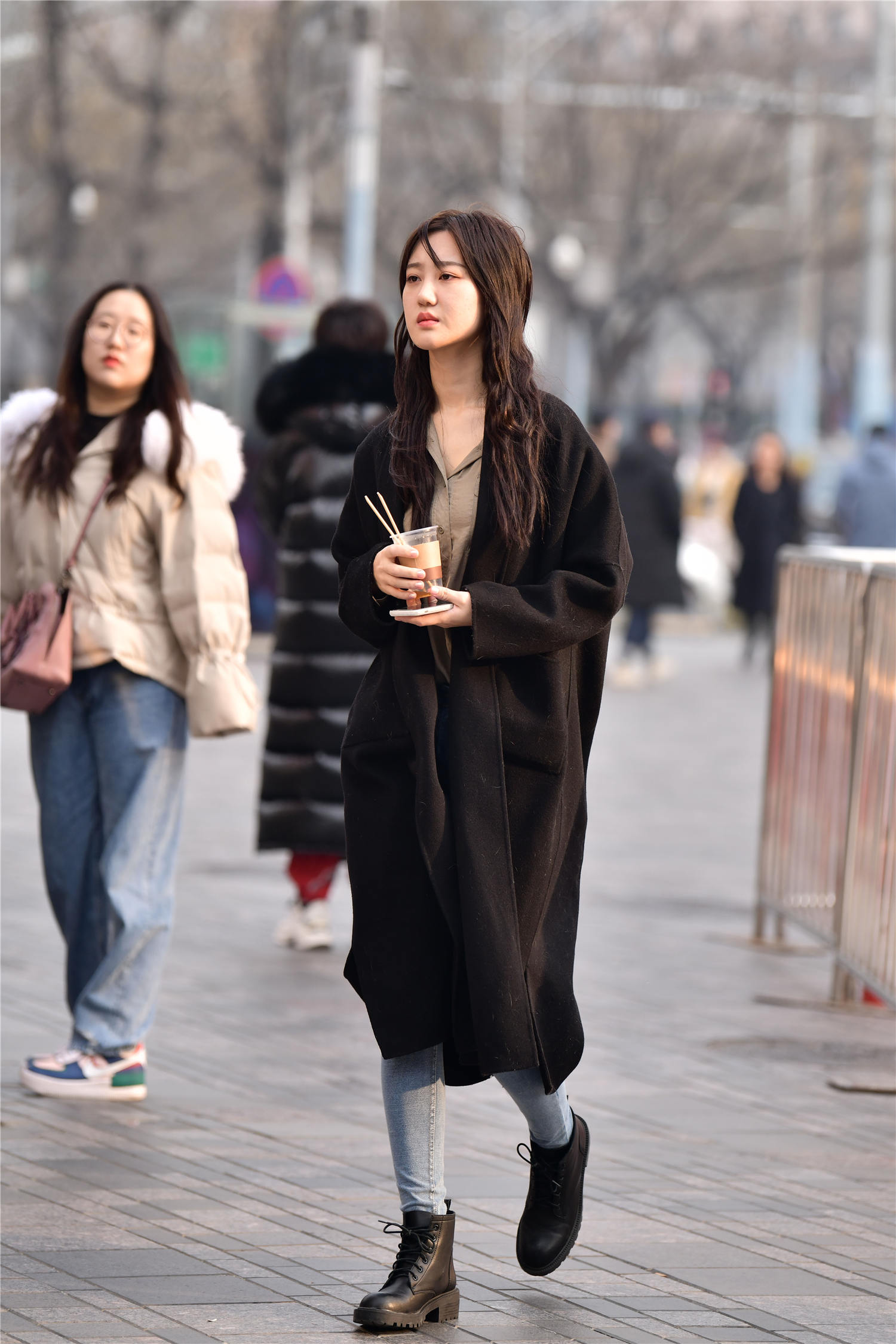 优雅的姑娘,知道怎么穿出自己的时尚味道,她们选择的服装也是很简约的,出去逛街,也知道自己该怎么穿搭才会更好看,这位美女身材高挑,也会搭配自己,黑色呢子大衣,休闲的款式,过膝的长款,里面的搭配很简单,搭配紧身的牛仔裤,浅蓝色款式,搭配一双黑色短靴,系带的款式,显得更年轻的效果。