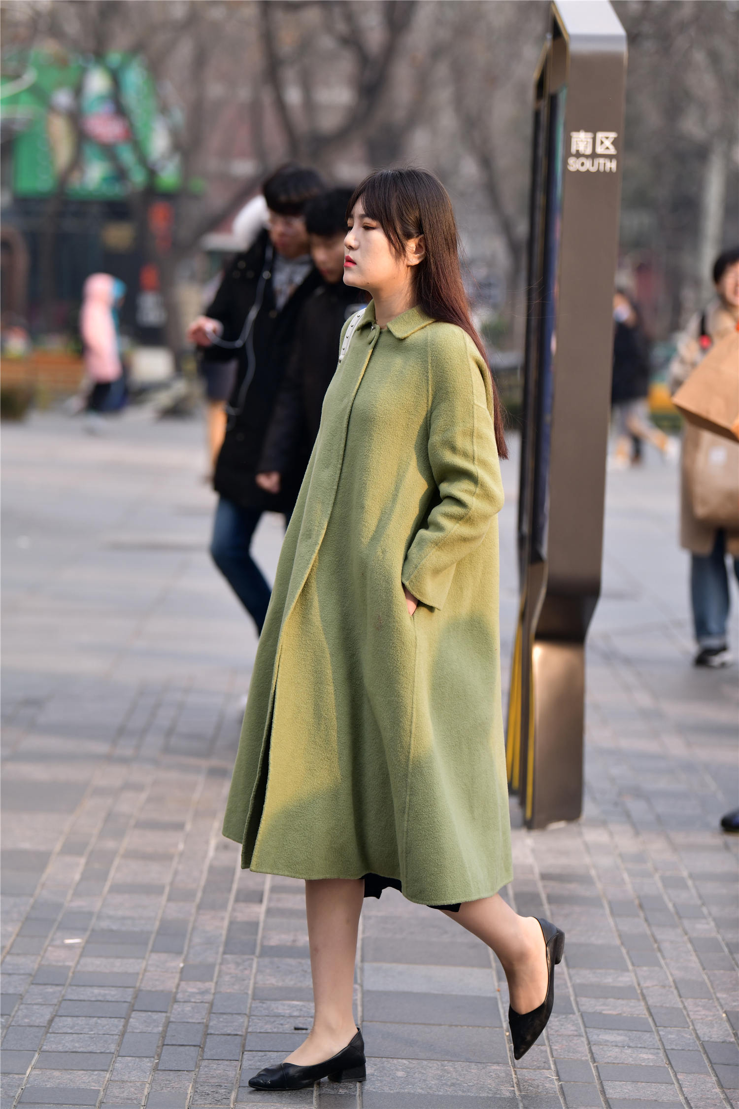 冬天要穿出自己的味道,时尚姑娘知道给如何搭配,也知道自己选择什么色彩,多尝试一些搭配,这位美女选择一款休闲的绿色大衣,大衣非常宽松,穿出很美的效果,露出自己的小腿的效果,简单的穿搭,脚下一双尖头平底鞋,就是很精致,冬天的姑娘,知道怎么搭配,这样让自己的搭配更加简约。