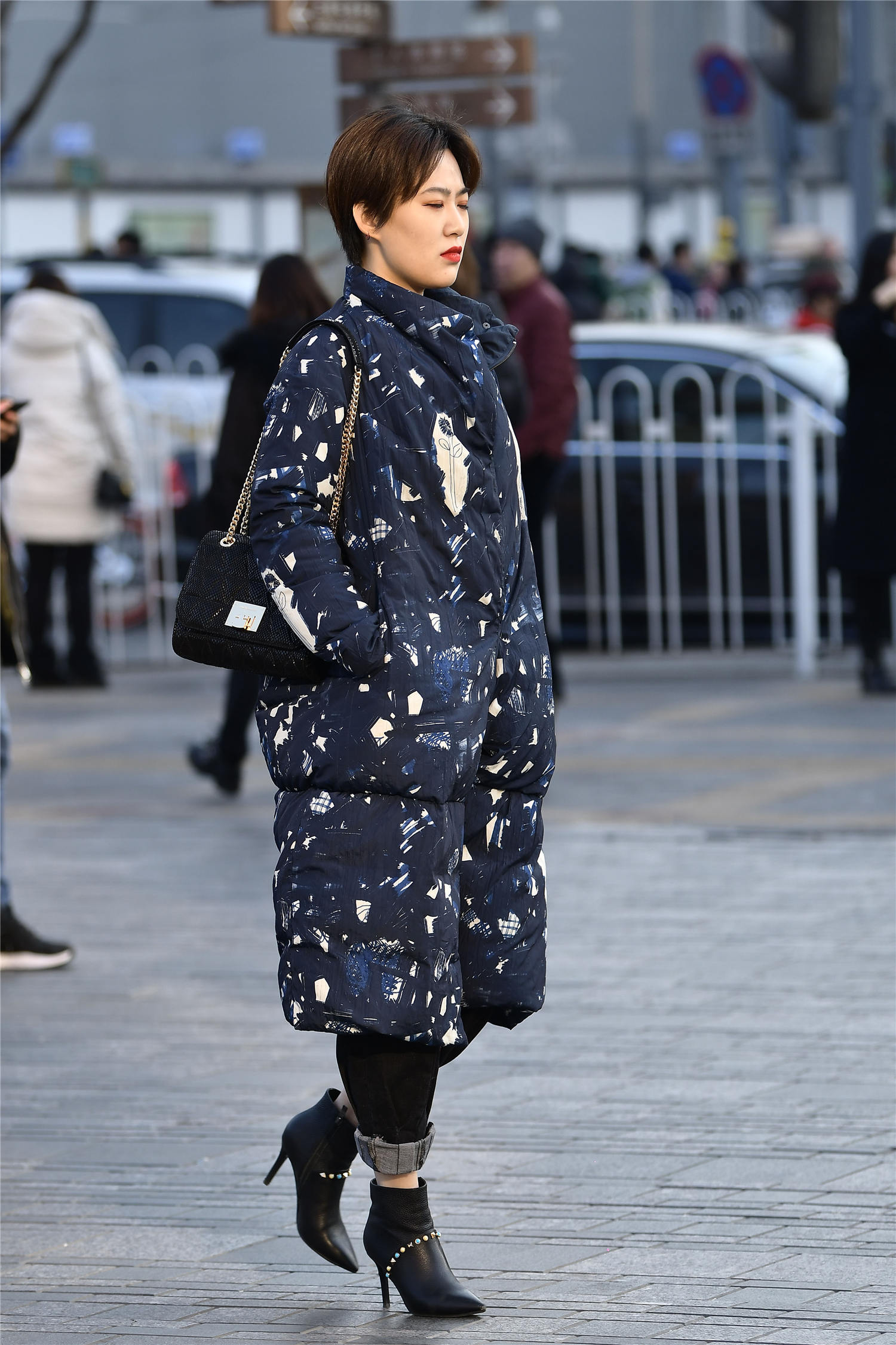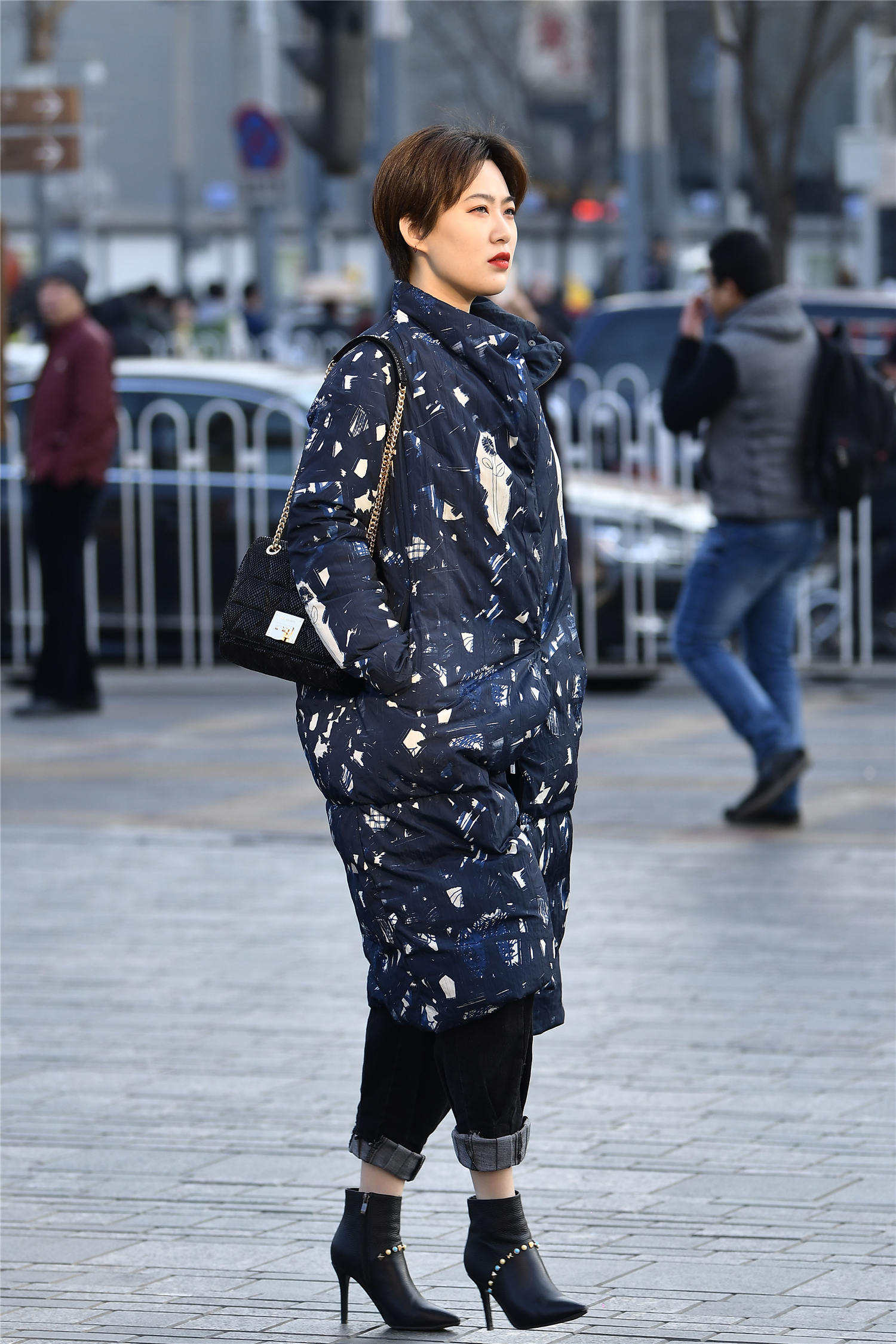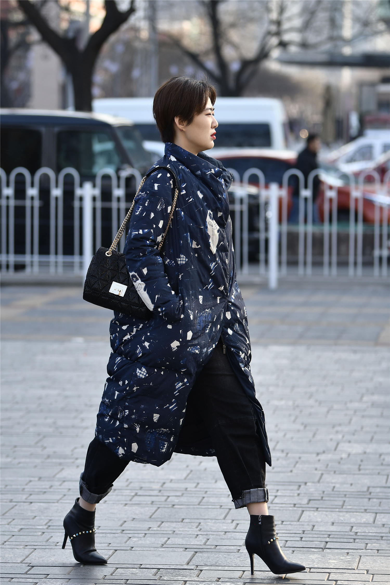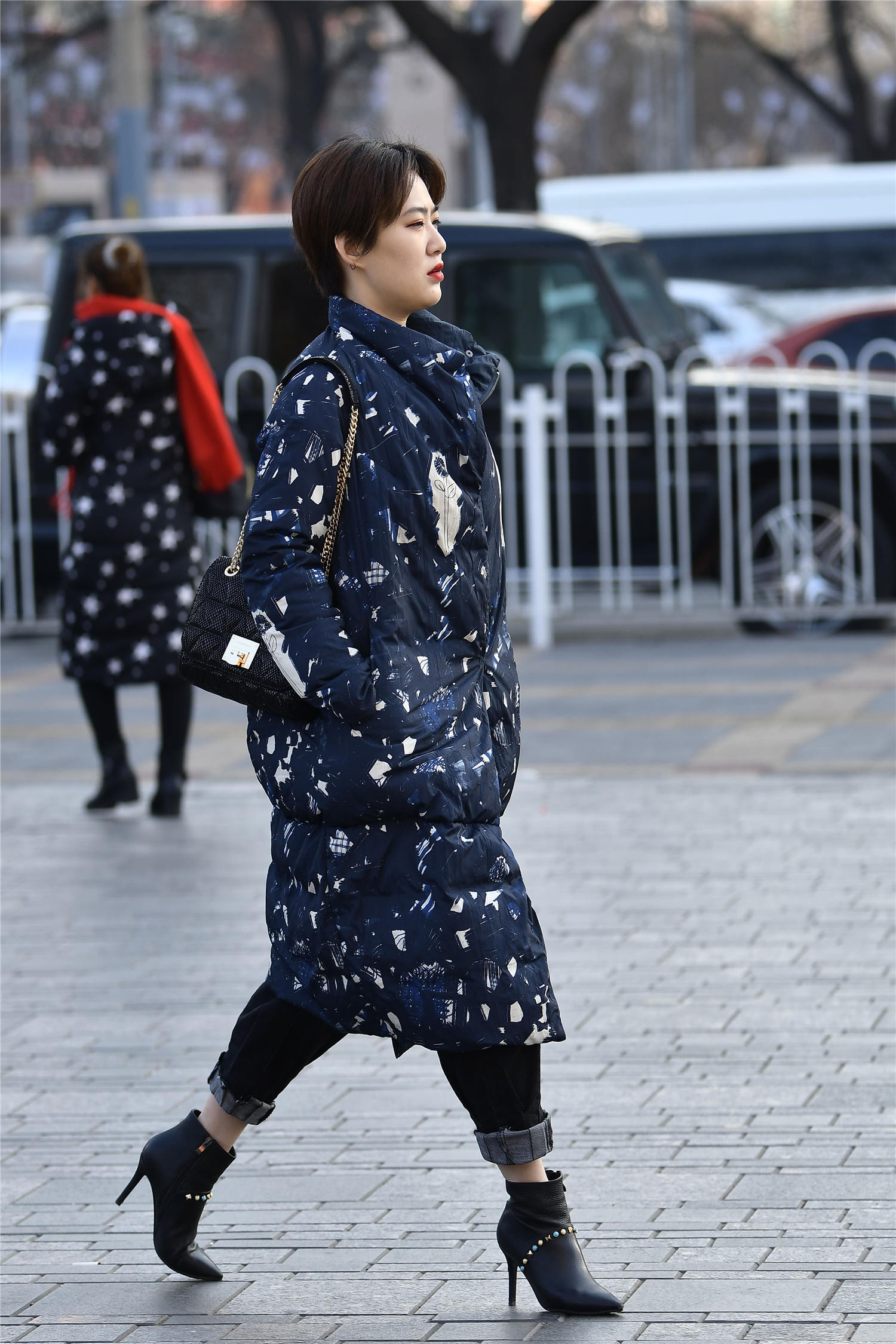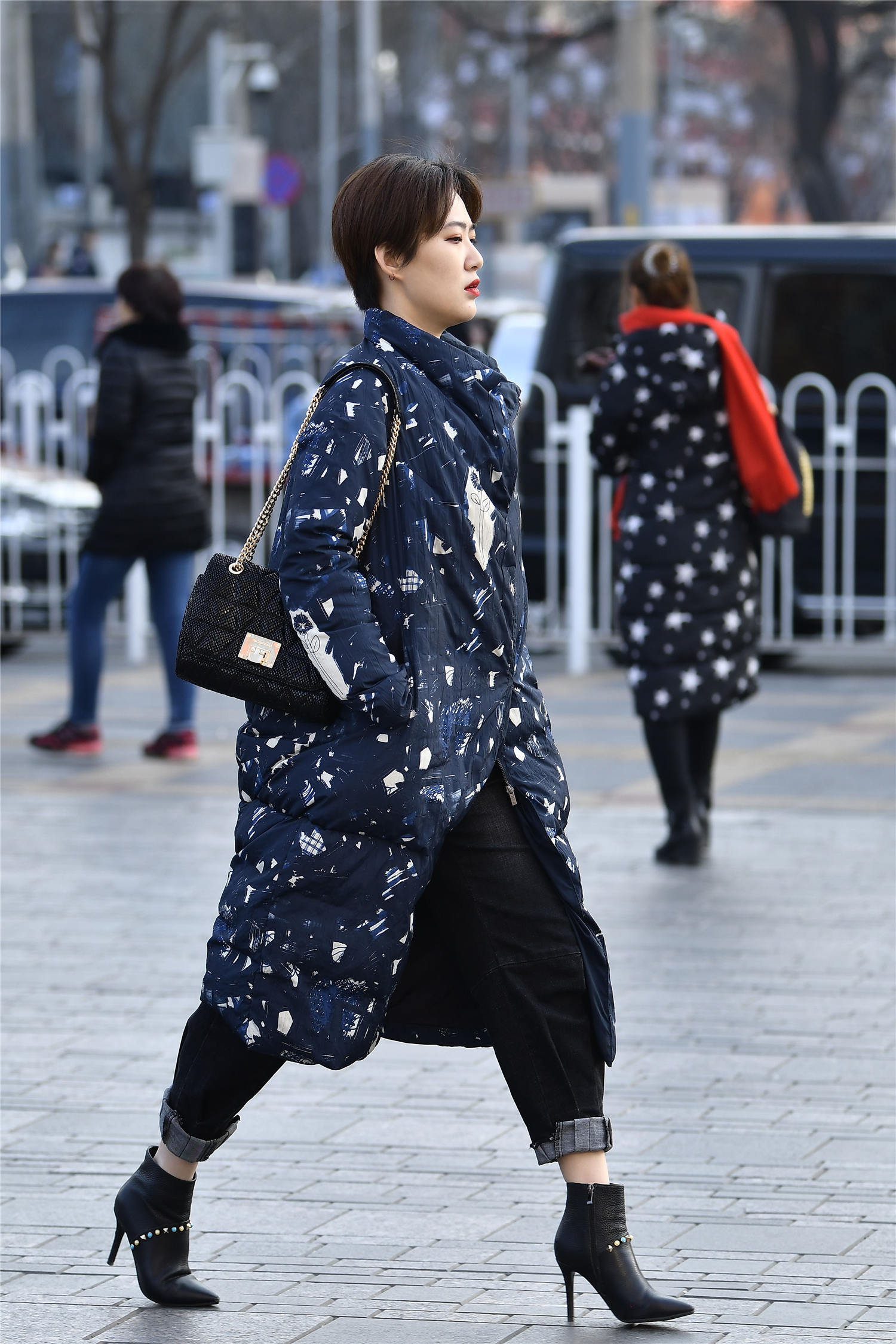 有了穿搭,让你的搭配变得更加简单,也会穿出自己的时尚味道,这位美女选择一款长长的羽绒服,深蓝色上有着白色碎块,非常好看,也搭配出自己的味道,宽松休闲的款式,搭配出自己的味道,也有着很保暖的感觉,宽松的瘦腿裤,搭配出很修身的效果,露出一点脚踝的位置,这样的冬天是不是不是很冷呢?