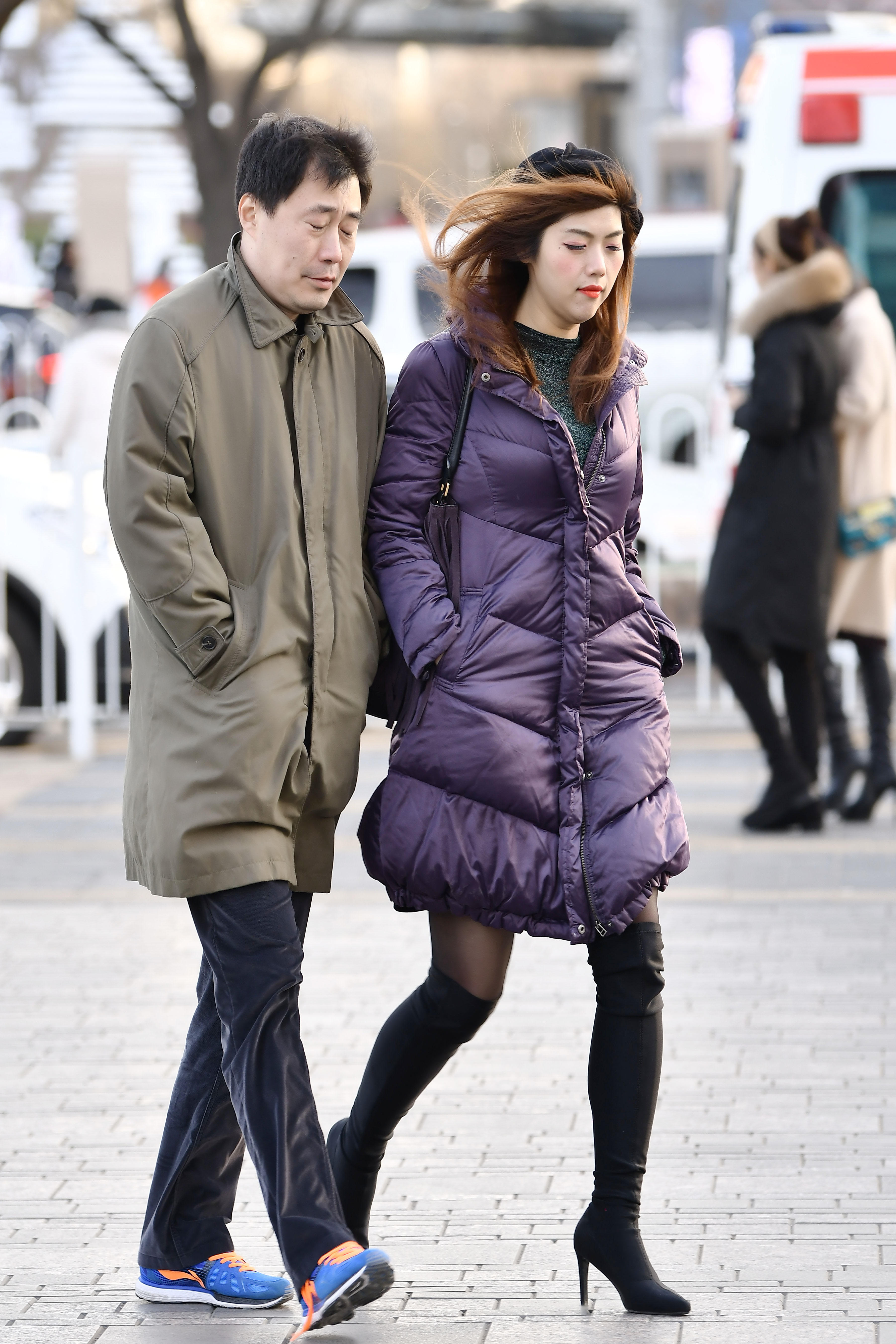 每一位时尚姑娘,她们有着自己喜欢的色彩,每一位时尚姑娘喜欢的色彩不一样,她们也穿着自己喜欢的色彩逛街,看一下这位美女选择一款紫色的中长款大衣,斜着的缝合线,非常好看,也搭配出有层次感的效果,黑色丝袜搭配一双黑色尖头细跟过膝靴,穿出自己的时尚感觉,也衬托出自己的时尚感觉,有着显瘦的效果。