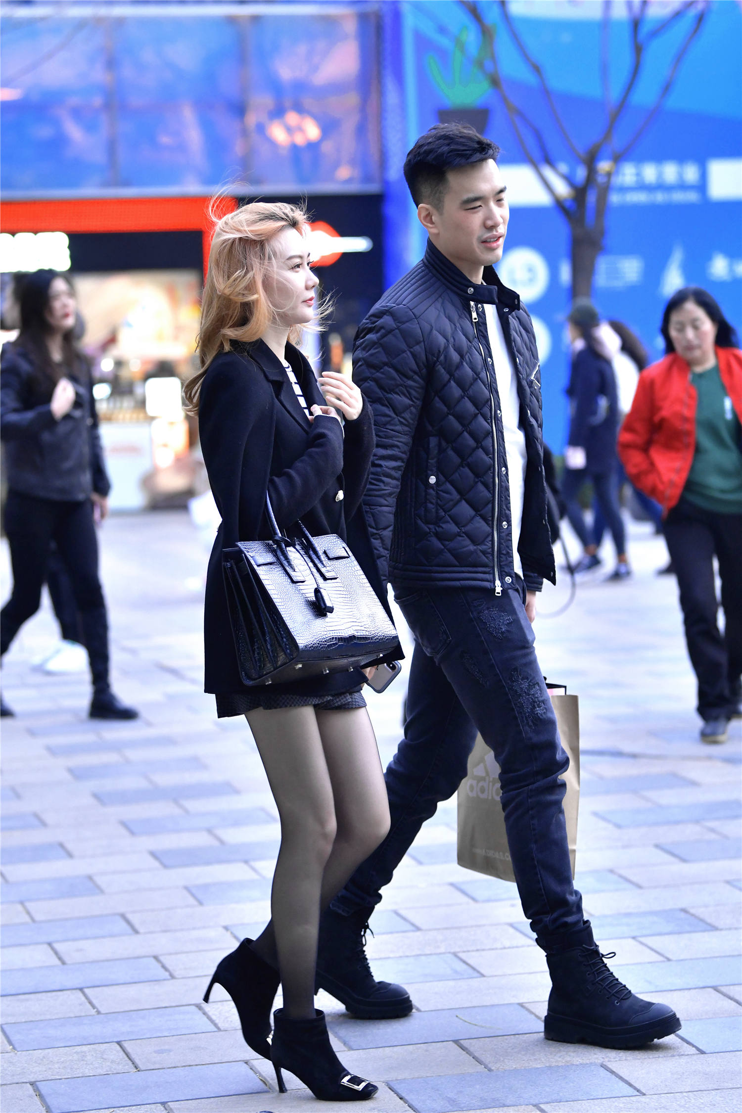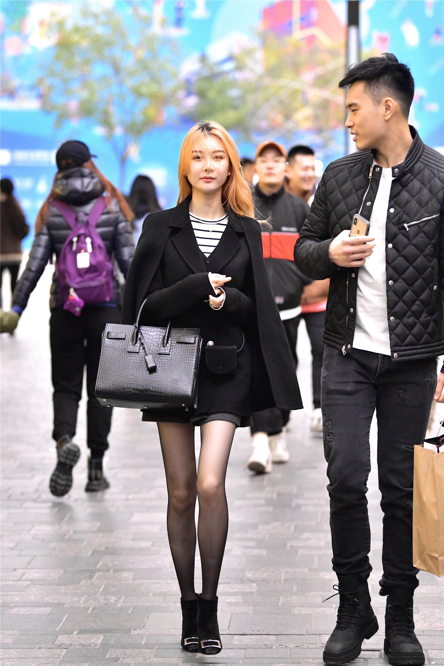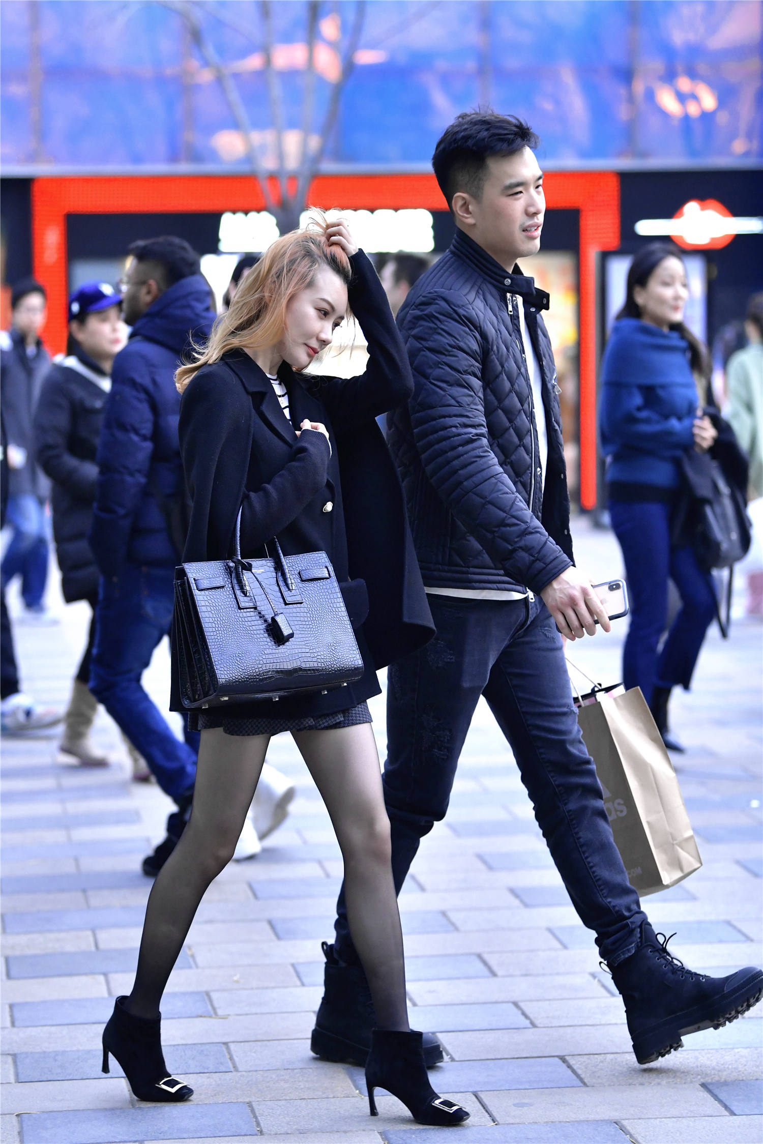 这位小姐姐选择黑色丝袜,冬季穿着非常好看,搭配一双黑色短靴,衬托出她的好身材,高跟的款式,虽然不是很高,还有着金属方扣的设计,冬天这样搭配,穿出自己的身材,也搭配出很显瘦的效果,这样穿着冬天是不是会很冷呢?身边的姑娘都是穿着厚实的服装,这样搭配出很美的效果,如果不怕冷,冬天依旧会搭配出很好看。