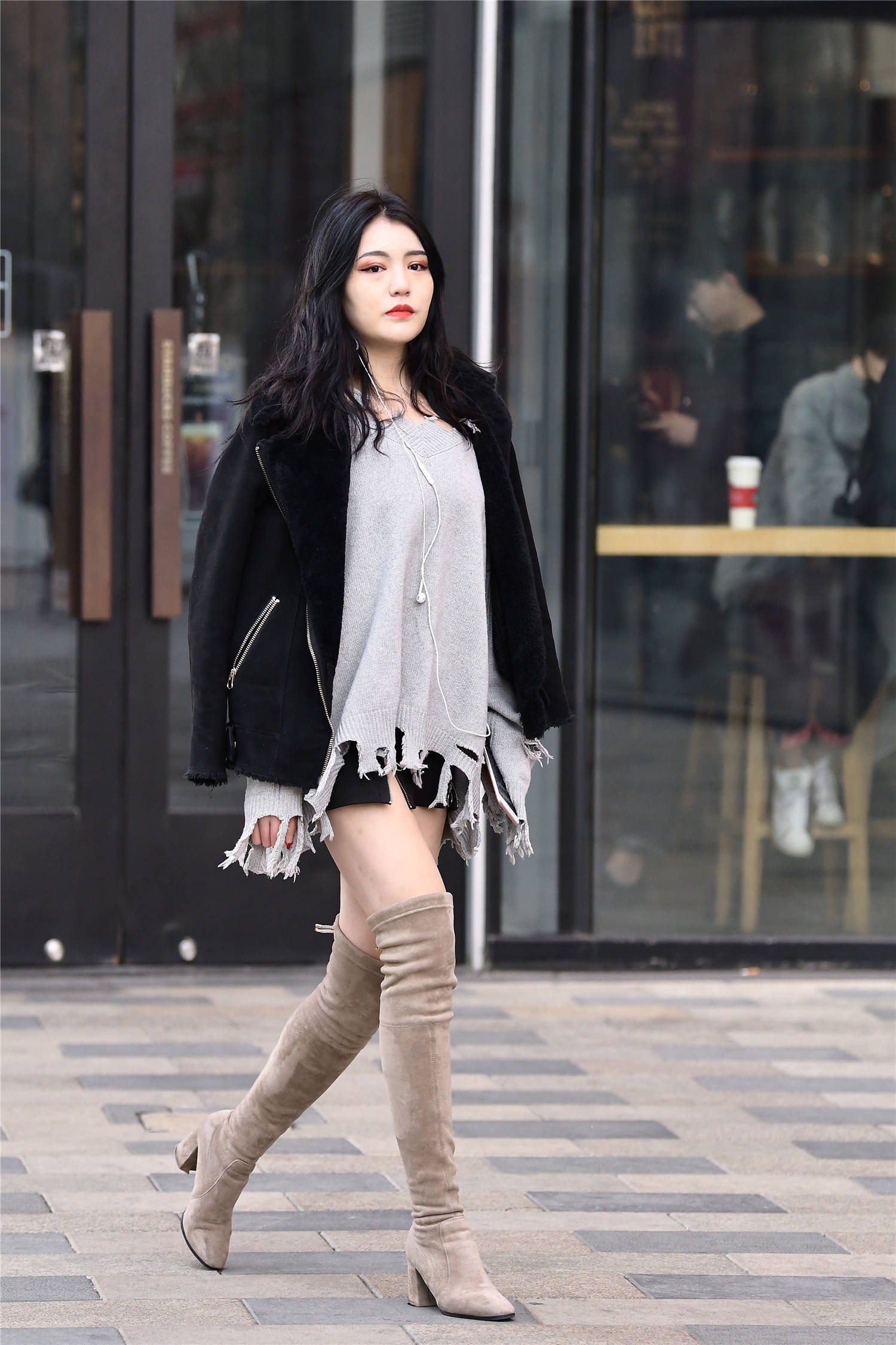 这位美女穿着一款过膝长靴,修身的款式,会显得腿细,而且带着弹力效果,这样冬天穿着也会有着很显身材的感觉,搭配黑色短裤,非常简单,而且露出一点大腿,也展现出不怕冷的效果,这就是会搭配,懂得怎么搭配,要穿出自己的味道,还要展现出一点个性,让你的生活变得不要一样。