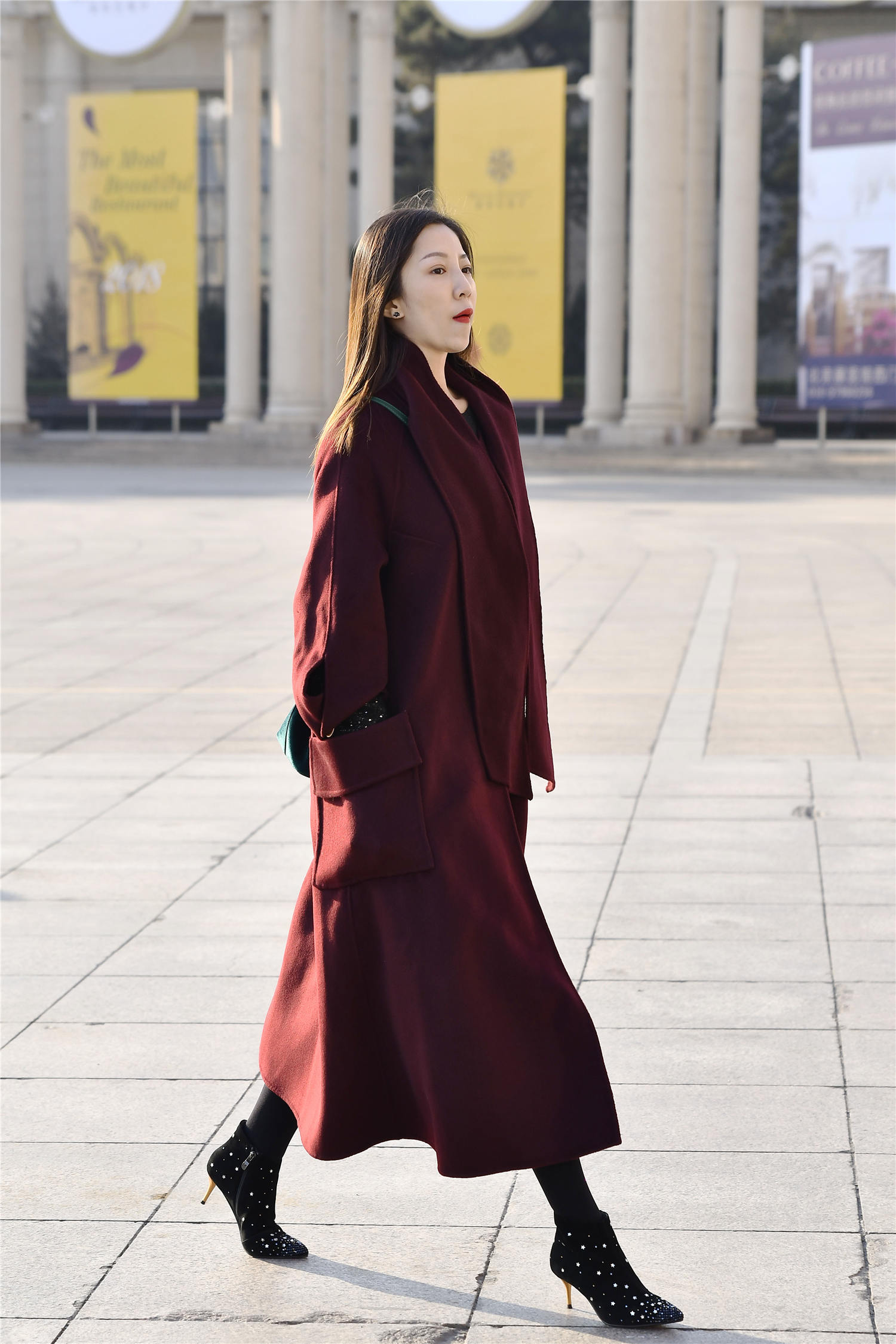 冬季的短靴也有很多款式,你喜欢什么款式的,看你一下这位美女选择一款尖头细跟的款式,黑色款式,白色点缀在上面,非常好看,5厘米的细跟,会搭配打底裤,这样显得身材高挑纤细,也穿出很美的效果,一款酒红色的呢子大衣,过膝的长款,穿搭也简单很多,一头长发,穿出自己的精致味道。