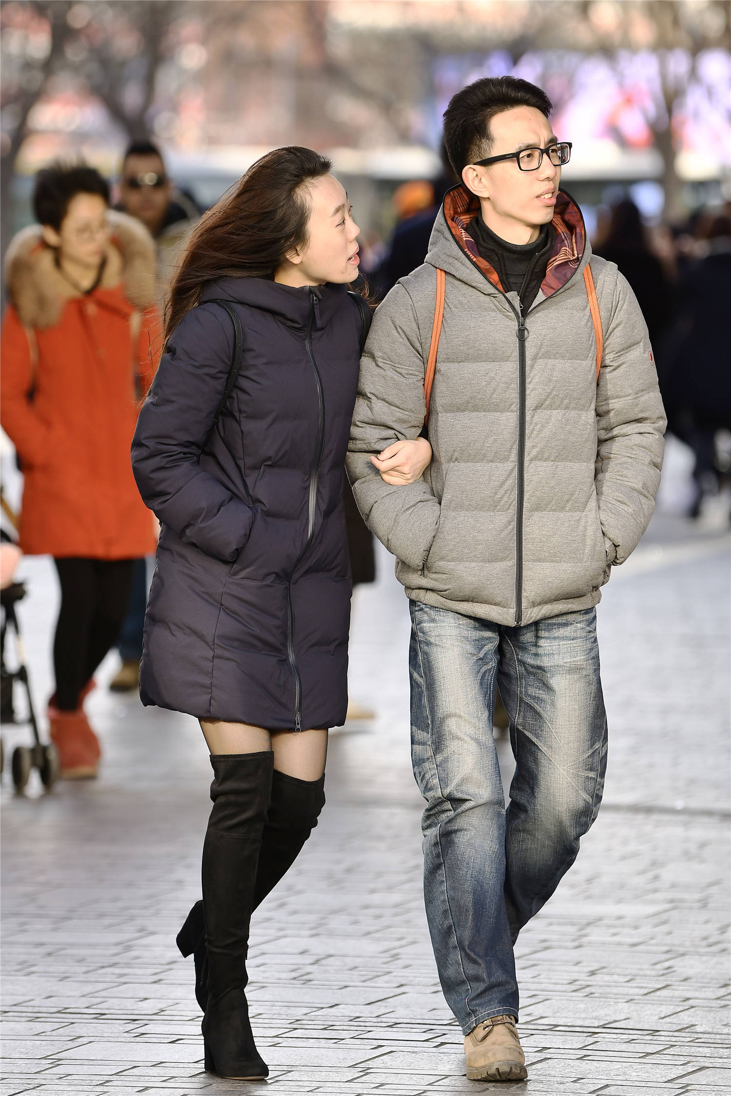 冬天就要搭配出自己的感觉,也要穿出保暖的效果,长靴会搭配出很简约的风格,也会起到很好的保暖效果,这位美女选择黑色过膝长靴,尖头粗跟的款式,有着显瘦的效果,也搭配出很精致的感觉,薄款的黑色丝袜,让黑色有了层次感,一款中短款的羽绒服,简单还好看,衣摆到大腿的位置,刚好露出一点丝袜位置,这样会显得非常有层次感。