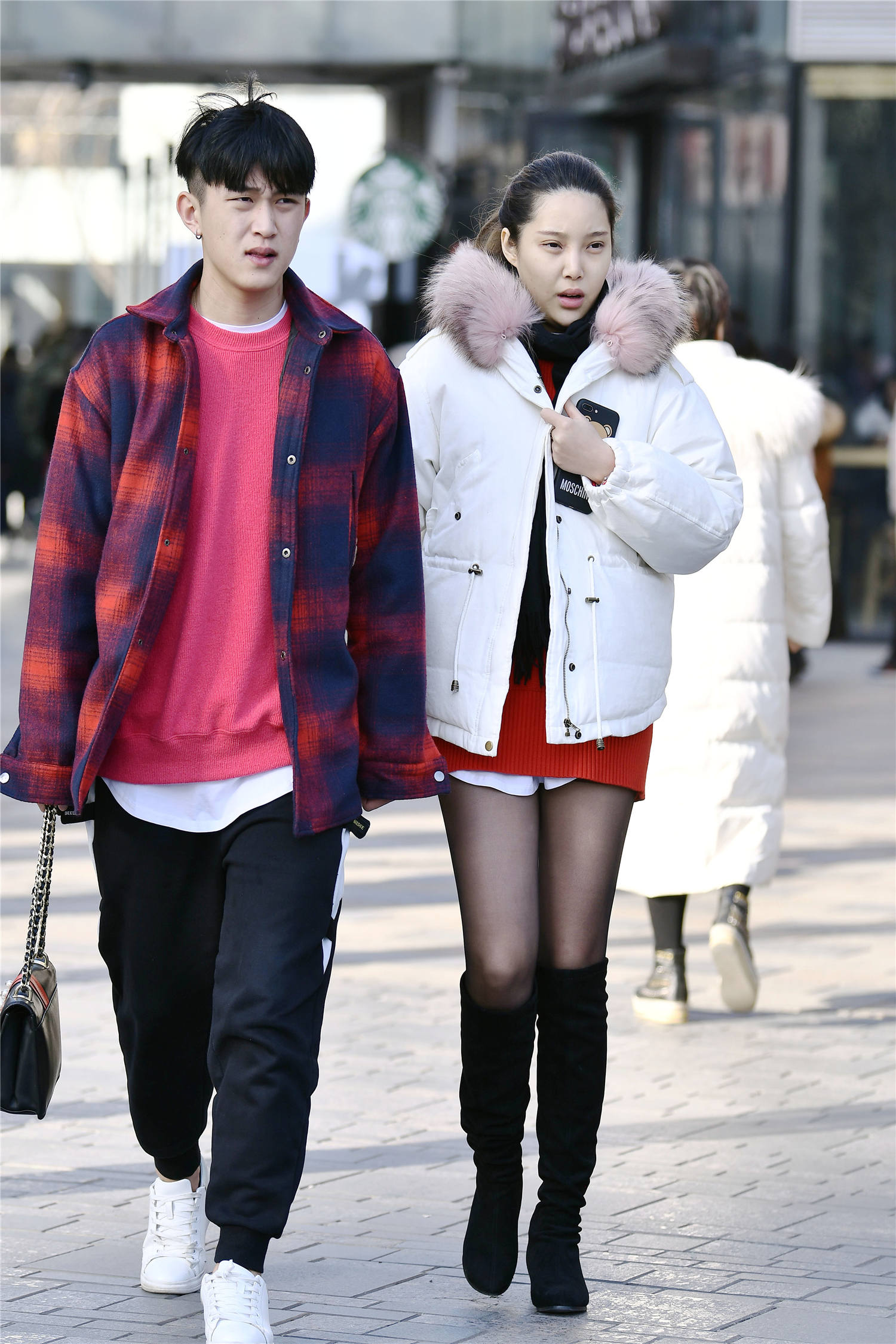 到了冬天,还是有很多姑娘想要搭配出自己的时尚味道,穿出显身材,还有着一点不怕冷的时尚感觉,所以很多人会选择黑色丝袜搭配,保暖显瘦的搭配,穿出自己的时尚味道,这位美女黑色长靴搭配黑色丝袜,非常有层次的穿搭,红色的连衣短裙,外面是一款白色短款羽绒服,就搭配出色彩和层次的效果。