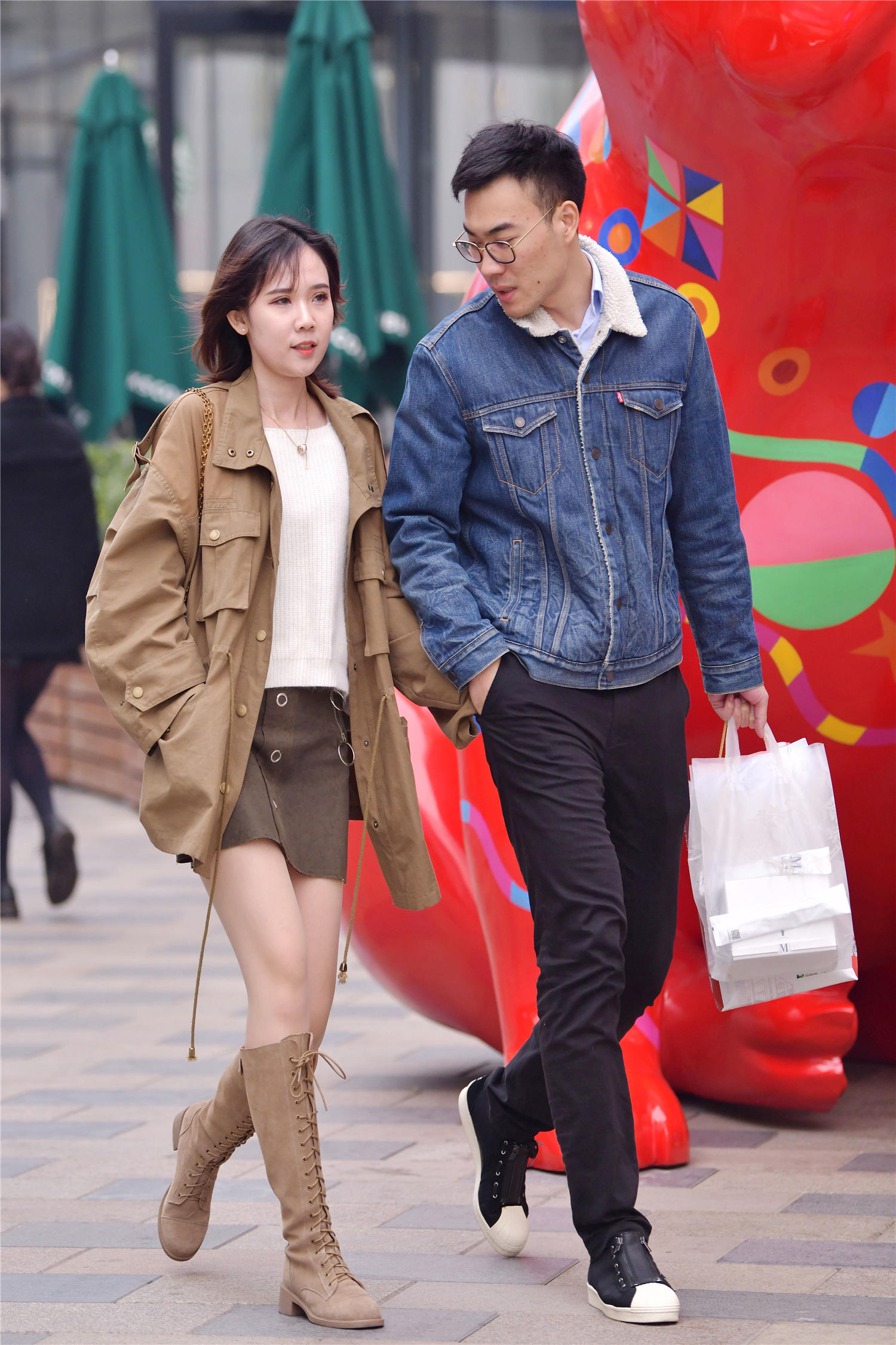 当然也会有不怕冷的姑娘出门,这样搭配你是不是会很羡慕呢?如果在外面时间不长还好,长时间逛街肯定是很冷的,这位美女选择一款米白色的短靴,2厘米的粗跟,穿出一点小女生的感觉,大腿露在外面,这是真的不怕冷啊,一款米白色的呢子中短款呢子大衣,穿出很简约的风格,也显出身材苗条的效果。