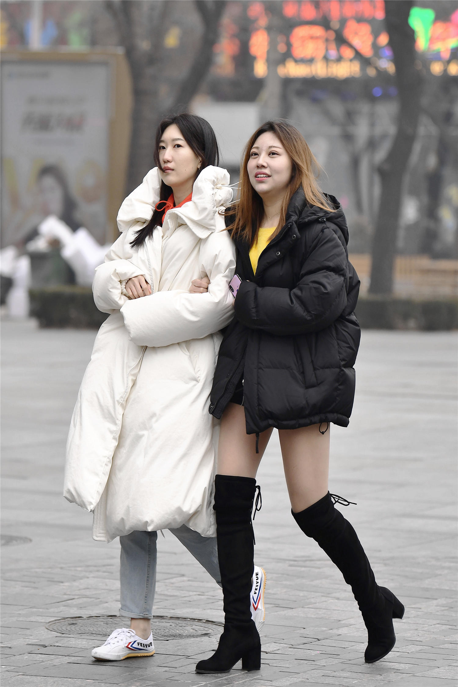 她的姐妹选择一款米白色的长款羽绒服,非常宽松,也穿出很休闲的款式,这样的搭配很简单,九分的水洗蓝牛仔裤,挽起一点裤脚边,非常好看,露出脚踝,脚下一双白色平底鞋,非常合脚的款式,这样的浅色搭配,也是很好看,衬托出自己的时尚味道,和闺蜜一起组成黑白色的对比穿搭,非常好看。