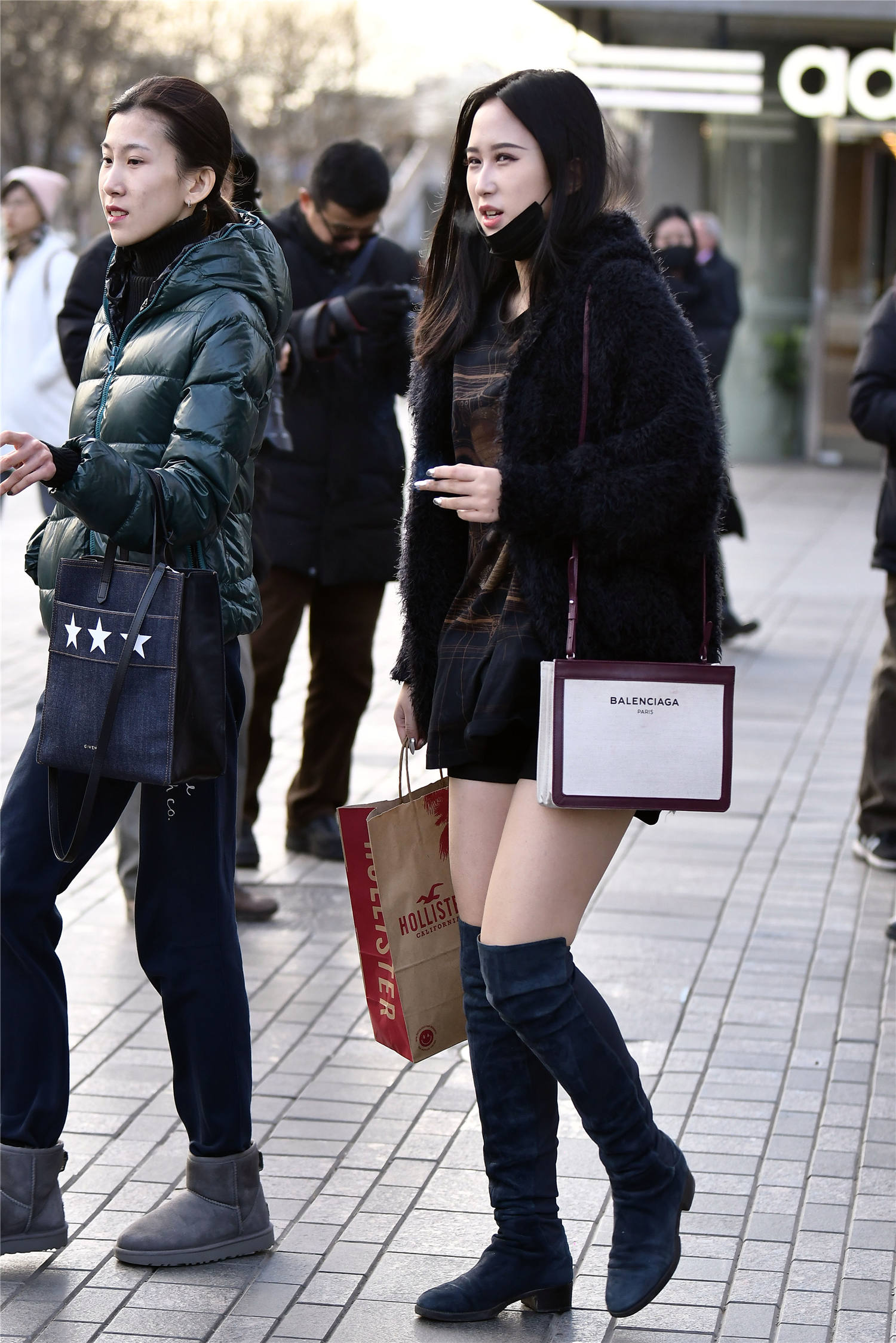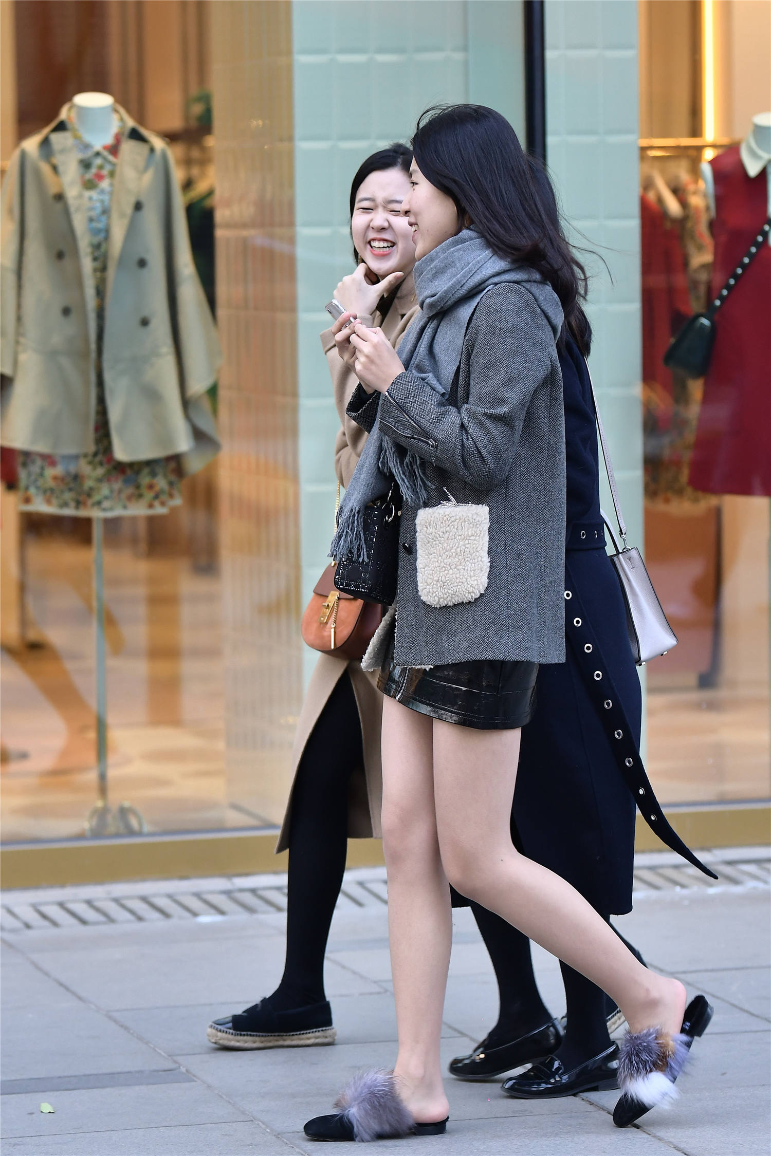 很多时尚姑娘有着自己的想法,在春天逛街,要搭配出自己的味道才好,看一下这位小姐姐,她约着自己的两位姐妹一起逛街,却穿出不一样的感觉,一款毛茸茸的拖鞋,非常好看,是很多姑娘喜欢的款式,搭配黑色皮质短裙,非常有质感,一款灰色的西服,外置的兜子是一款羊羔毛的兜子,增加休闲感觉,围着一款深灰色的围巾,有着春天的搭配味道。