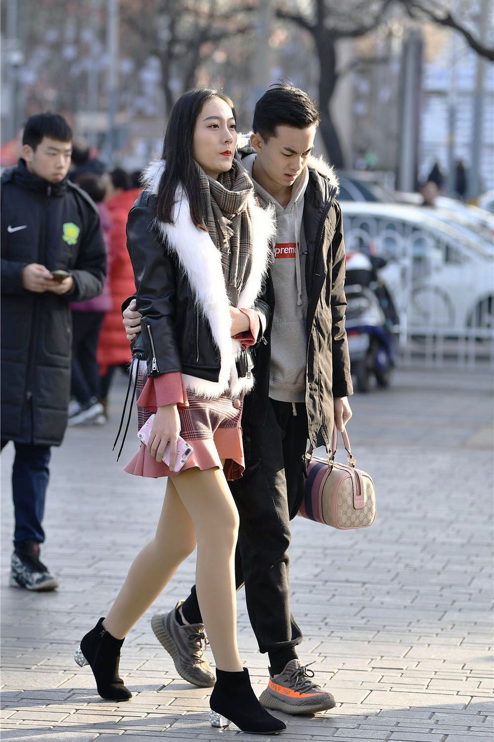 早春出来,要搭配出自己的精致的感觉,这位美女选择一款黑色短靴,水晶跟非常好看,搭配肉色打底裤,很显身材,一款荷叶边的短裙,搭配出很精致的感觉,一款黑色的皮夹克,里面是白色皮草衬托,搭配出很美的感觉,有着自己的时尚味道,搭配出自己的时尚感觉,也显得非常有层次感。