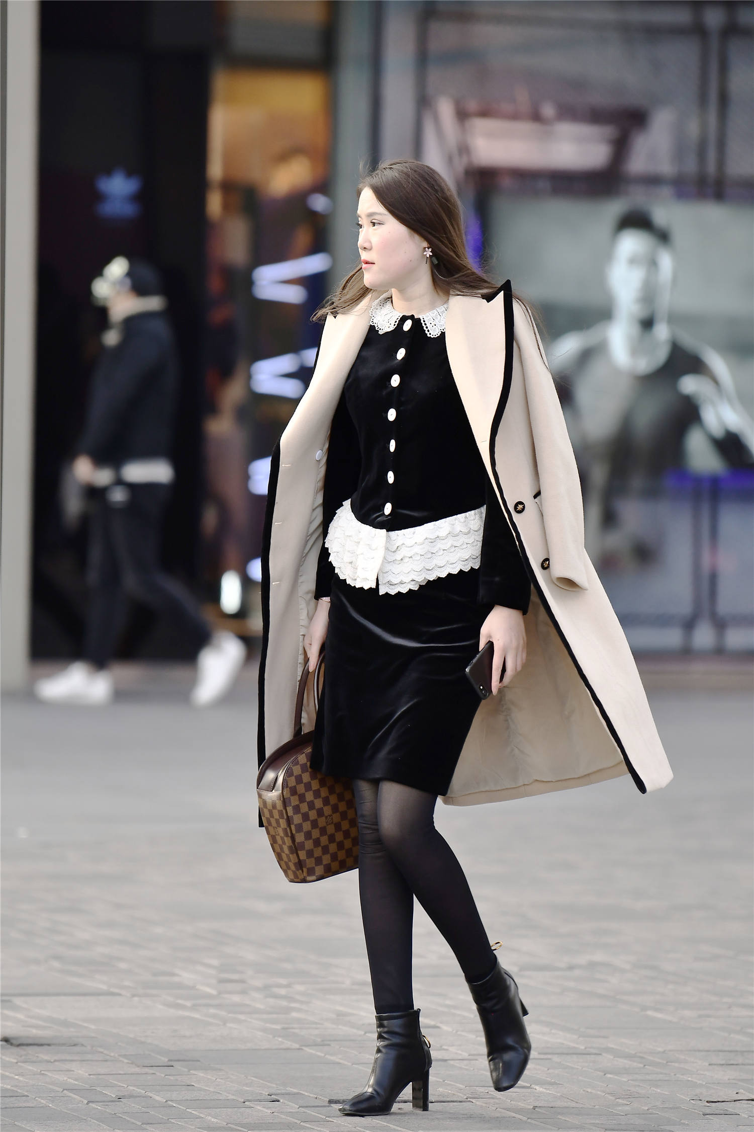 很多会穿搭的姑娘,她们的穿搭可以参考,看一下这位美女的搭配,一款米白色的风衣披在肩上,这样显得有风度,里面是黑色连衣短裙,非常好看,衣领和腰间的一点白色,增加层次感,搭配出很精致的感觉,一款黑色丝袜,搭配出很美的感觉,脚下一双黑色短靴,高跟的款式,也搭配出显身材高挑的效果,穿出自己的时尚味道。