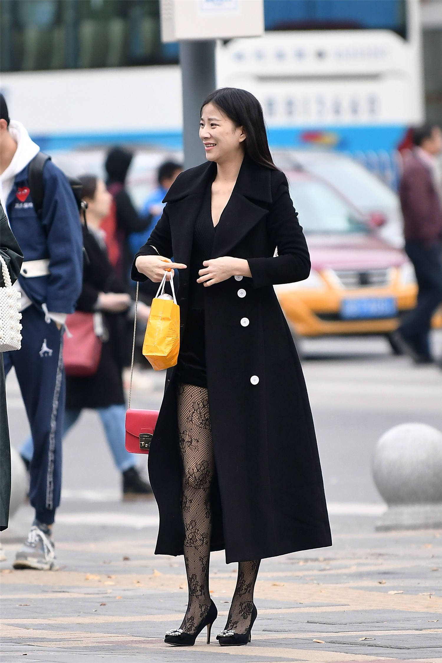 到了早春时节,也是一个搭配的季节,很多时尚姑娘穿着自己喜欢的服装出来逛街,黑色丝袜搭配出很美的味道,和高跟鞋组合在一起,就非常美,这位美女选择一款黑丝袜网格袜子,搭配一双黑色的细高跟,漆皮的设计,非常好看,搭配短裤,也展现出大长腿的效果,一款黑色大衣,非常有型的一款大衣,穿出精致的感觉,也非常显气质。
