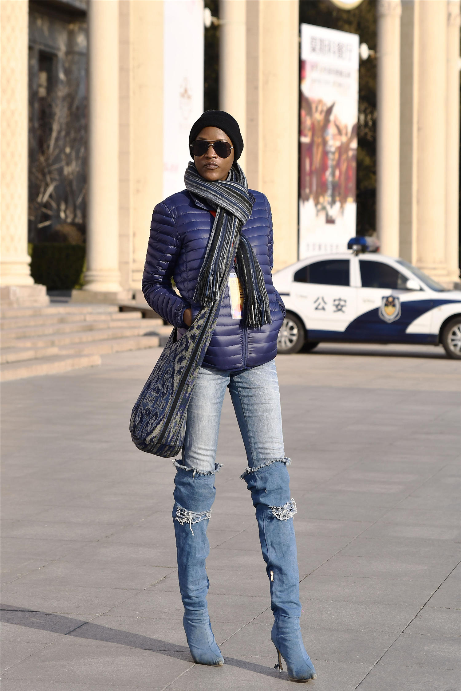 很多人喜欢牛仔,也知道牛仔该如何搭配,穿出自己的味道才是最好的,这位美女选择牛仔尖头细跟过膝靴,还有着破洞的效果,非常好看,里面也是紧身牛仔裤,这样的牛仔搭配,非常好看,也衬托出她的身材苗条,搭配一款蓝色短款的薄羽绒服,保暖效果很好,灰色围巾黑灰色单肩包,仿佛融为一体,非常好看的搭配。