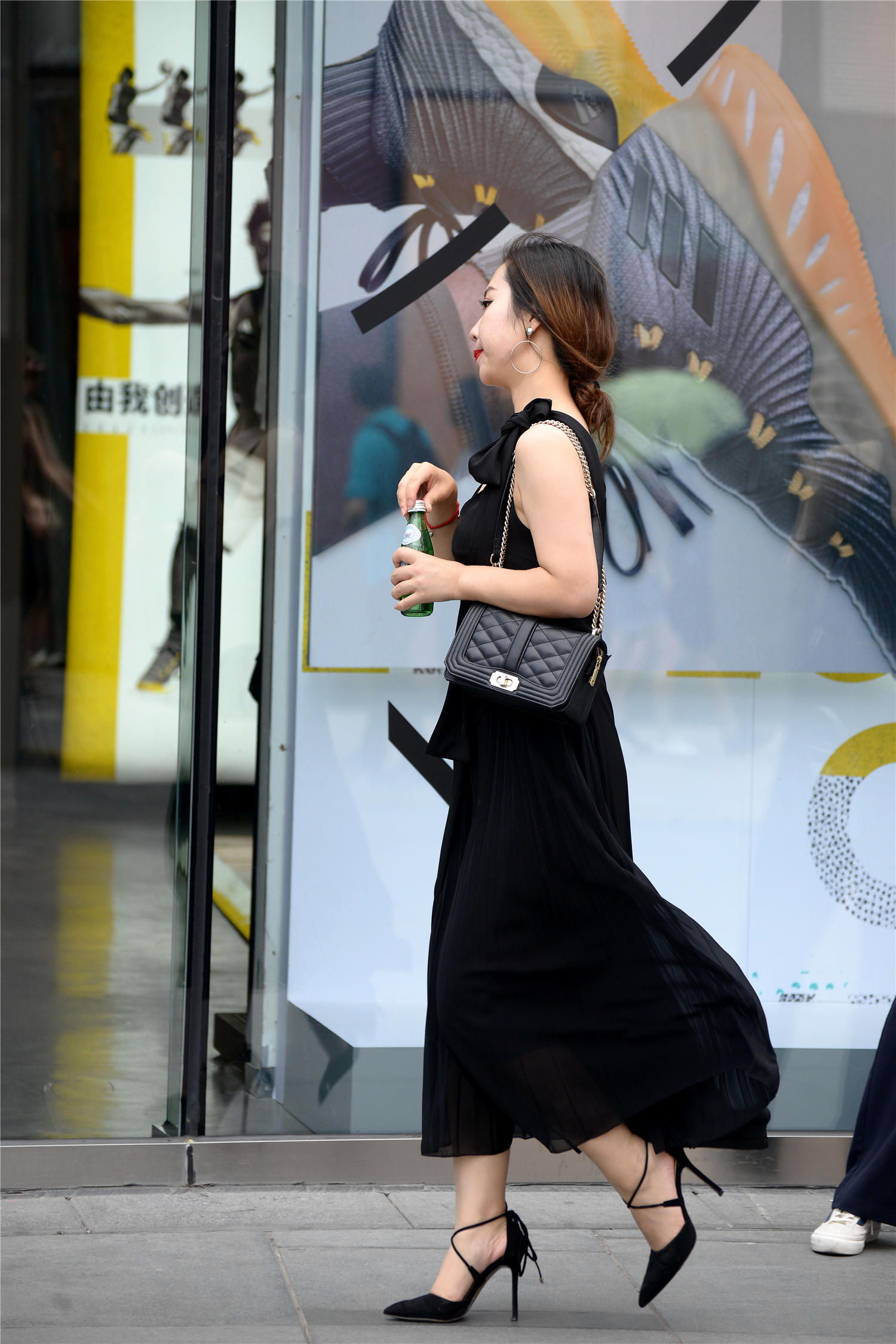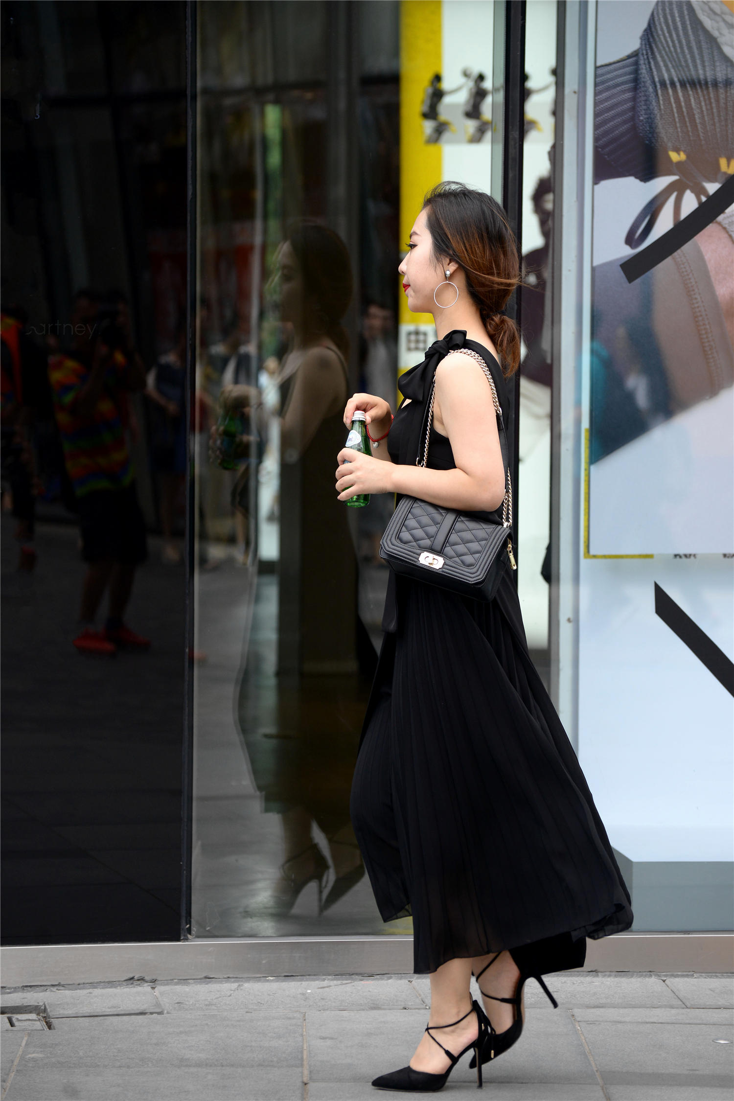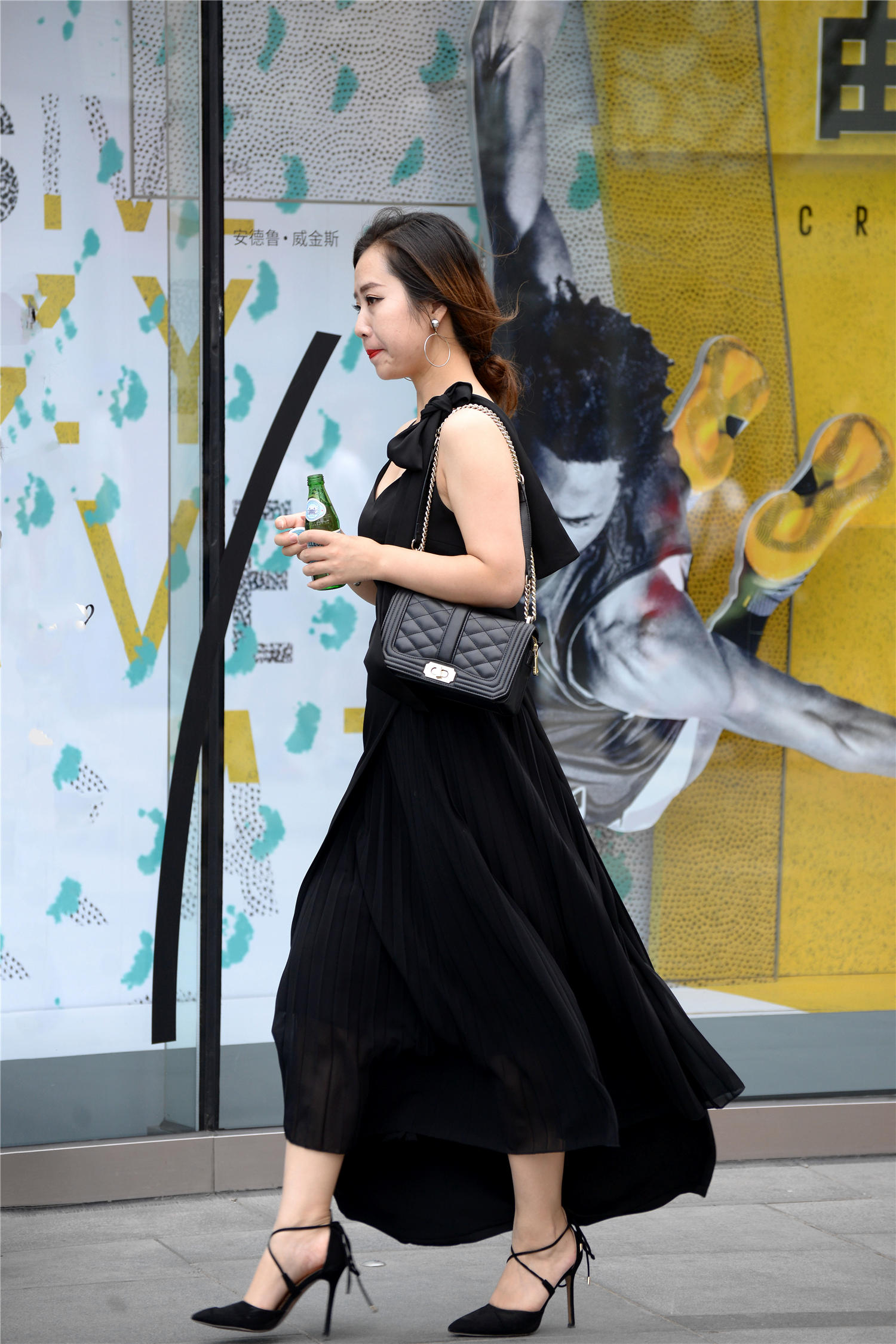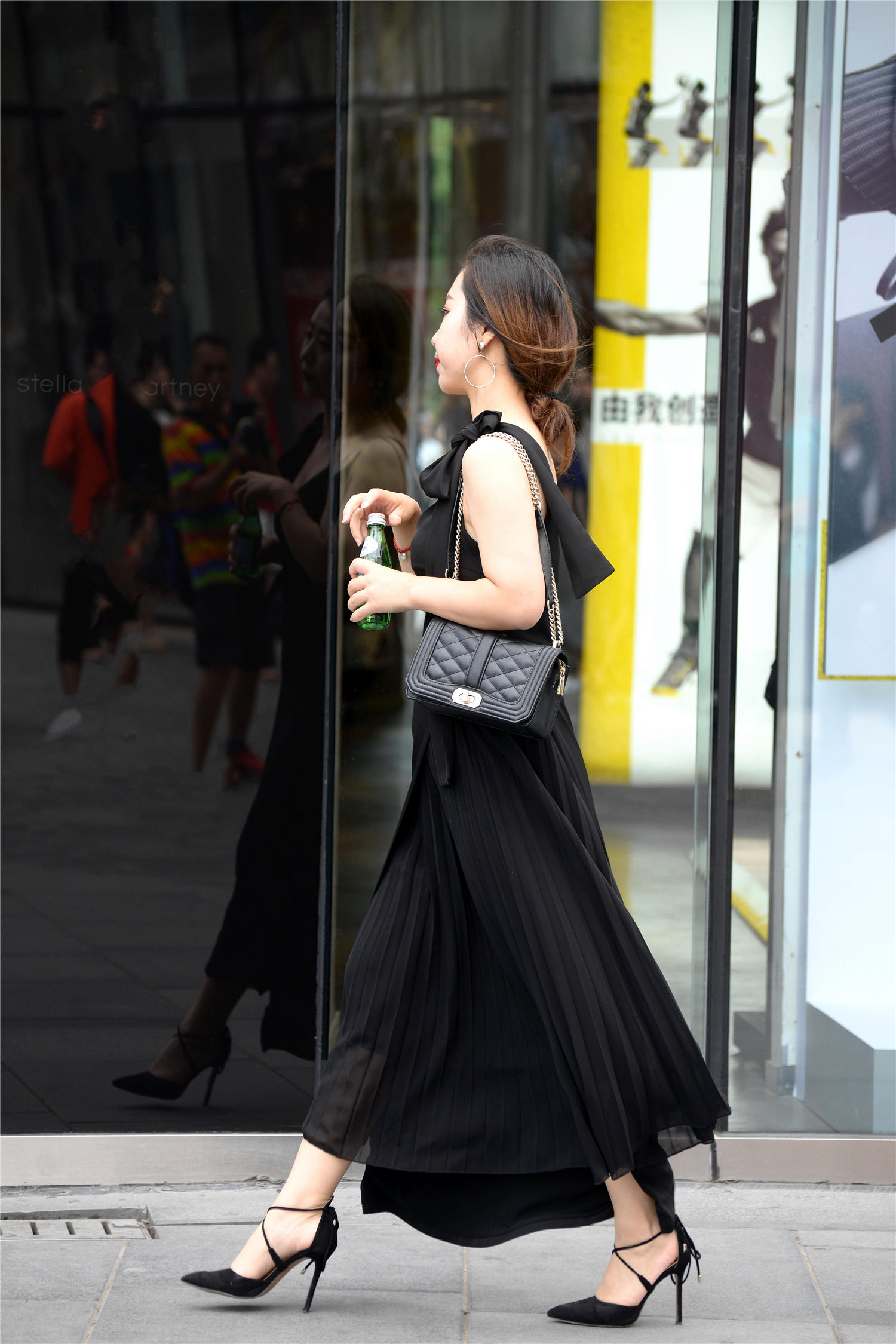 一款黑色吊带连衣裙,非常好看的款式,裙摆散开,非常好看,也不是很挑身材,裙摆有着百褶的设计,每一位时尚姑娘有着自己的想法,搭配出自己的时尚感觉才是最好的,生活中从来不缺少美,只是你没有发现,很多人挑选衣服的时候,非常有眼光,她们会选择出非常适合自己的身材的服装。