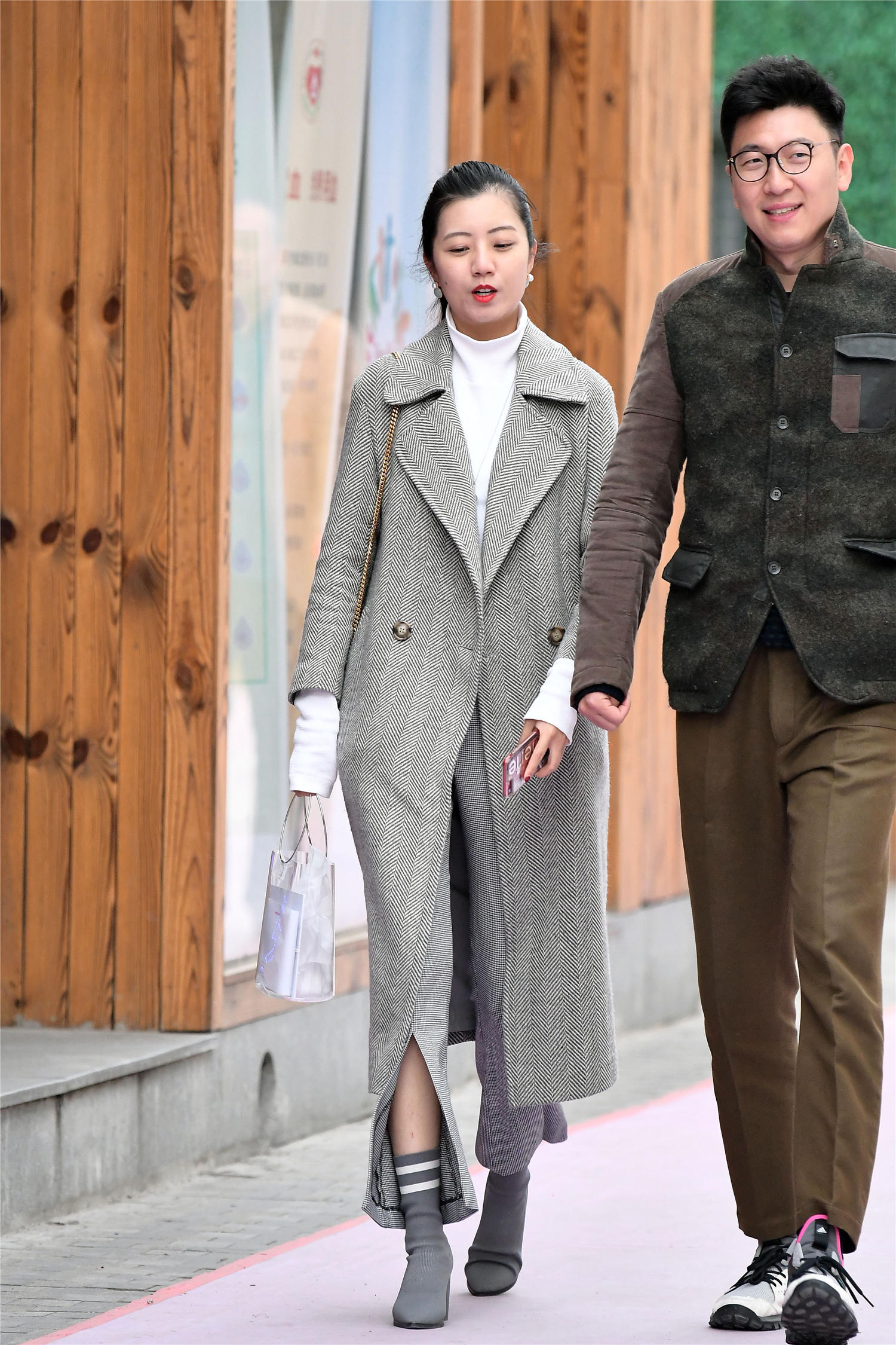 搭配可以搭配出不同的风格,也可以搭配出很有精气神的感觉,这位姑娘选择一款灰色的条纹,长款风衣,简约的蝴蝶领,非常好看,一款白色的高领衫,搭配出保暖的效果,灰色千鸟格的长裤,前面的开叉,露出一点小腿的位置,衬托出很精致的感觉,脚下的灰色高跟袜靴,也是很精致,一身灰色,搭配出很高级的效果。