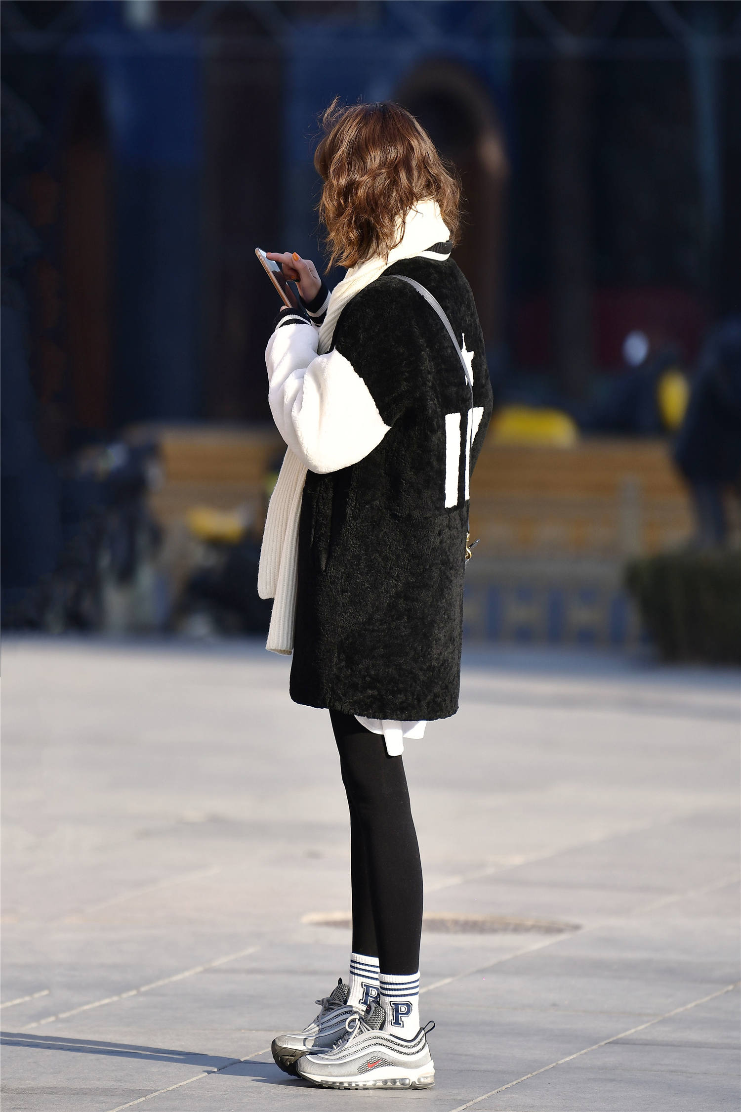 每一位时尚姑娘,要穿出自己的感觉,搭配出自己的味道,喜欢什么风格,就会按照自己的想法去搭配,这位美女选择运动休闲的风格搭配,一双灰色的运动鞋,搭配一双白色的运动袜,黑色的“光腿神器”,展现出她的细腿,一件黑色中短款大衣,袖子的白色的款式,这样拼接很好看,一款白色的针织围巾,就搭配出自己的感觉。