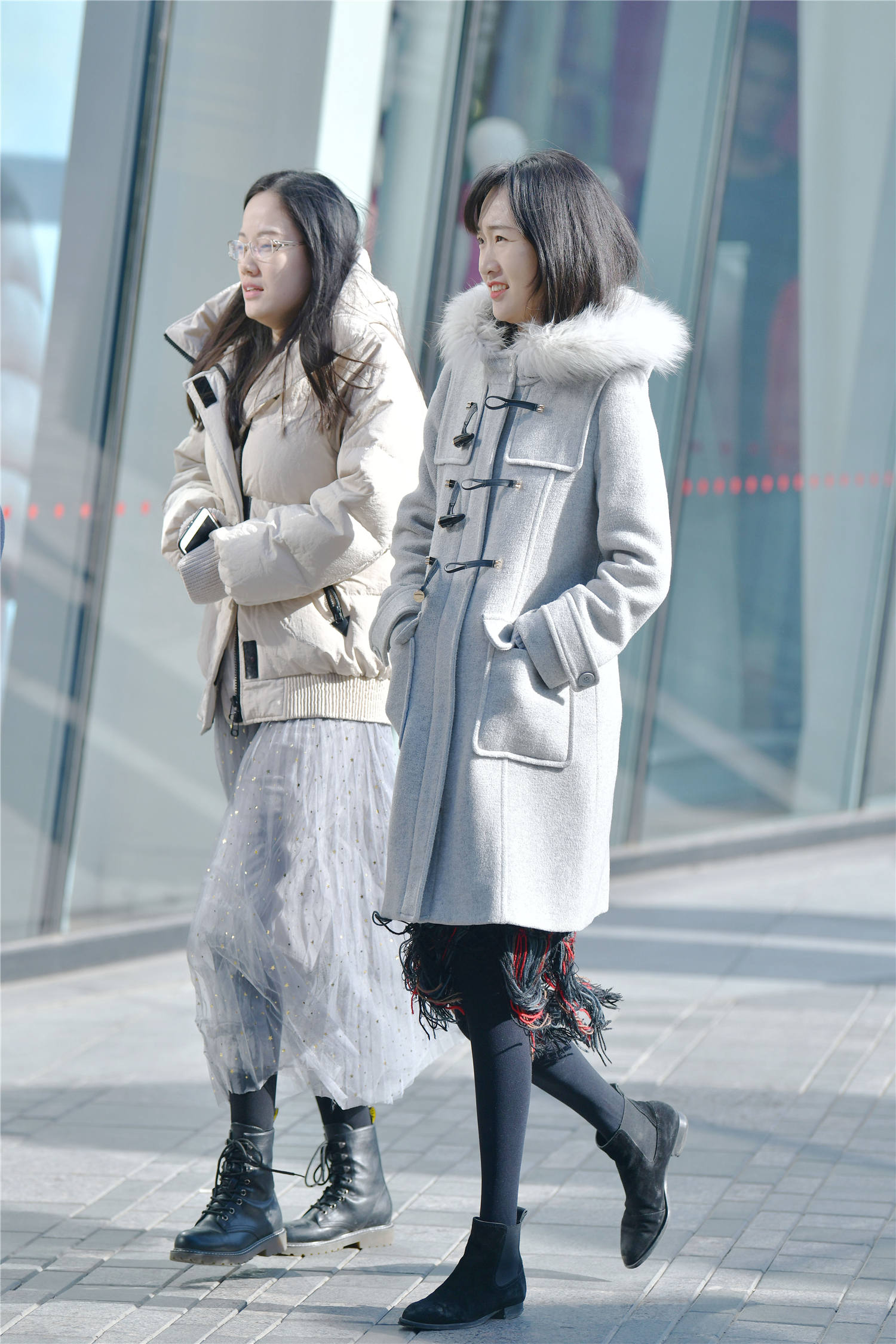 很多时尚姑娘喜欢搭配出显瘦的效果,特别是到了春天,要搭配出自己的感觉,这一对姐妹,她们很会穿搭,一双黑色短靴,搭配“光腿神器”,流苏的裙子,非常好看,一款灰色的中长款大衣,扣子的设计很独特,搭配出风格,她的姐妹穿着灰色的马丁靴,搭配黑色的“光腿神器”外面是灰色的纱裙,一款米白色的短款羽绒服,春天这样搭配不冷还很好看。