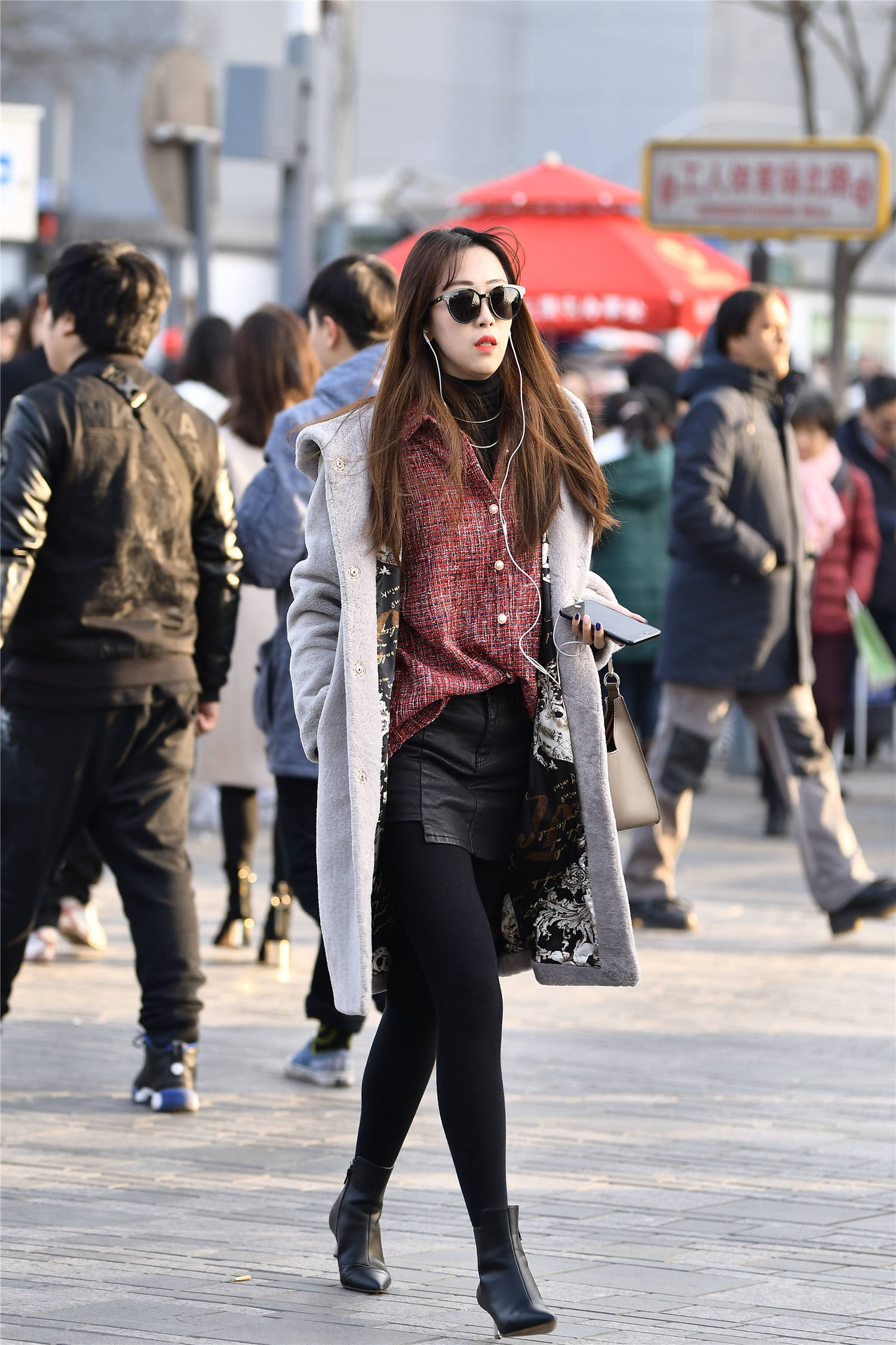 精致的美女,会把自己最美的一面呈现出来,春天要搭配出自己的味道,这位美女选择黑色的“光腿神器”,黑色的皮质尖头细跟短靴,衬托出身材苗条的效果,也搭配出显瘦的感觉,黑色的皮裙,显得身材比例很好,一款暗红色的衬衣,外面是浅灰色的大衣,这样穿搭,显身材,还很保暖的效果,也展现出时尚的味道。