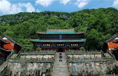 武当山之盛名,还得益于它远离繁华喧嚣的宁静、清秀和奇异的风光。登上海拔1612米的主峰“天柱峰”,置身云端,所有尘世烦忧尽消于足下。环顾四周,七十二峰凌耸九霄,且都俯身颔首,朝向主峰,宛如众星捧月,俨然“万山来朝”。元人有诗曰:“七十二峰接天青,二十四涧水长鸣。”武当山天柱峰一带,山高谷深,溪涧纵横,身入其境,会有俗念顿消的出世之感。