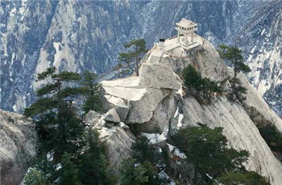 金庸江湖中,华山的地位一直非常显赫。“射雕三部曲”更是把华山当作小说故事展开的大背景。《射雕英雄传》中,两次论剑都在华山绝顶。《神雕侠侣》最后一回中,举行最后一次华山论剑,英雄本色尽显。《笑傲江湖》中有华山派。古人说华山如立,以五岳比喻五经,华山如同《春秋》,主威严肃杀,最是奇险无比,有华山自古一条路的说法。华山绝壁巍峙,奇峰耸立,山路险峻,摄人魂魄。