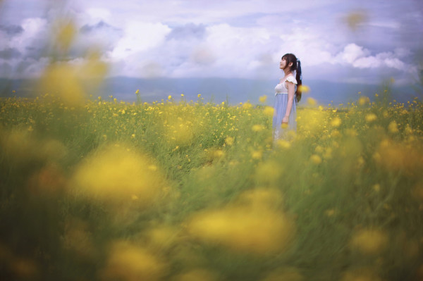 对于前景的利用是我们拍人像比较常用的技巧之一,连拍与前景可以烘托画面气氛。但如果利用色彩互补的前景搭配人物是成败的关键。