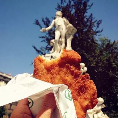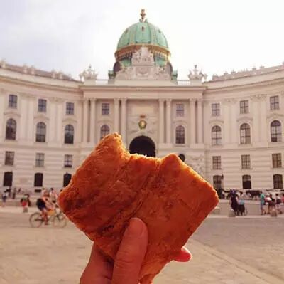 在莫扎特雕像前吃维也纳炸肉扒~(维也纳炸猪扒可以很好吃的哟~)