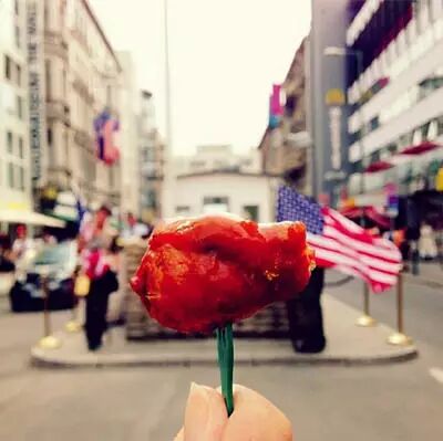 位于柏林市中心的弗里德里希街(Friedrichstraße),是冷战时期柏林围墙边东德与西柏林进出的一个检查点。Melissa在这里买了德国咖喱肠~